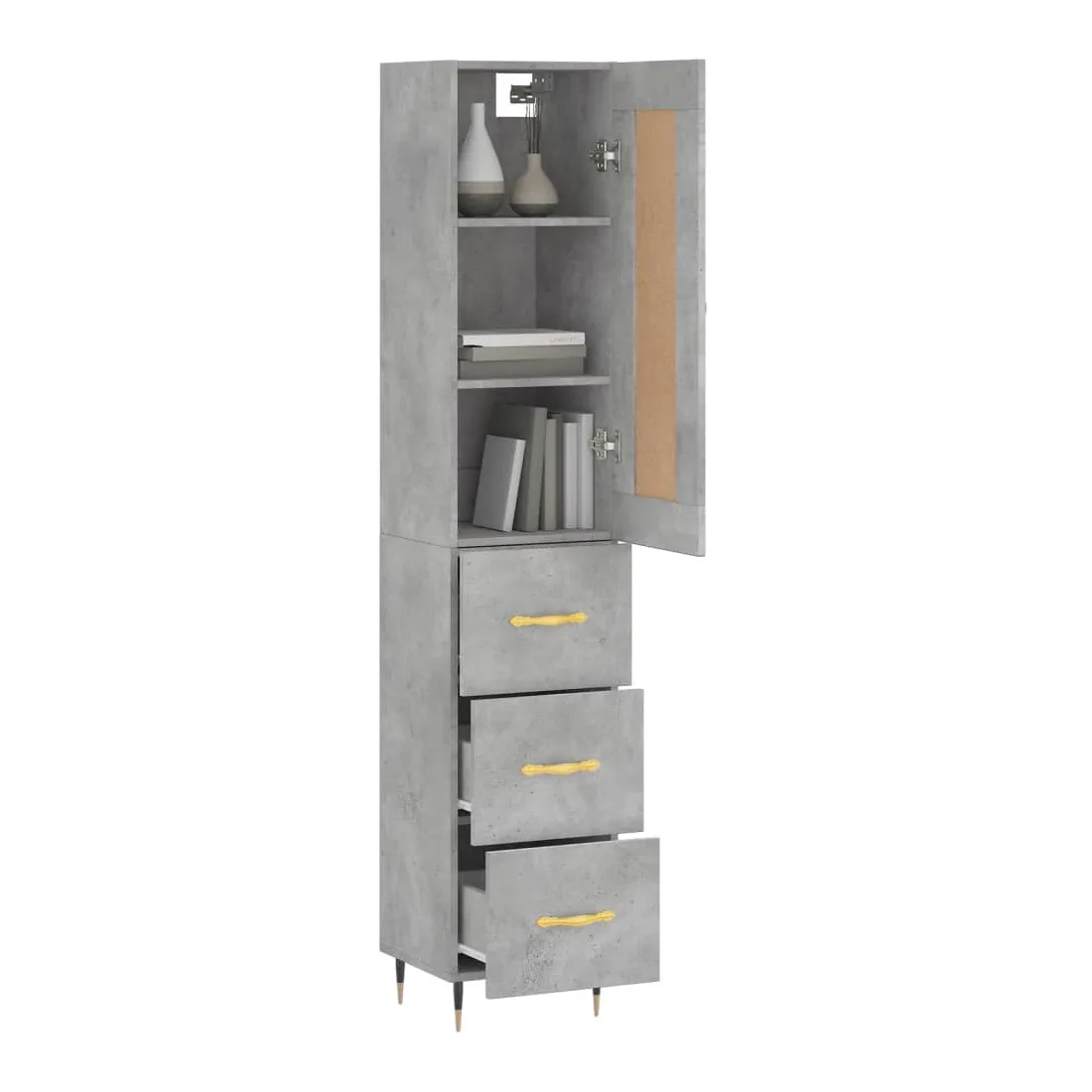 Buffet haut Gris béton 34,5x34x180 cm Bois d'ingénierie