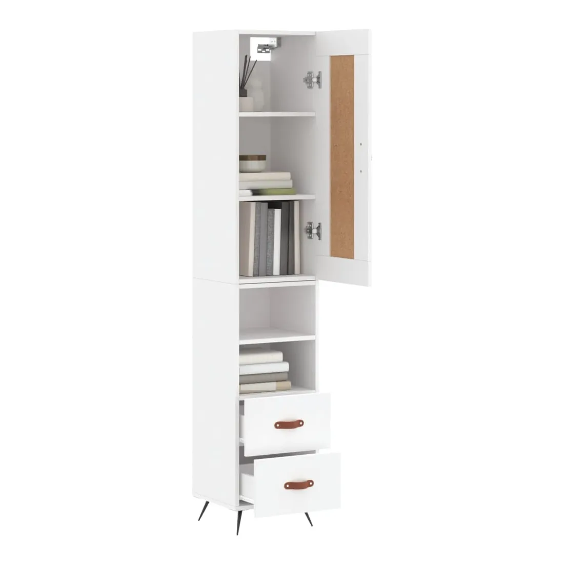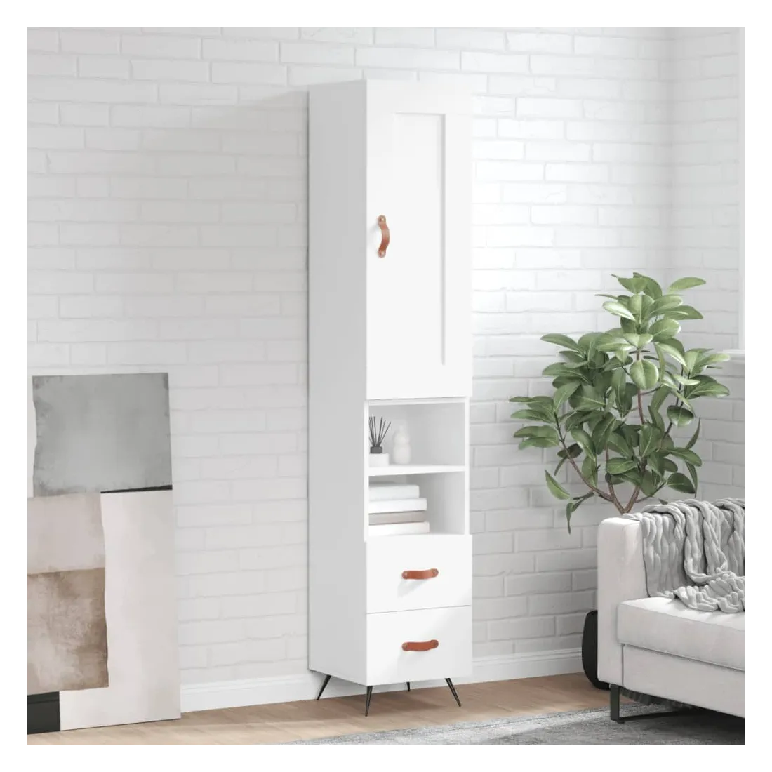 Cherchez-vous un buffet haut de gamme stylé ? Ce buffet haut ajoute un charme élégant à votre intérieur existant ! Matériau durable : le bois d'ingénierie est d'une qualité exceptionnelle avec une surface lisse et se caractérise par sa solidité, stabilité et résistance à l'humidité. Fabriquée en bois d'ingénierie, l'armoire est robuste et durable.Grand espace de rangement : l'armoire latérale offre un grand espace de rangement pour garder vos différents articles essentiels quotidiens bien organisés et facilement accessibles.Porte pratique : gardez votre espace sans encombrement en cachant de petits objets essentiels derrière la porte de l'armoire haute.Pieds en métal : les pieds en métal ajoutent un style calme à votre intérieur tout en assurant la stabilité. Attention :Pour éviter qu'il ne soit renversé, ce produit doit être utilisé avec le dispositif de fixation au mur fourni. Bon à savoir :Les vis et les chevilles pour l'intérieur du mur ne sont pas incluses. Nous vous conseillons de trouver et d'utiliser des vis et des chevilles adaptées spécifiquement à vos murs. Si vous n'êtes pas sûr, vous pouvez consulter un professionnel. Veuillez lire et suivre chaque étape des instructions.