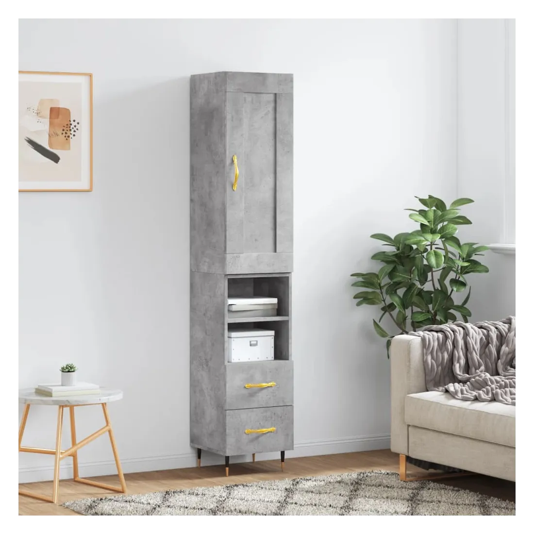 Buffet haut Gris béton 34,5x34x180 cm Bois d'ingénierie