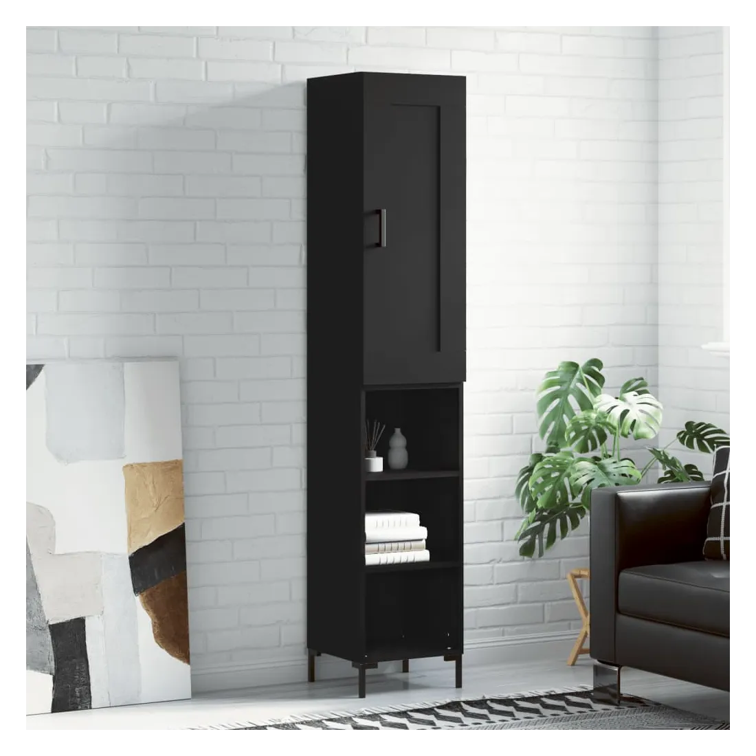 Buffet haut Noir 34,5x34x180 cm Bois d'ingénierie