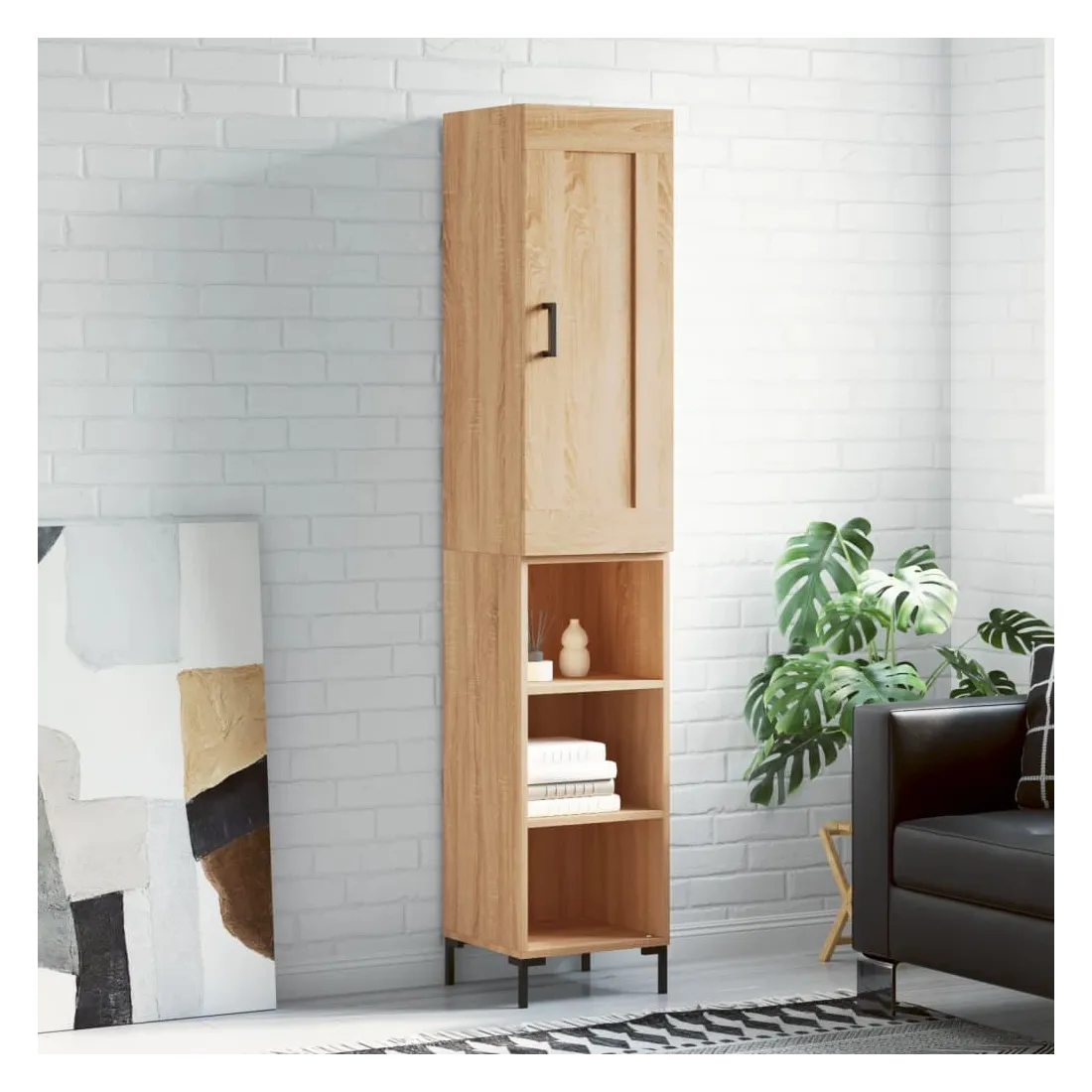 Cherchez-vous un buffet haut de gamme stylé ? Ce buffet haut ajoute un charme élégant à votre intérieur existant ! Matériau durable : le bois d'ingénierie est d'une qualité exceptionnelle avec une surface lisse et se caractérise par sa solidité, stabilité et résistance à l'humidité. Fabriquée en bois d'ingénierie, l'armoire est robuste et durable.Grand espace de rangement : l'armoire latérale offre un grand espace de rangement pour garder vos différents articles essentiels quotidiens bien organisés et facilement accessibles.Porte pratique : gardez votre espace sans encombrement en cachant de petits objets essentiels derrière la porte de l'armoire haute.Pieds en métal : les pieds en métal ajoutent un style calme à votre intérieur tout en assurant la stabilité. Attention :Pour éviter qu'il ne soit renversé, ce produit doit être utilisé avec le dispositif de fixation au mur fourni. Bon à savoir :Les vis et les chevilles pour l'intérieur du mur ne sont pas incluses. Nous vous conseillons de trouver et d'utiliser des vis et des chevilles adaptées spécifiquement à vos murs. Si vous n'êtes pas sûr, vous pouvez consulter un professionnel. Veuillez lire et suivre chaque étape des instructions.