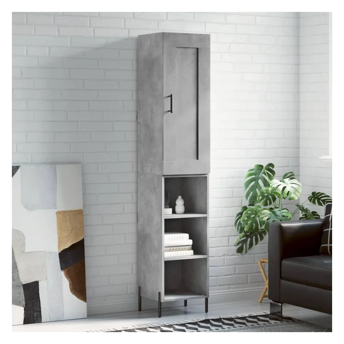 Cherchez-vous un buffet haut de gamme stylé ? Ce buffet haut ajoute un charme élégant à votre intérieur existant ! Matériau durable : le bois d'ingénierie est d'une qualité exceptionnelle avec une surface lisse et se caractérise par sa solidité, stabilité et résistance à l'humidité. Fabriquée en bois d'ingénierie, l'armoire est robuste et durable.Grand espace de rangement : l'armoire latérale offre un grand espace de rangement pour garder vos différents articles essentiels quotidiens bien organisés et facilement accessibles.Porte pratique : gardez votre espace sans encombrement en cachant de petits objets essentiels derrière la porte de l'armoire haute.Pieds en métal : les pieds en métal ajoutent un style calme à votre intérieur tout en assurant la stabilité. Attention :Pour éviter qu'il ne soit renversé, ce produit doit être utilisé avec le dispositif de fixation au mur fourni. Bon à savoir :Les vis et les chevilles pour l'intérieur du mur ne sont pas incluses. Nous vous conseillons de trouver et d'utiliser des vis et des chevilles adaptées spécifiquement à vos murs. Si vous n'êtes pas sûr, vous pouvez consulter un professionnel. Veuillez lire et suivre chaque étape des instructions.