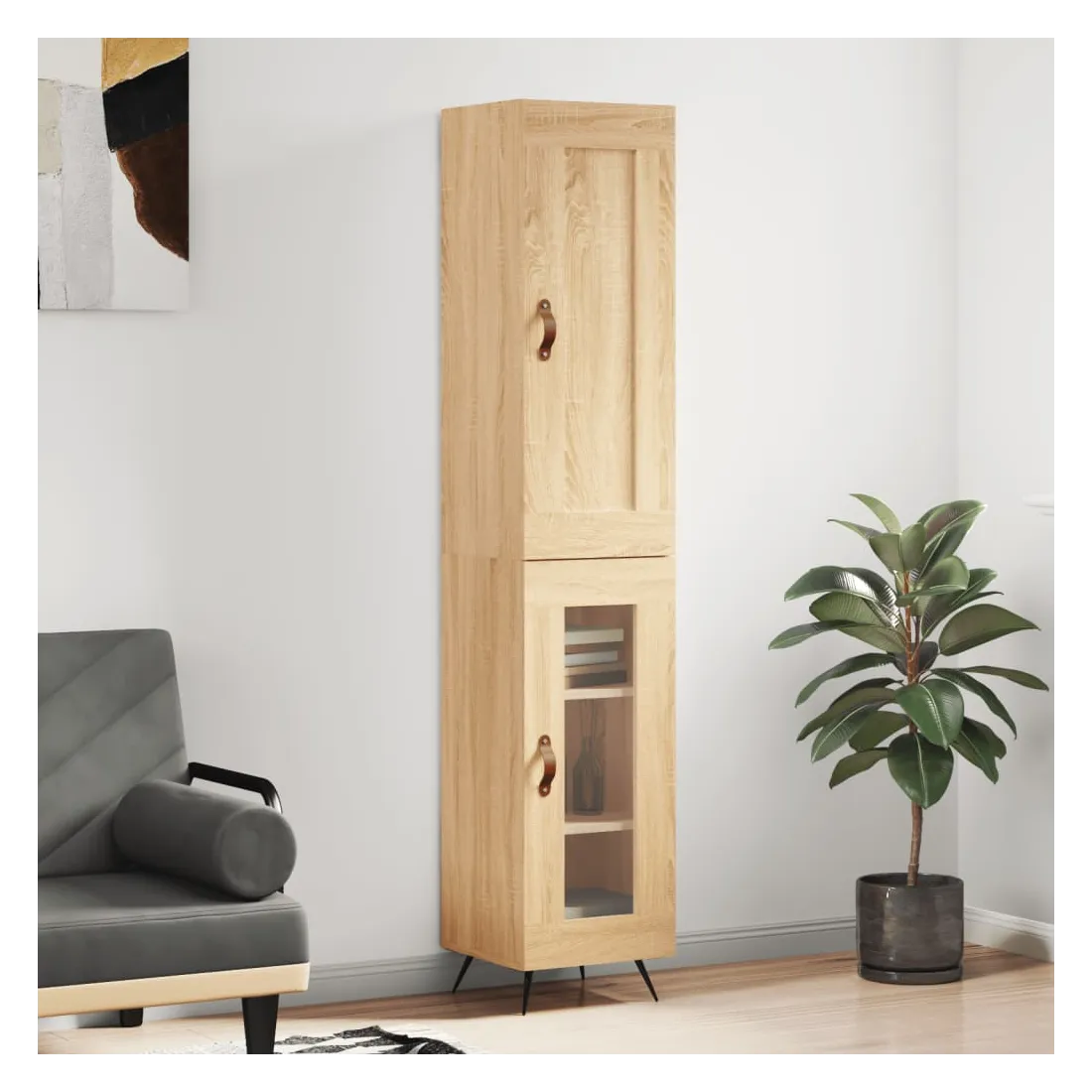 vidaXLCherchez-vous un buffet haut de gamme stylé ? Ce buffet haut ajoute un charme élégant à votre intérieur existant ! Matériau durable : le bois d'ingénierie est d'une qualité exceptionnelle avec une surface lisse et se caractérise par sa solidité, stabilité et résistance à l'humidité. Fabriquée en bois d'ingénierie, l'armoire est robuste et durable.Grand espace de rangement : l'armoire latérale offre un grand espace de rangement pour garder vos différents articles essentiels quotidiens bien organisés et facilement accessibles.Portes pratiques : gardez votre espace sans encombrement en cachant de petits objets essentiels derrière les portes de cette armoire haute. De plus, la porte en verre vous permet de voir clairement vos objets et de les retrouver facilement.Pieds en métal : les pieds en métal ajoutent un style calme à votre intérieur tout en assurant la stabilité. Attention :Pour éviter qu'il ne soit renversé, ce produit doit être utilisé avec le dispositif de fixation au mur fourni. Bon à savoir :Les vis et les chevilles pour l'intérieur du mur ne sont pas incluses. Nous vous conseillons de trouver et d'utiliser des vis et des chevilles adaptées spécifiquement à vos murs. Si vous n'êtes pas sûr, vous pouvez consulter un professionnel. Veuillez lire et suivre chaque étape des instructions.