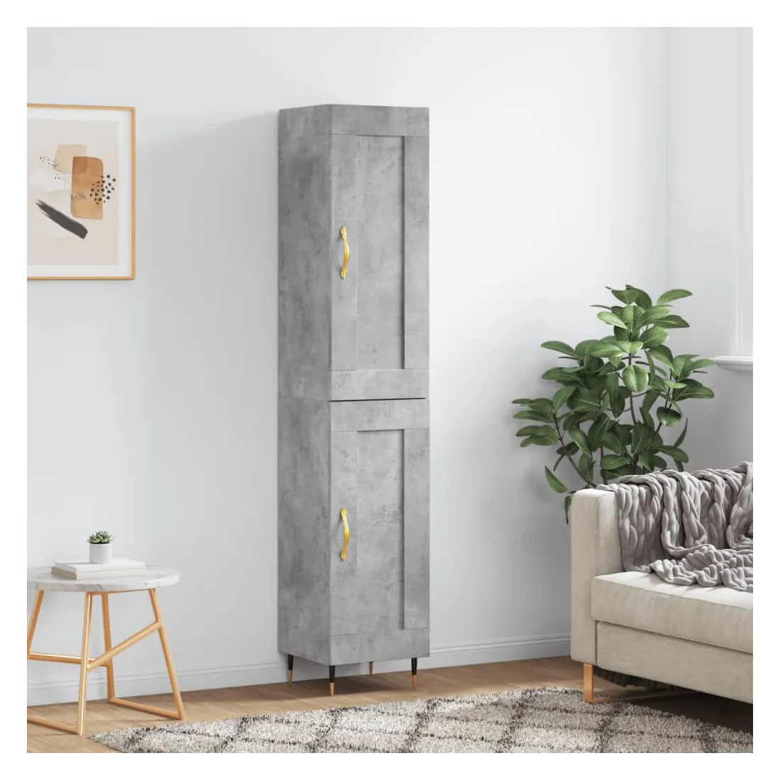 Buffet haut Gris béton 34,5x34x180 cm Bois d'ingénierie