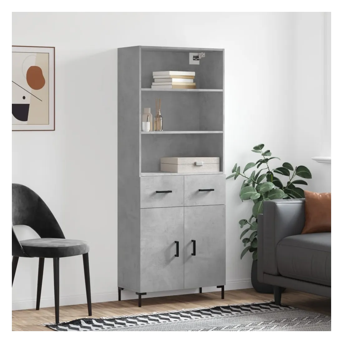 Buffet haut Gris béton 69,5x34x180 cm Bois d'ingénierie