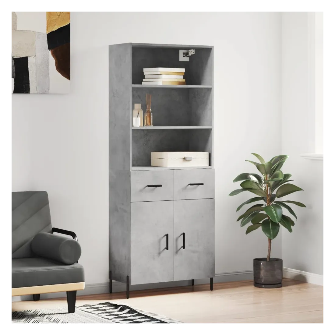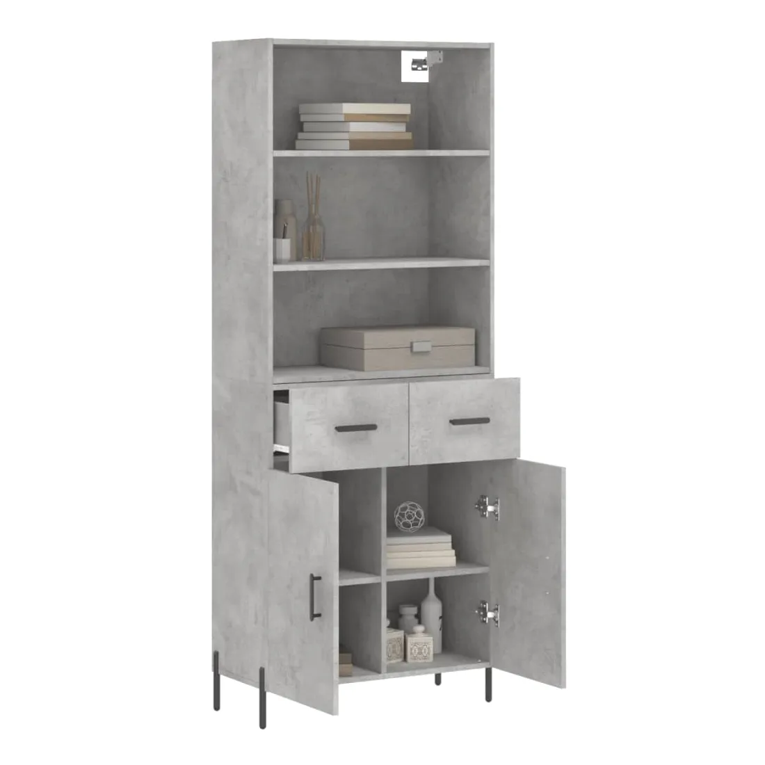 Buffet haut Gris béton 69,5x34x180 cm Bois d'ingénierie