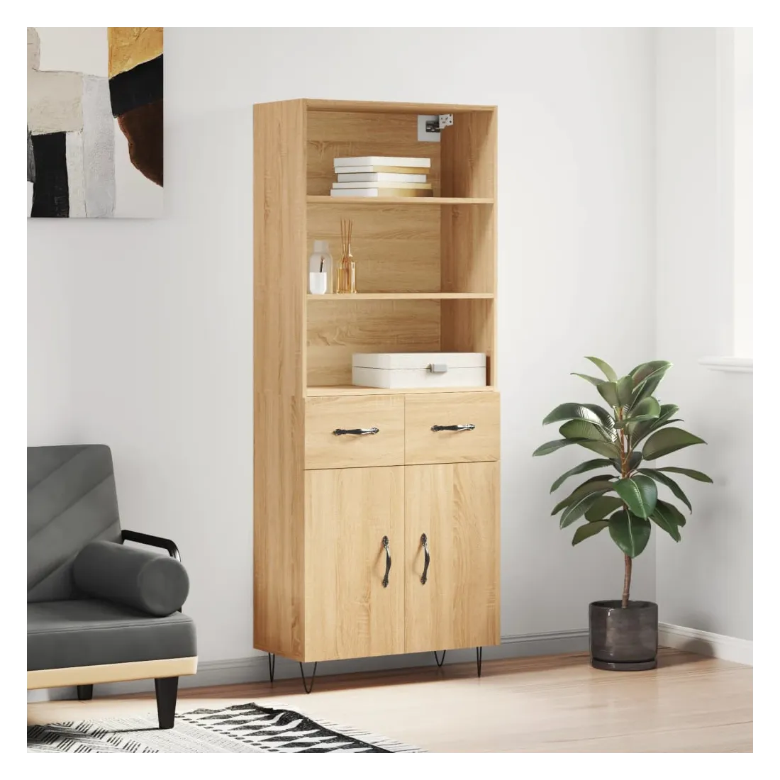 Cherchez-vous un buffet haut de gamme stylé ? Ce buffet haut ajoute un charme élégant à votre intérieur existant ! Matériau durable : le bois d'ingénierie est d'une qualité exceptionnelle avec une surface lisse et présente également résistance, stabilité et résistance à l'humidité.Grand espace de rangement : l'armoire offre un grand espace de rangement pour garder vos différents articles essentiels quotidiens bien organisés et facilement accessibles.Porte pratique : gardez votre espace sans encombrement en cachant de petits articles essentiels derrière les portes de l'armoire de rangement.Pieds en métal : les pieds en métal ajoutent un style calme à votre intérieur tout en assurant la stabilité. Attention :Pour éviter qu'il ne soit renversé, ce produit doit être utilisé avec le dispositif de fixation au mur fourni. Bon à savoir :Les vis et les chevilles pour l'intérieur du mur ne sont pas incluses. Nous vous conseillons de trouver et d'utiliser des vis et des chevilles adaptées spécifiquement à vos murs. Si vous n'êtes pas sûr, vous pouvez consulter un professionnel. Veuillez lire et suivre chaque étape des instructions.