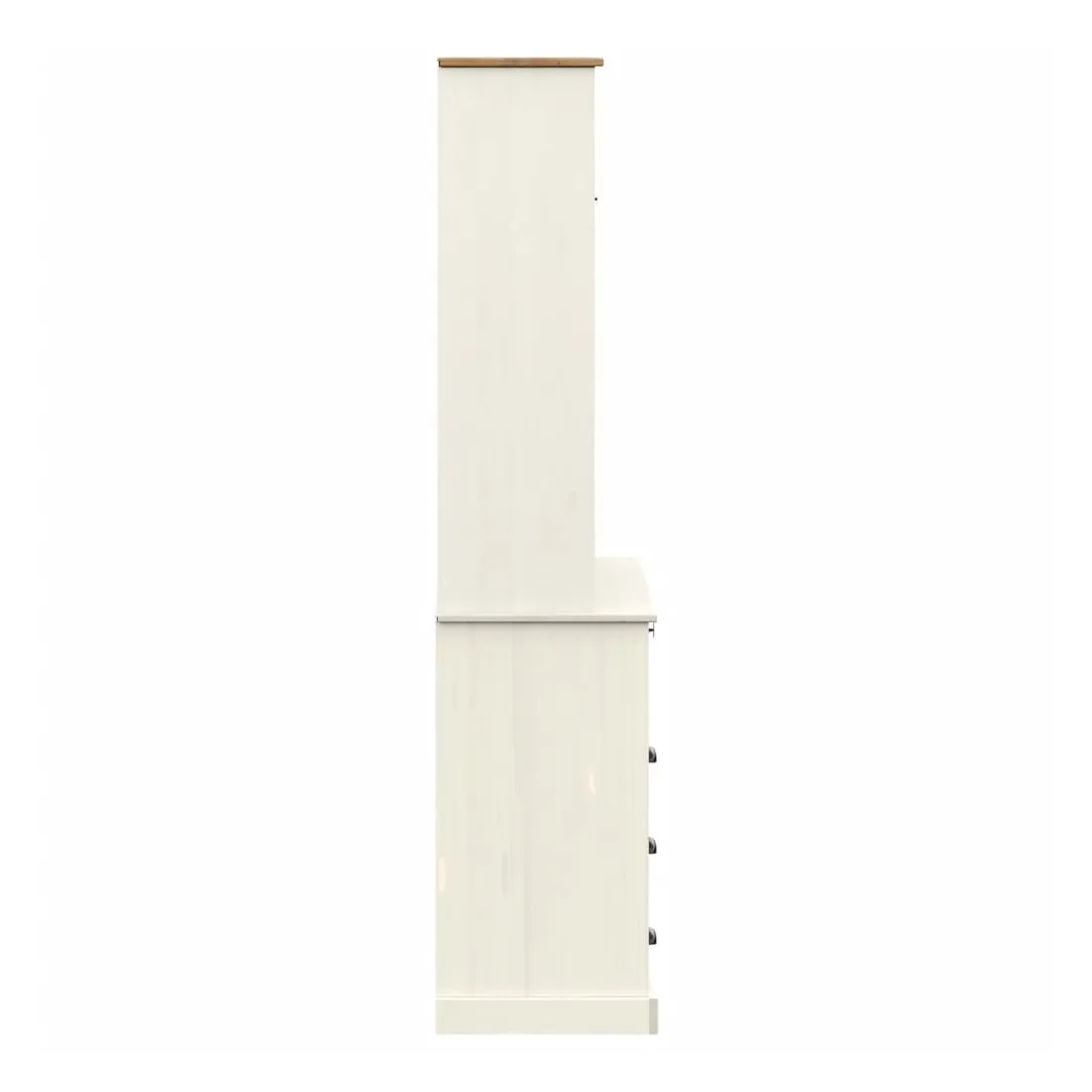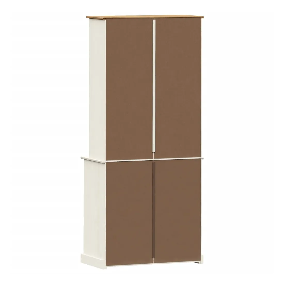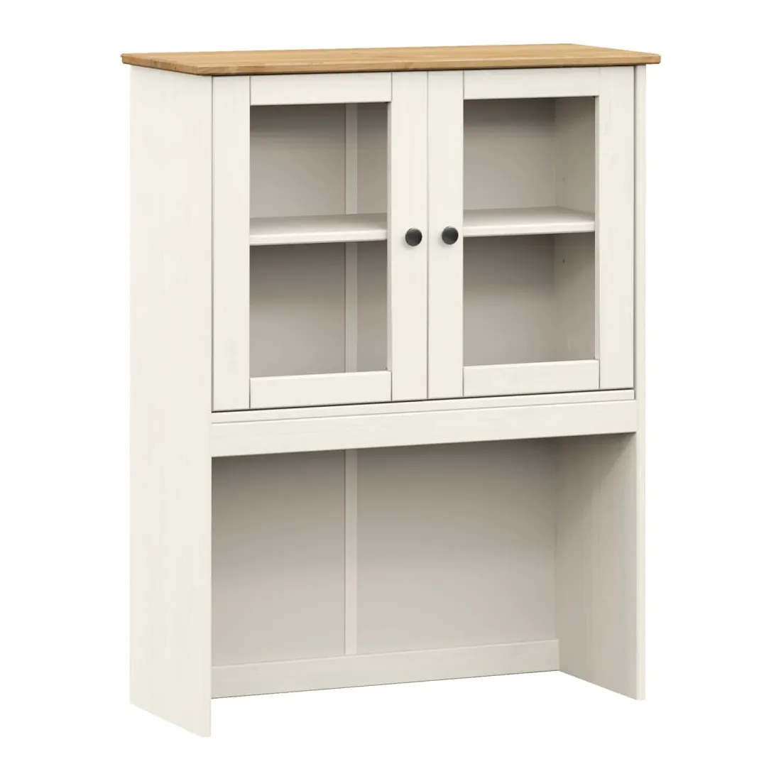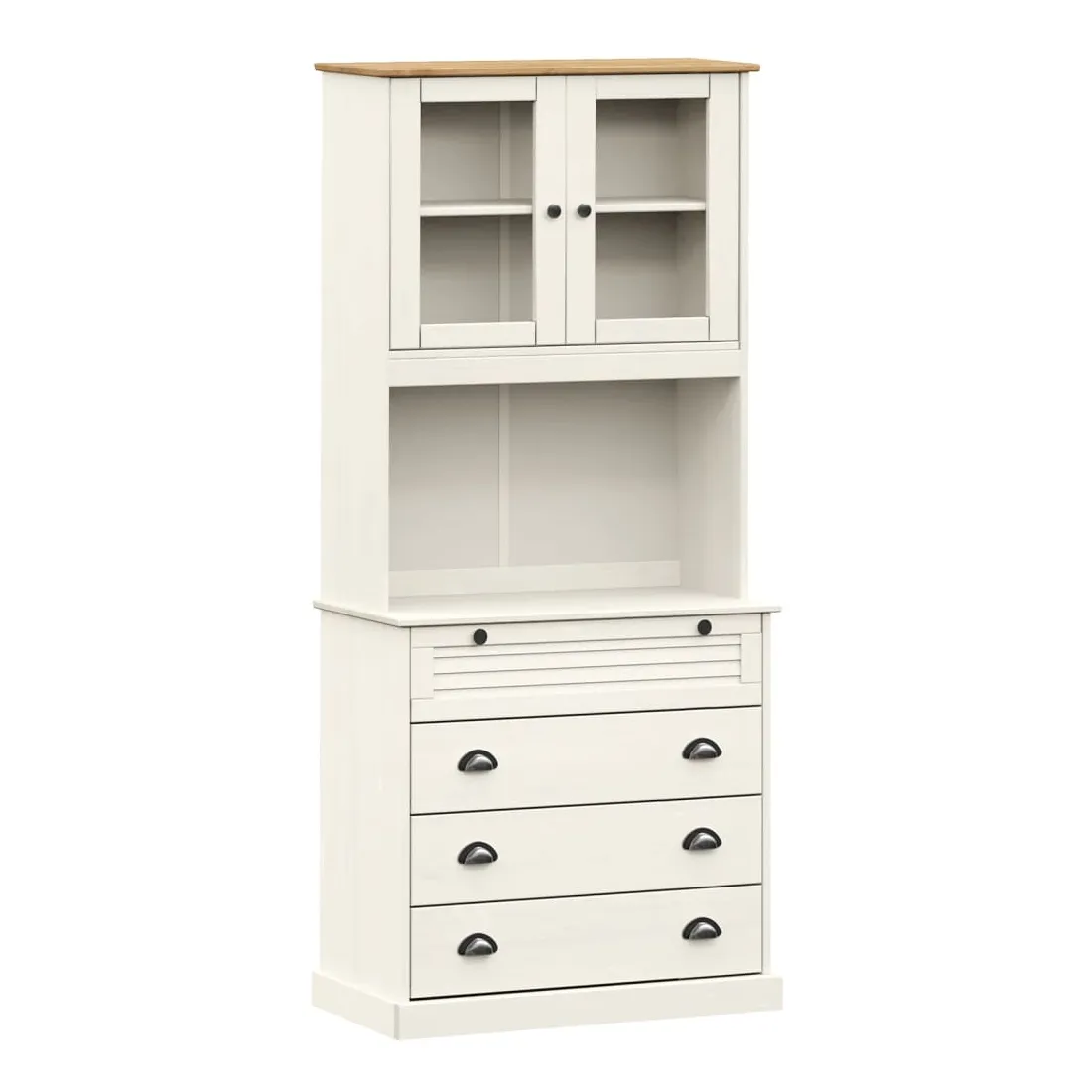 Cherchez-vous un buffet haut de gamme stylé ? Ce buffet haut ajoute un charme élégant à votre intérieur existant ! Bois de pin massif : le bois de pin massif est un beau matériau naturel. Le bois de pin a un grain droit et les nœuds lui confèrent son aspect rustique caractéristique. Fabriqué en pin massif, le buffet est durable et robuste.Grand espace de rangement : l'armoire dispose de tiroirs et de compartiments, offrant suffisamment d'espace pour garder votre collection de tasses, plats et petits objets décoratifs en bon ordre.Portes en verre : les portes de ce plan de travail en bois sont plus robustes et plus sûres grâce à leur verre trempé poli. Elles permettent également de voir à l'intérieur de la moitié supérieure et d'exposer les objets de manière élégante.Facile à entretenir : le buffet est facile à nettoyer à l'aide d'un chiffon humide et nécessite peu d'entretien.Poignées et boutons en métal : l'armoire haute est équipée de poignées et de boutons en métal qui facilitent l'ouverture et la fermeture de l'armoire, tout en lui conférant une beauté supplémentaire. Attention :Pour éviter qu'il ne soit renversé, ce produit doit être utilisé avec le dispositif de fixation au mur fourni.