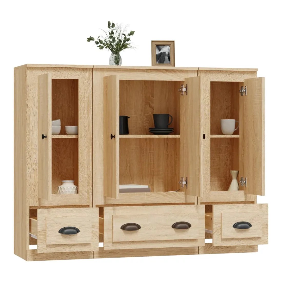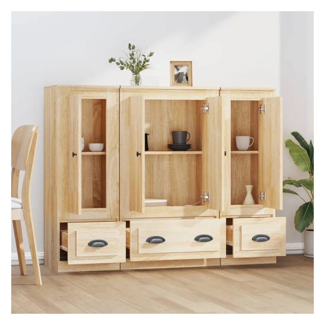 Vous êtes à la recherche de buffets élégants ? Ces buffets ajoutent un charme élégant à votre intérieur existant ! Matériau durable : le bois d'ingénierie est d'une qualité exceptionnelle avec une surface lisse et présente également résistance, stabilité et résistance à l'humidité.Grand espace de rangement : le buffet offre un grand espace de rangement pour garder vos différents articles essentiels quotidiens bien organisés et facilement accessibles.Design intemporel : cette armoire présente des lignes épurées et simples, ainsi qu'un look minimaliste qui ajoute un style intemporel à votre décor intérieur actuel. Attention :Pour éviter qu'il ne soit renversé, ce produit doit être utilisé avec le dispositif de fixation au mur fourni.