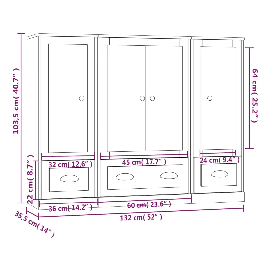 - Dimensions totales : 132 x 35,5 x 103,5 cm (L x l x H)