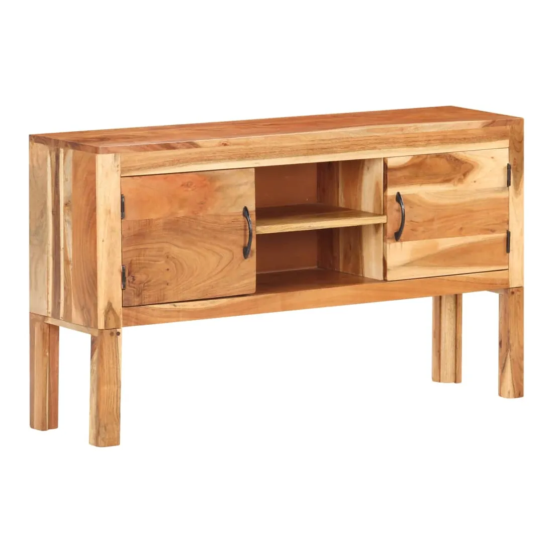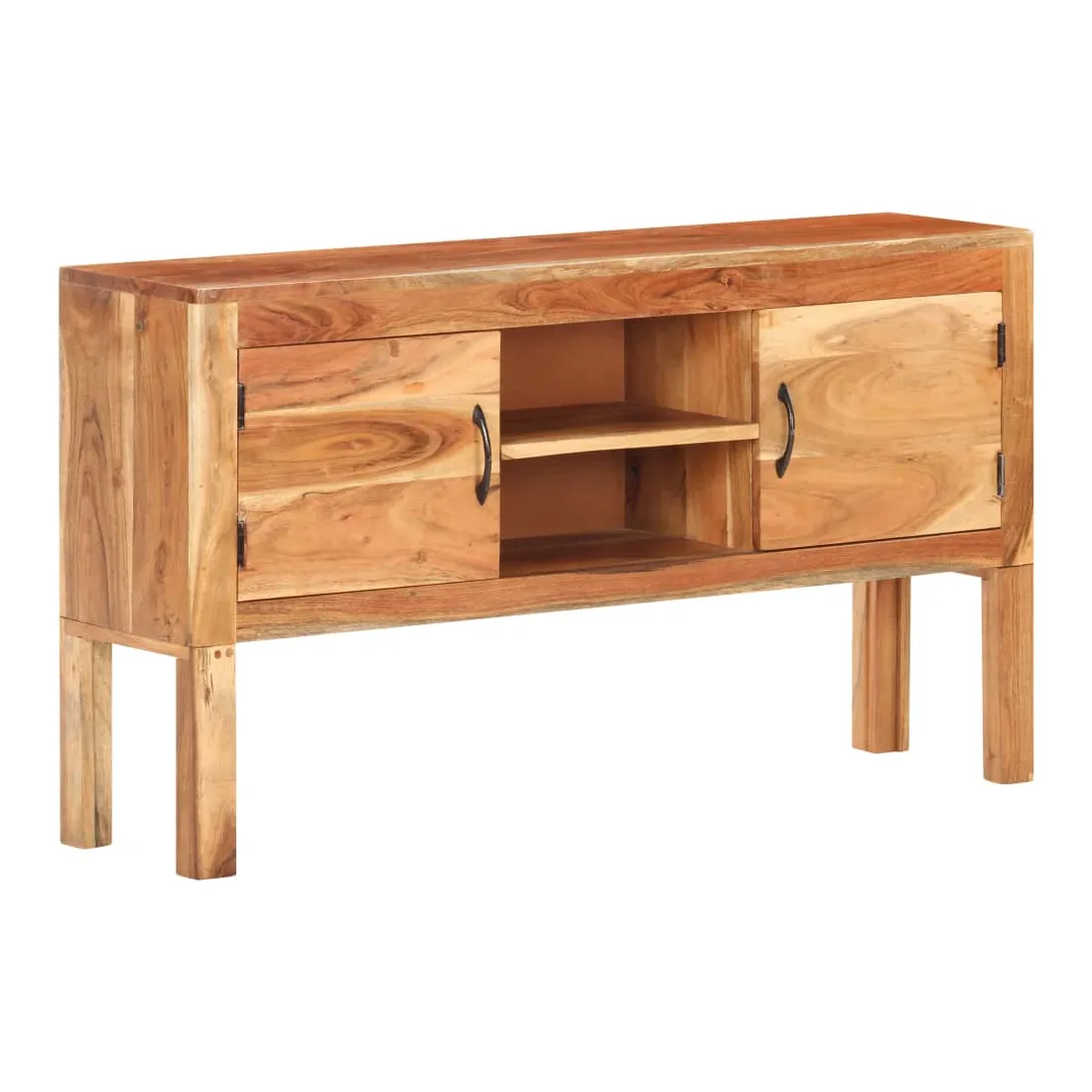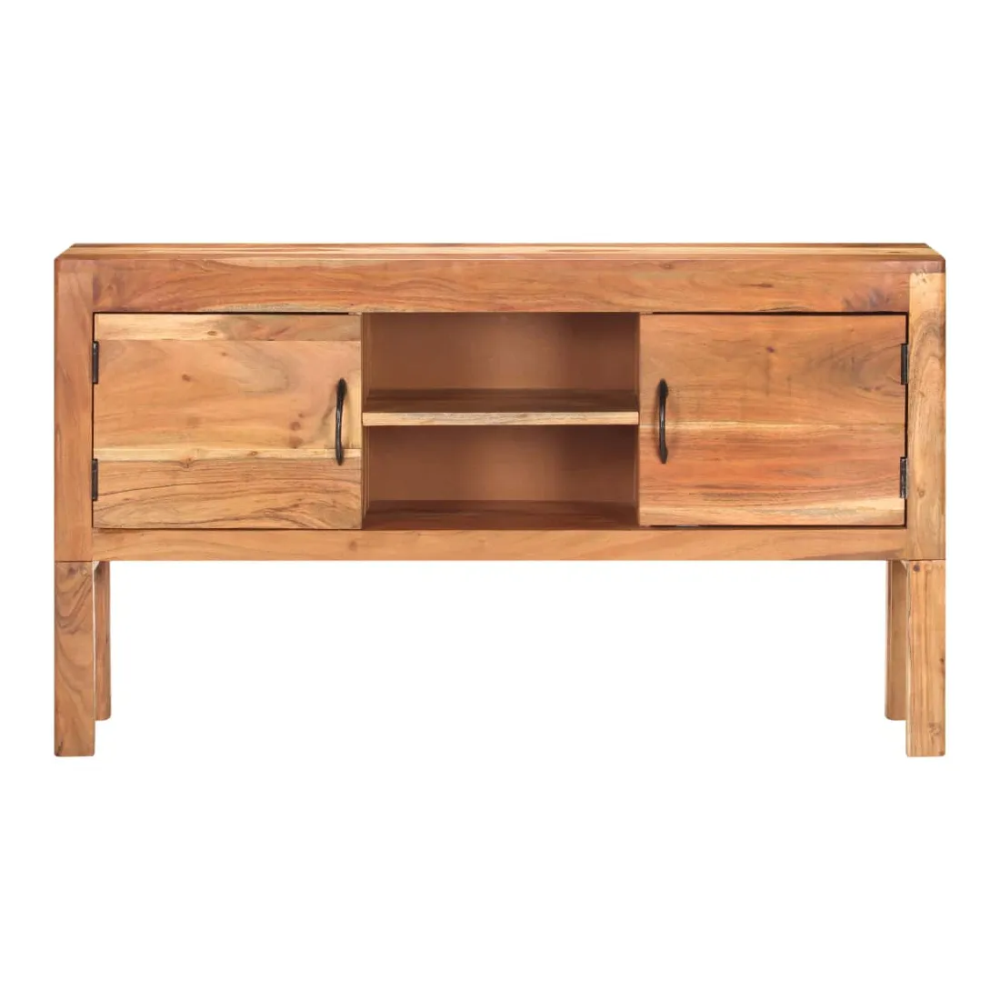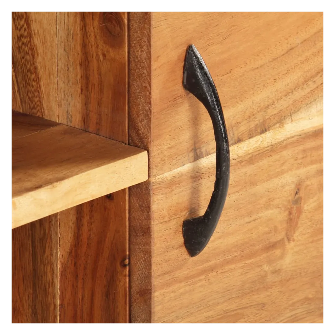 Ce buffet en bois d’acacia massif au design pratique est parfait pour apporter une présence classique à votre espace de vie. Vous pouvez également le placer sous le miroir. Cette armoire de rangement est faite de bois d’acacia massif avec une finition naturelle, qui est un bois dur avec des grains denses. L’armoire latérale magnifiquement conçue est stable, durable et attire l'attention. En outre, l’artisanat exquis et les belles veines du bois font chaque pièce légèrement différente l'une de l'autre. Son dessus large et robuste est idéal pour exposer des objets décoratifs, des cadres photo ou des plantes en pot. Ce buffet solide, doté de deux portes et de deux compartiments ouverts, offre amplement d’espace pour les magazines, les livres et garde toutes sortes de petits objets organisés et à portée de main. Remarque importante : les couleurs varient d'une pièce à l'autre, rendant chaque pièce unique. La livraison est aléatoire, garantissant l'exclusivité et l'individualité de votre produit.