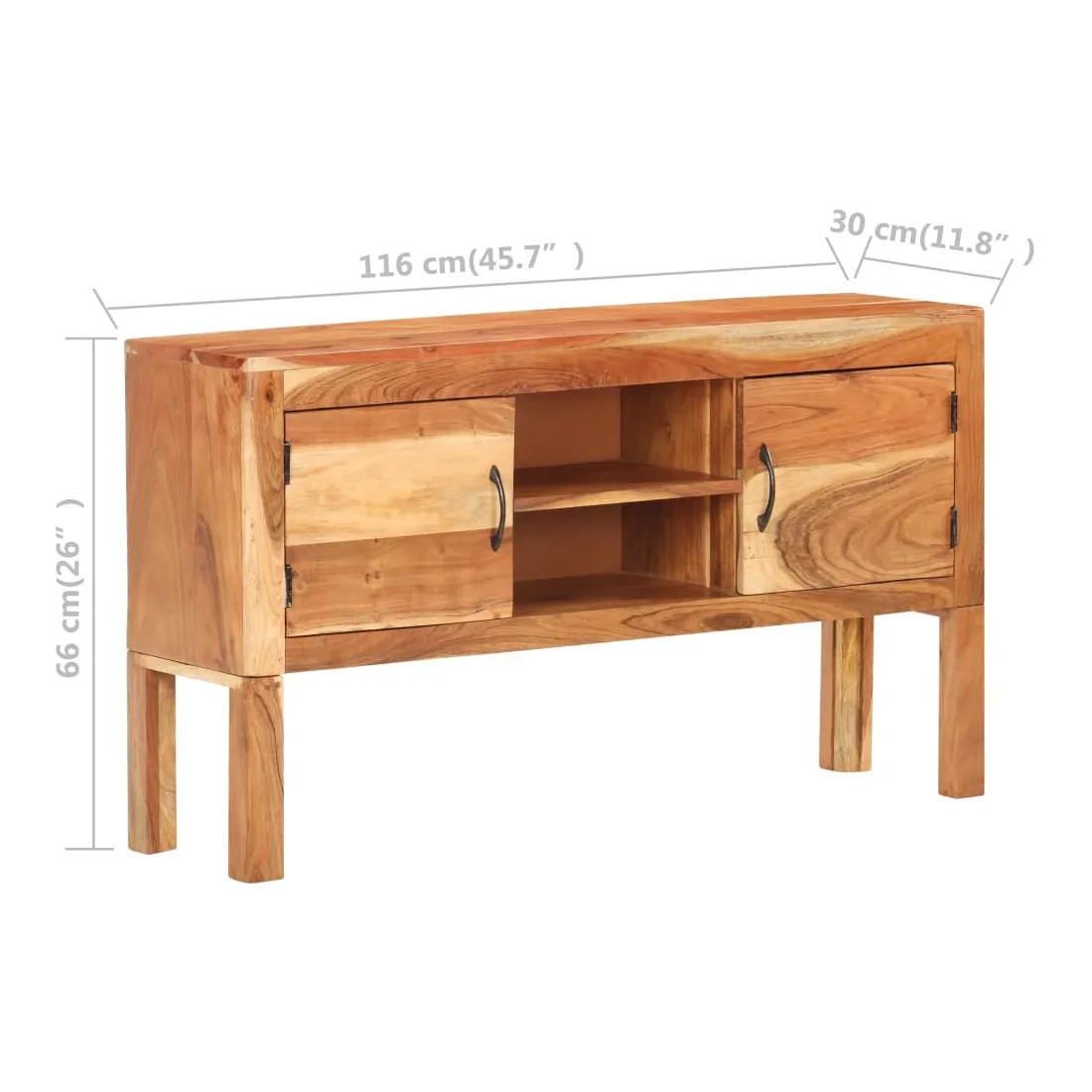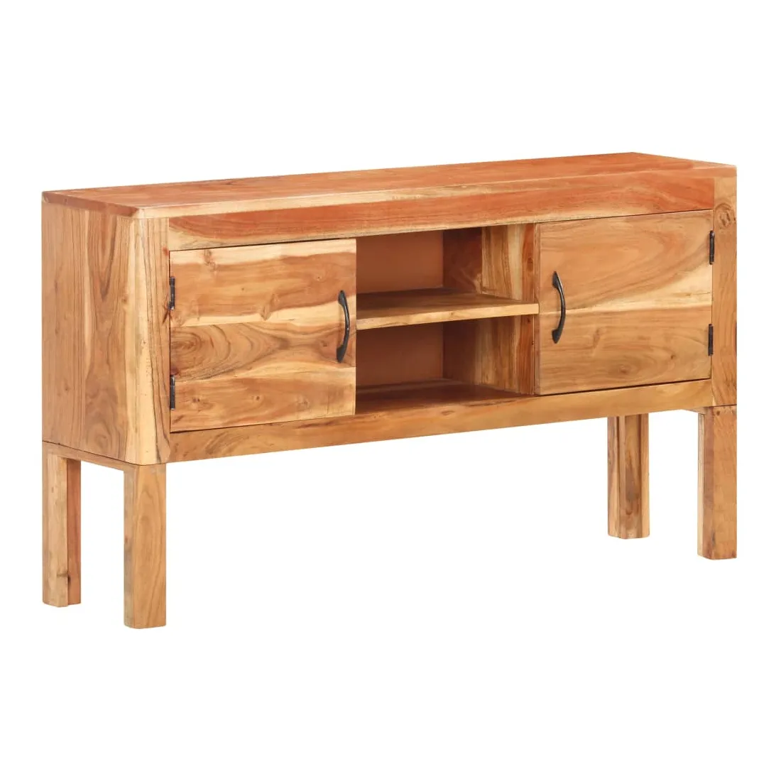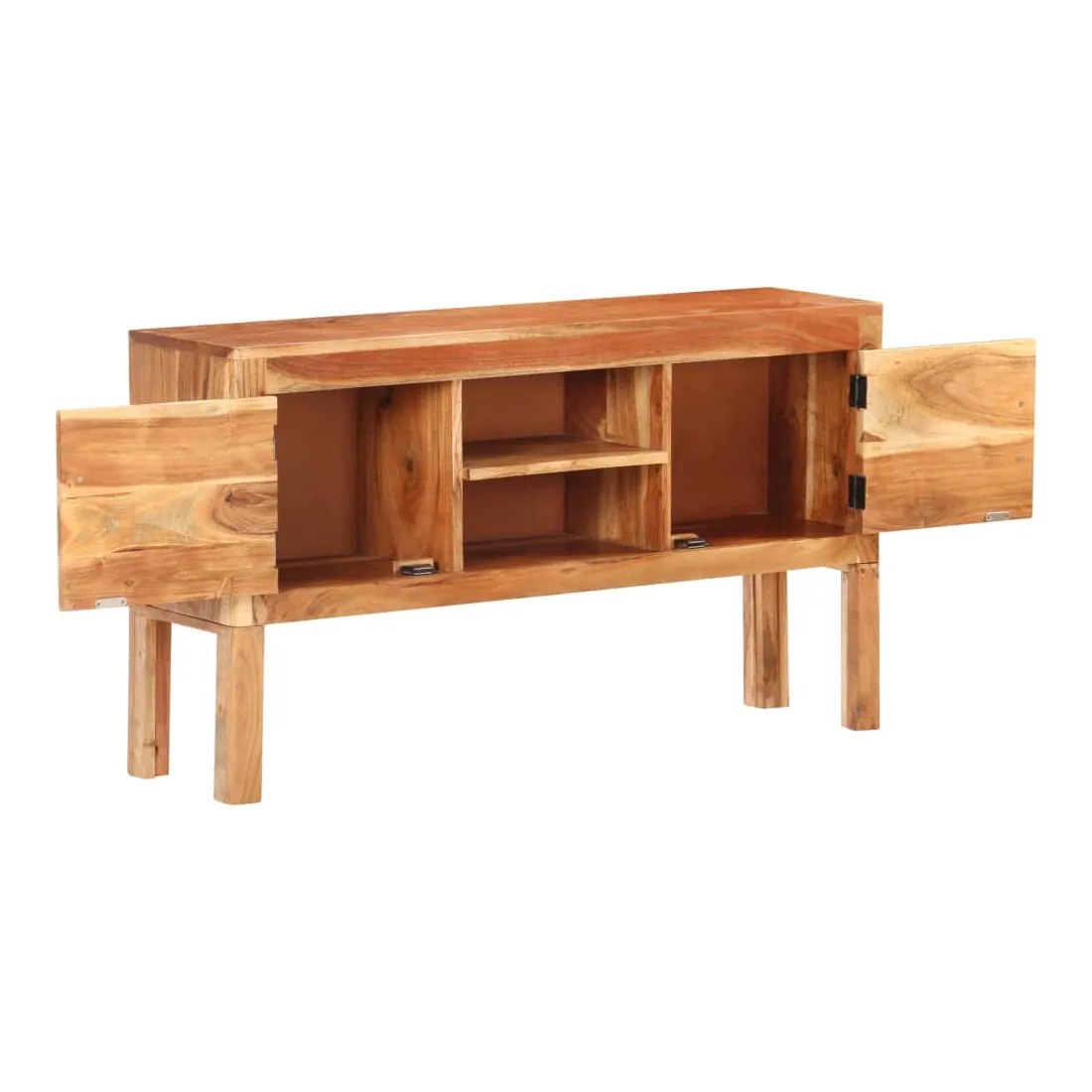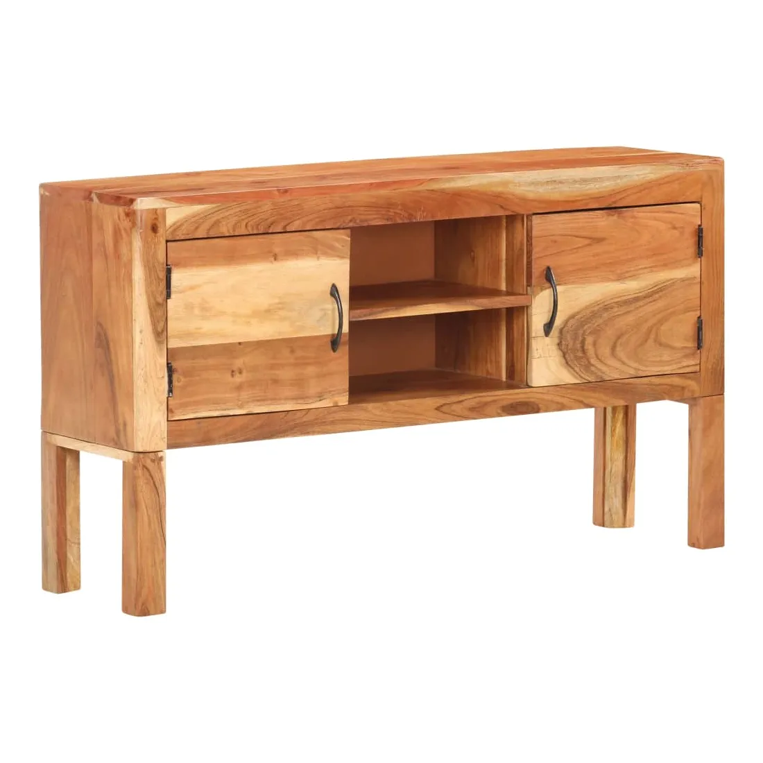 Ce buffet en bois d’acacia massif au design pratique est parfait pour apporter une présence classique à votre espace de vie. Vous pouvez également le placer sous le miroir. Cette armoire de rangement est faite de bois d’acacia massif avec une finition naturelle, qui est un bois dur avec des grains denses. L’armoire latérale magnifiquement conçue est stable, durable et attire l'attention. En outre, l’artisanat exquis et les belles veines du bois font chaque pièce légèrement différente l'une de l'autre. Son dessus large et robuste est idéal pour exposer des objets décoratifs, des cadres photo ou des plantes en pot. Ce buffet solide, doté de deux portes et de deux compartiments ouverts, offre amplement d’espace pour les magazines, les livres et garde toutes sortes de petits objets organisés et à portée de main. Remarque importante : les couleurs varient d'une pièce à l'autre, rendant chaque pièce unique. La livraison est aléatoire, garantissant l'exclusivité et l'individualité de votre produit.