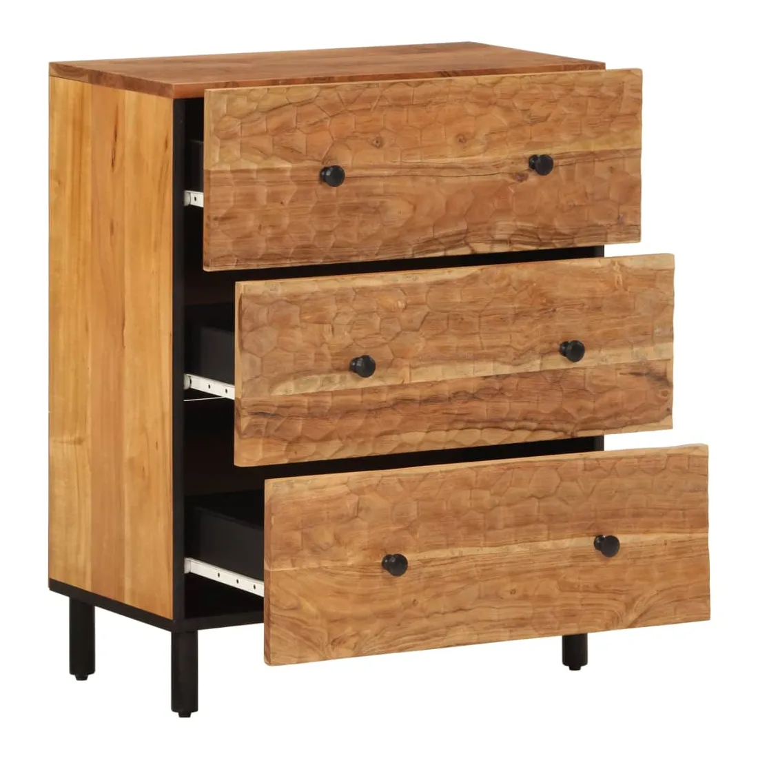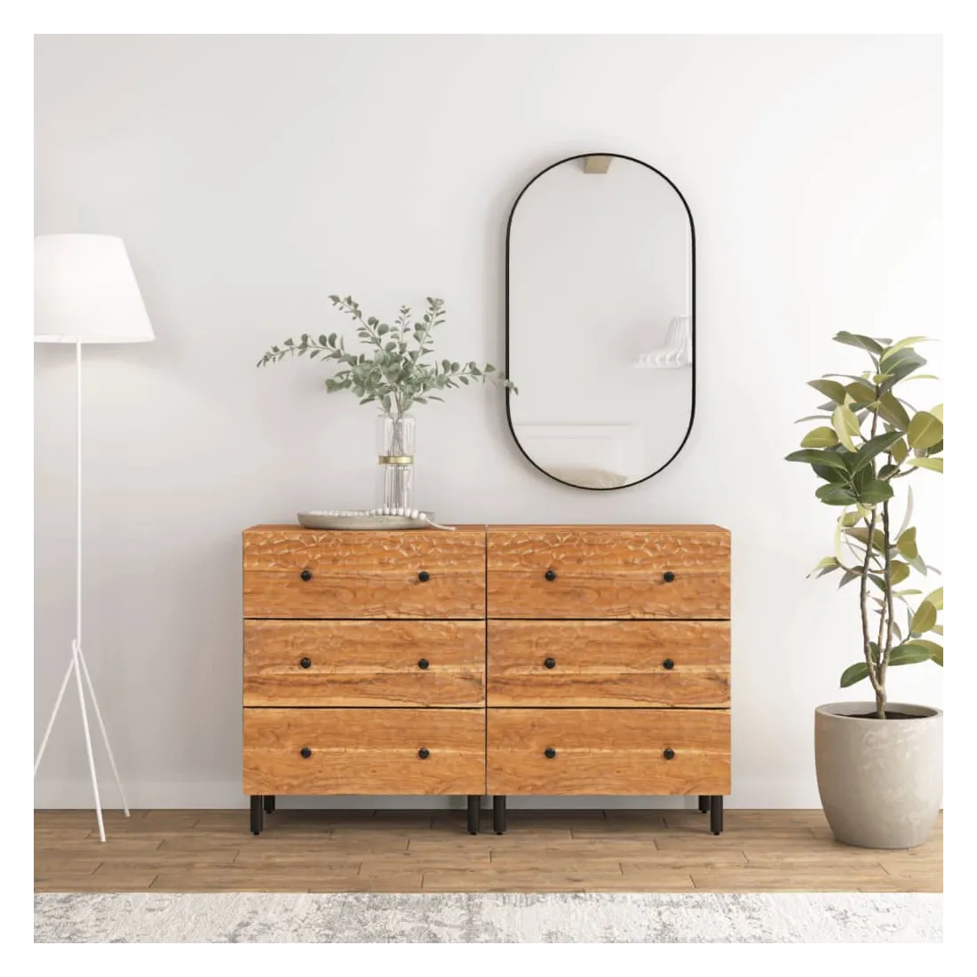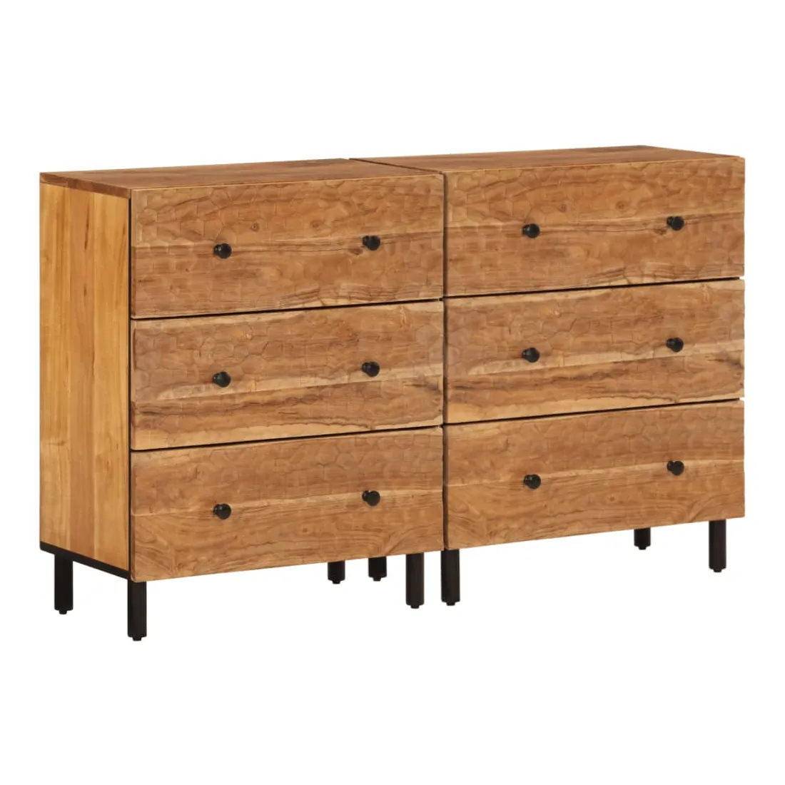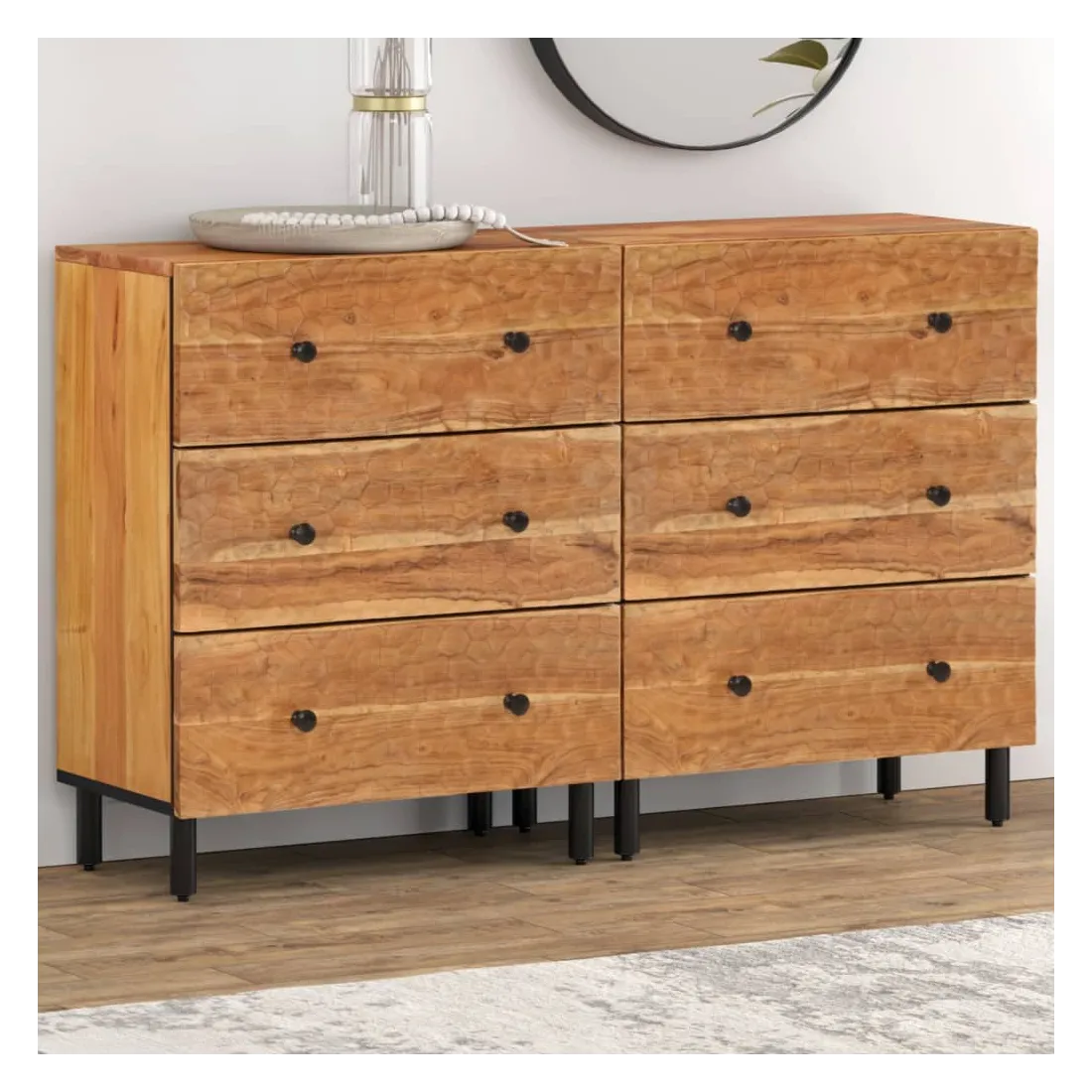 Ces armoires latérales, au look intemporel, sont conçues pour être un excellent supplément à votre maison. Bois d'acacia massif : le bois d'acacia massif est un matériau naturel magnifique. Le bois d'acacia un bois dur tropical, qui est dense, robuste et durable.Grand espace de rangement : l'armoire offre un grand espace de rangement pour garder vos différents objets essentiels du quotidien bien organisés et à portée de main.Fonction d'affichage : le dessus de l'armoire de rangement est idéal pour exposer vos objets décoratifs, albums photo ou petites plantes.Pieds robustes: les pieds en fer ajoutent à la robustesse et à la stabilité de la planche latérale. Attention :Pour éviter qu'il ne bascule, ce produit doit être utilisé avec le dispositif de fixation murale fourni.