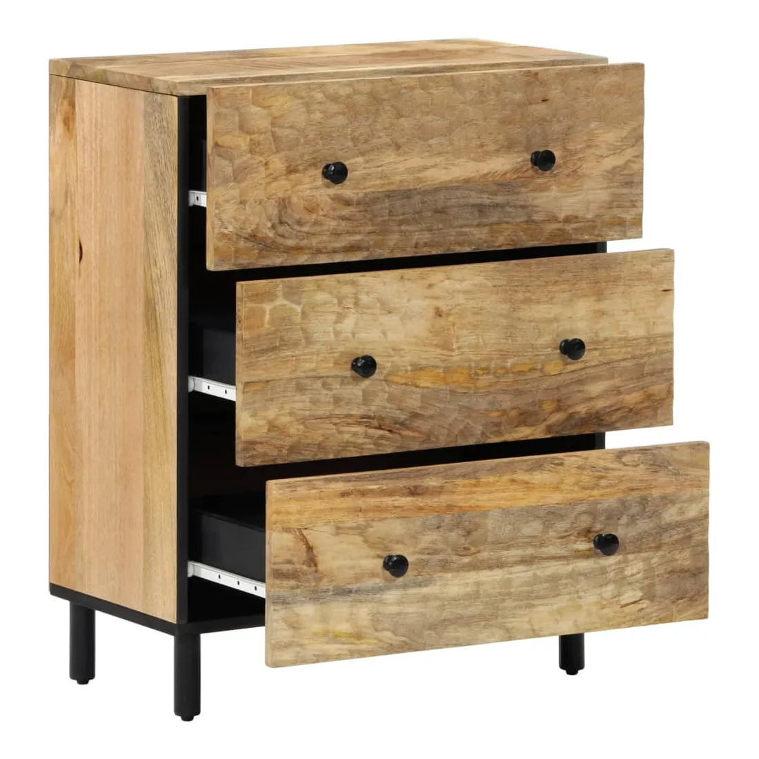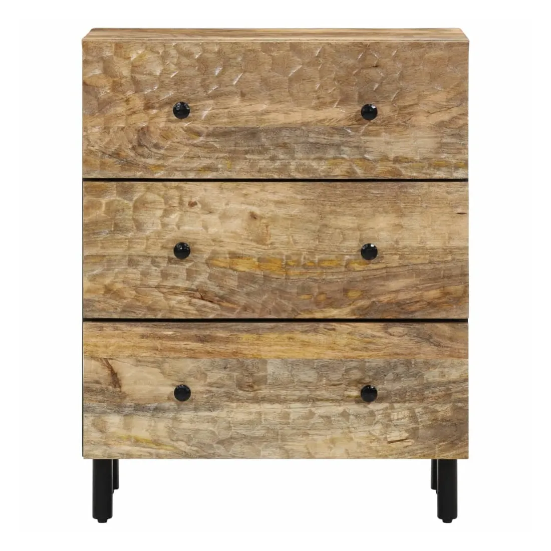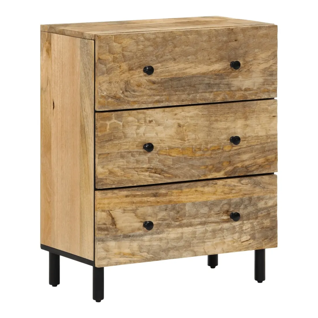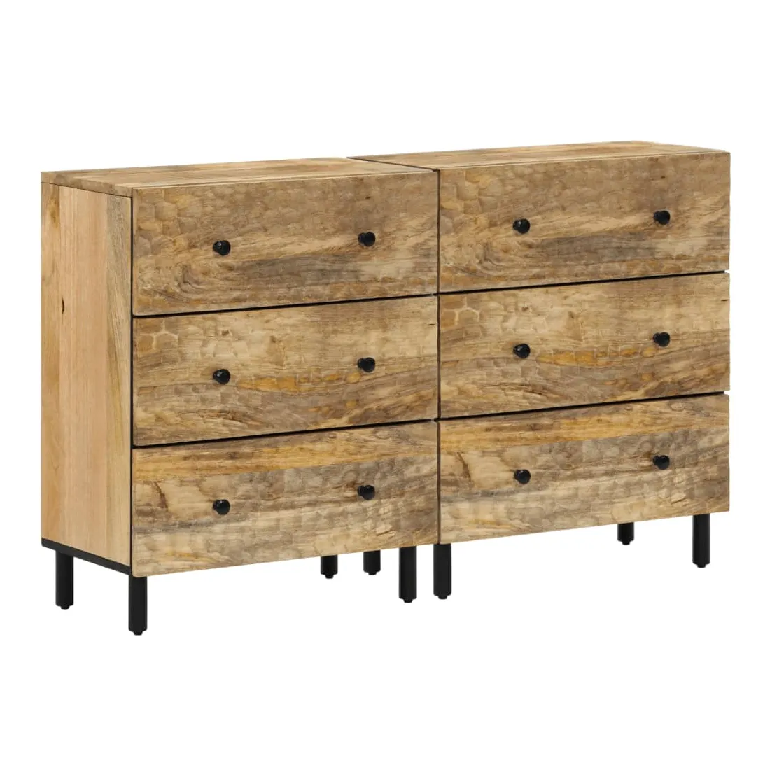 Ces armoires latérales, au look intemporel, sont conçues pour être un excellent supplément à votre maison. Bois de manguier massif : le bois de manguier massif est un bois dur tropical solide qui fait des meubles robustes. Ses beaux grains de bois rendent chaque meuble légèrement différent l'un de l'autre. Fabriquée en bois de manguier massif, le meuble est durable et stable.Grand espace de rangement : l'armoire offre un grand espace de rangement pour garder vos différents objets essentiels du quotidien bien organisés et à portée de main.Fonction d'affichage : le dessus de l'armoire de rangement est idéal pour exposer vos objets décoratifs, albums photo ou petites plantes.Pieds robustes: les pieds en fer ajoutent à la robustesse et à la stabilité de la planche latérale. Attention :Pour éviter qu'il ne bascule, ce produit doit être utilisé avec le dispositif de fixation murale fourni.