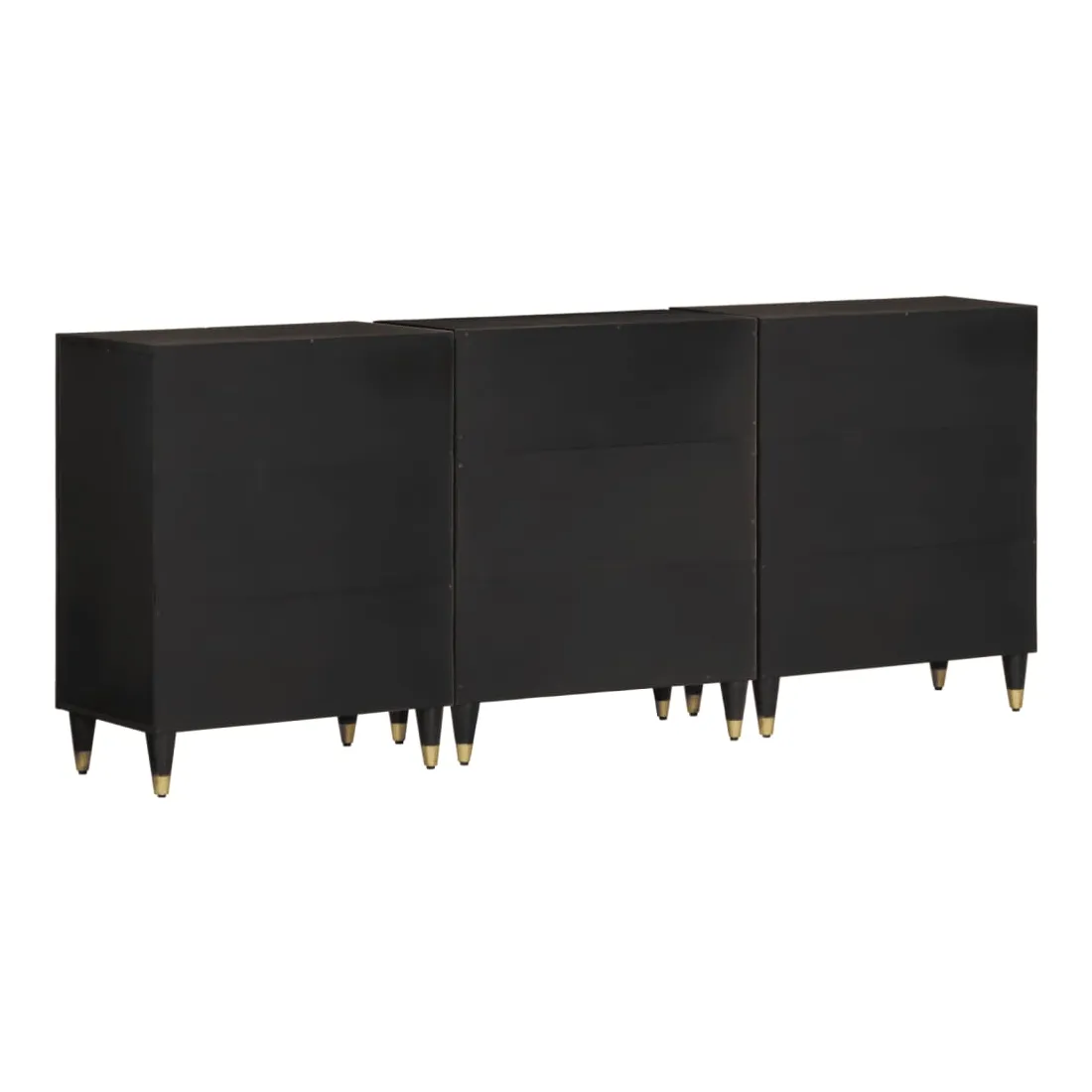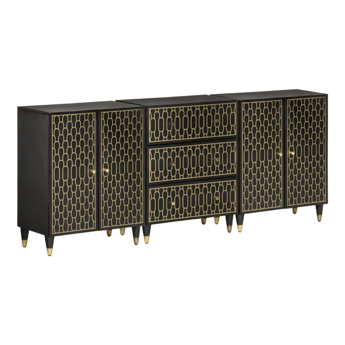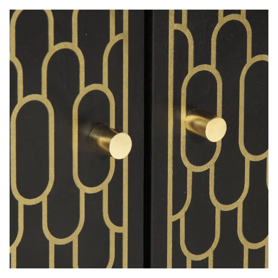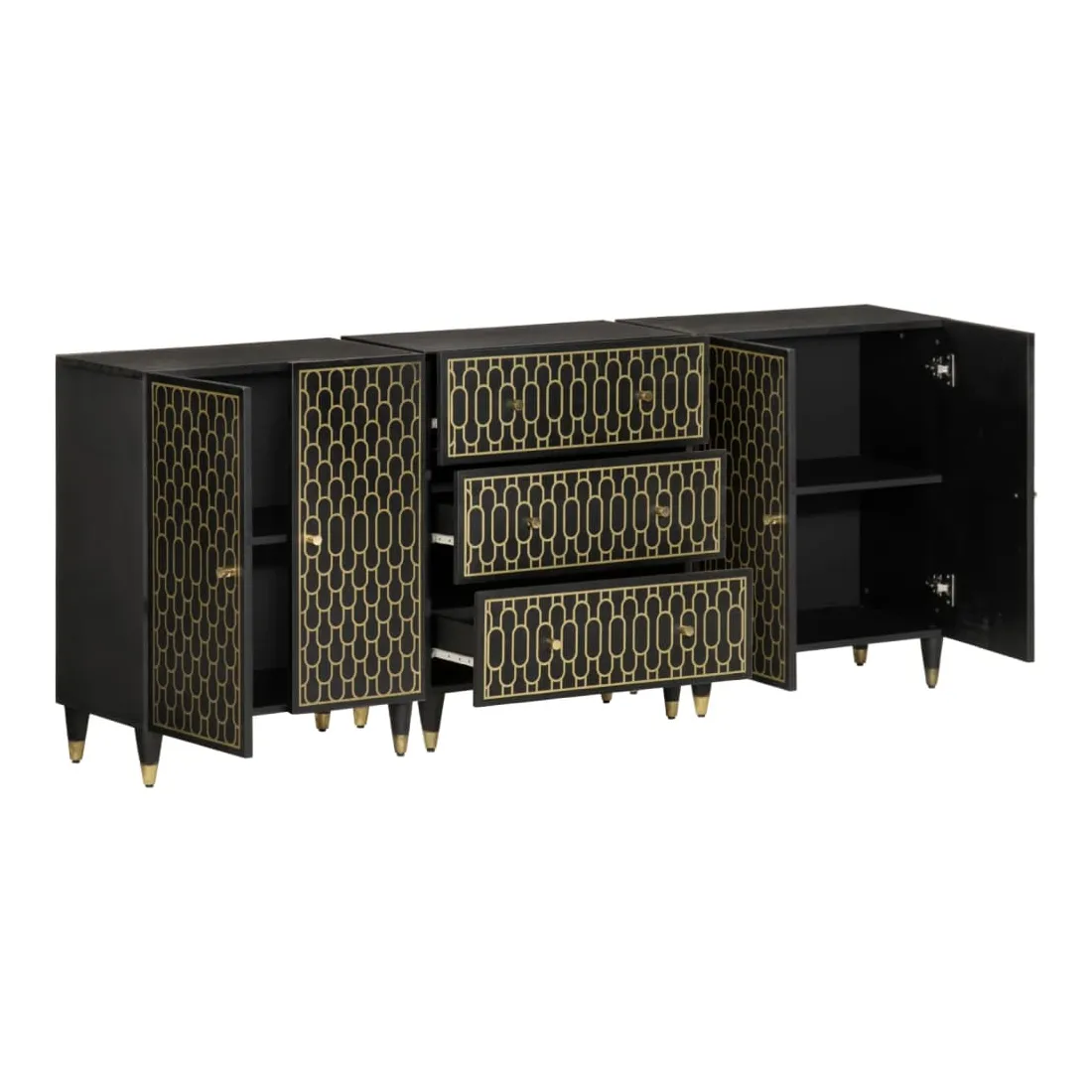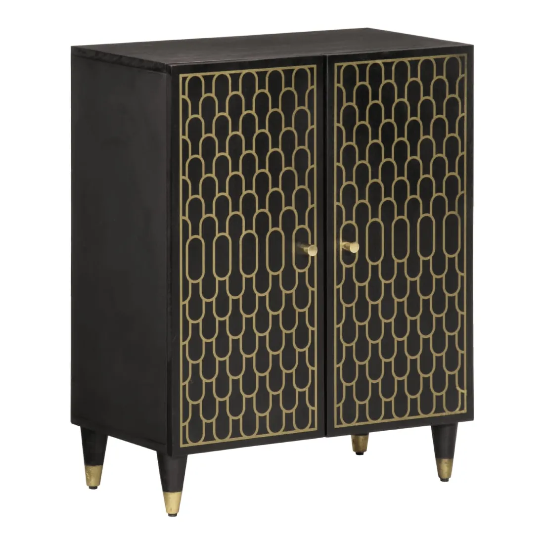 Ces armoires latérales, au look intemporel, sont conçues pour être un excellent supplément à votre maison. Bois de manguier massif : le bois de manguier massif est un bois dur tropical solide qui fait des meubles robustes. Ses beaux grains de bois rendent chaque meuble légèrement différent l'un de l'autre. Fabriquée en bois de manguier massif, le meuble est durable et stable.Grand espace de rangement : l'armoire offre un grand espace de rangement pour garder vos différents objets essentiels du quotidien bien organisés et à portée de main.Fonction d'affichage : le dessus de l'armoire de rangement est idéal pour exposer vos objets décoratifs, albums photo ou petites plantes.Pieds robustes: les pieds en fer ajoutent à la robustesse et à la stabilité de la planche latérale.Style rétro : l'organisateur de maison avec motifs floraux sculptés à la main apporte le luxe d'un style rétro à votre intérieur étant le point central de votre pièce. Bon à savoir :Chaque article est unique, avec des variations de couleurs et de grains. La livraison est aléatoire, ce qui garantit l'exclusivité et l'individualité de votre produit. Attention :Pour éviter qu'il ne bascule, ce produit doit être utilisé avec le dispositif de fixation murale fourni.