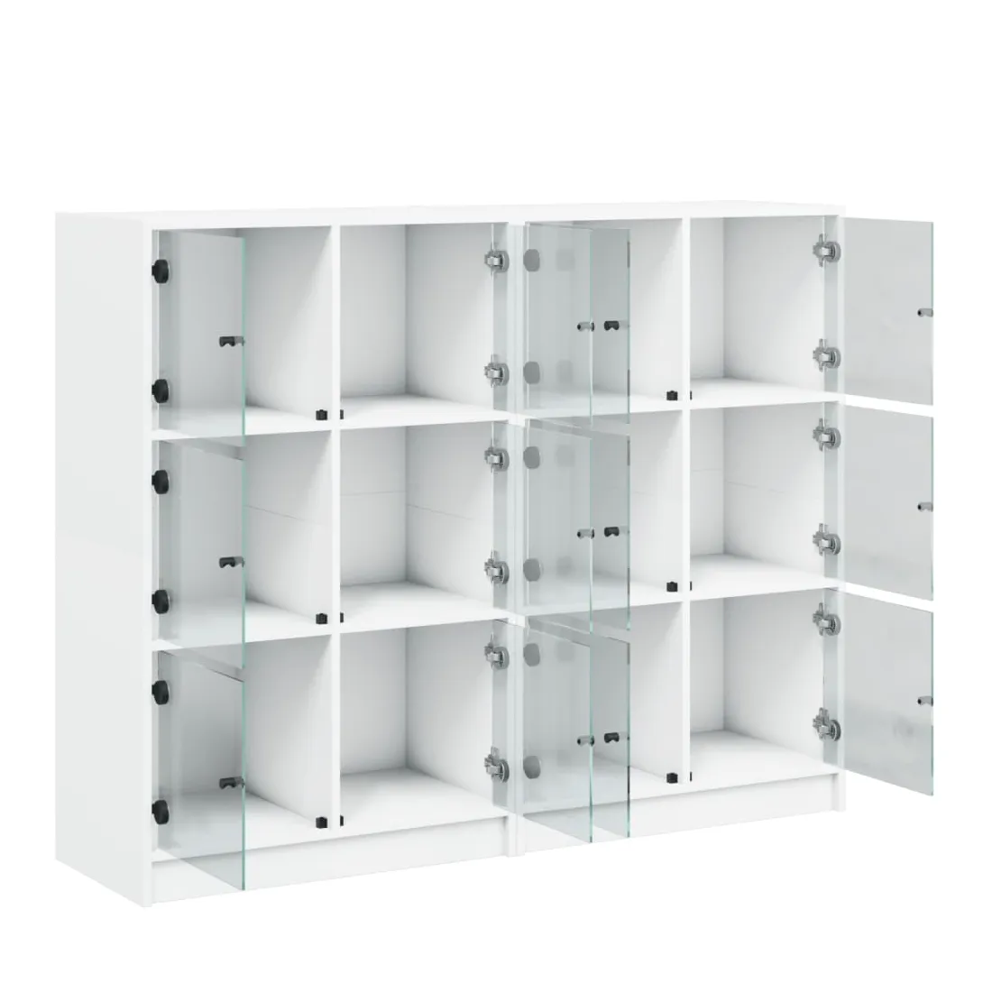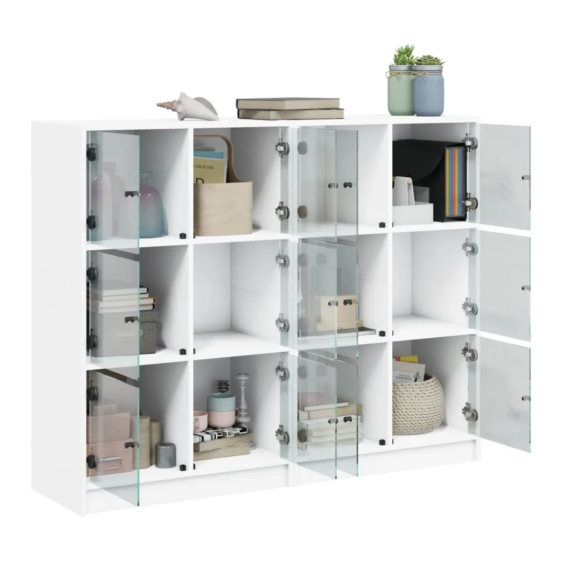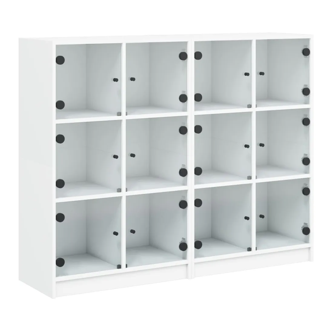 Cette bibliothèque offre une solution idéale pour organiser vos livres et ajoutera une touche de charme moderne à votre intérieur. Matériau robuste et durable : le bois d'ingénierie est d'une qualité exceptionnelle avec une surface lisse et présente également résistance, stabilité et résistance à l'humidité.Grand espace de rangement : la bibliothèque offre un grand espace de rangement pour garder votre collection de livres, magazines et documents en bon ordre.Dessus stable et robuste : le dessus de l'armoire de rangement est parfait pour exposer vos objets décoratifs, cadres photo et plantes en pot.Design pratique : gardez vos essentiels à l'abri de la poussière en les cachant derrière les portes vitrées. De plus, les poignées noires facilitent l'ouverture de la bibliothèque. Attention :Pour éviter qu'il ne bascule, ce produit doit être utilisé avec le dispositif de fixation murale fourni.
