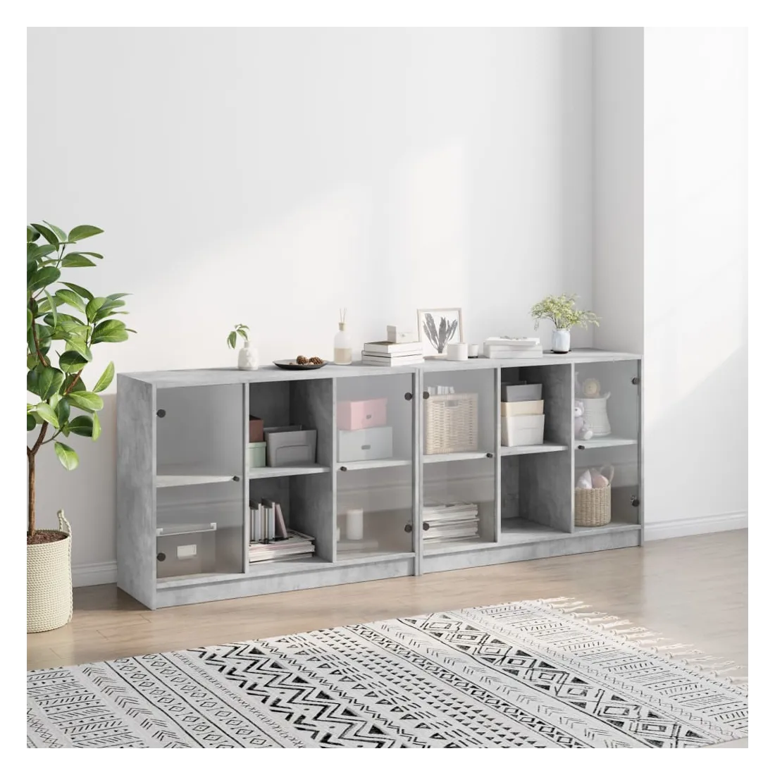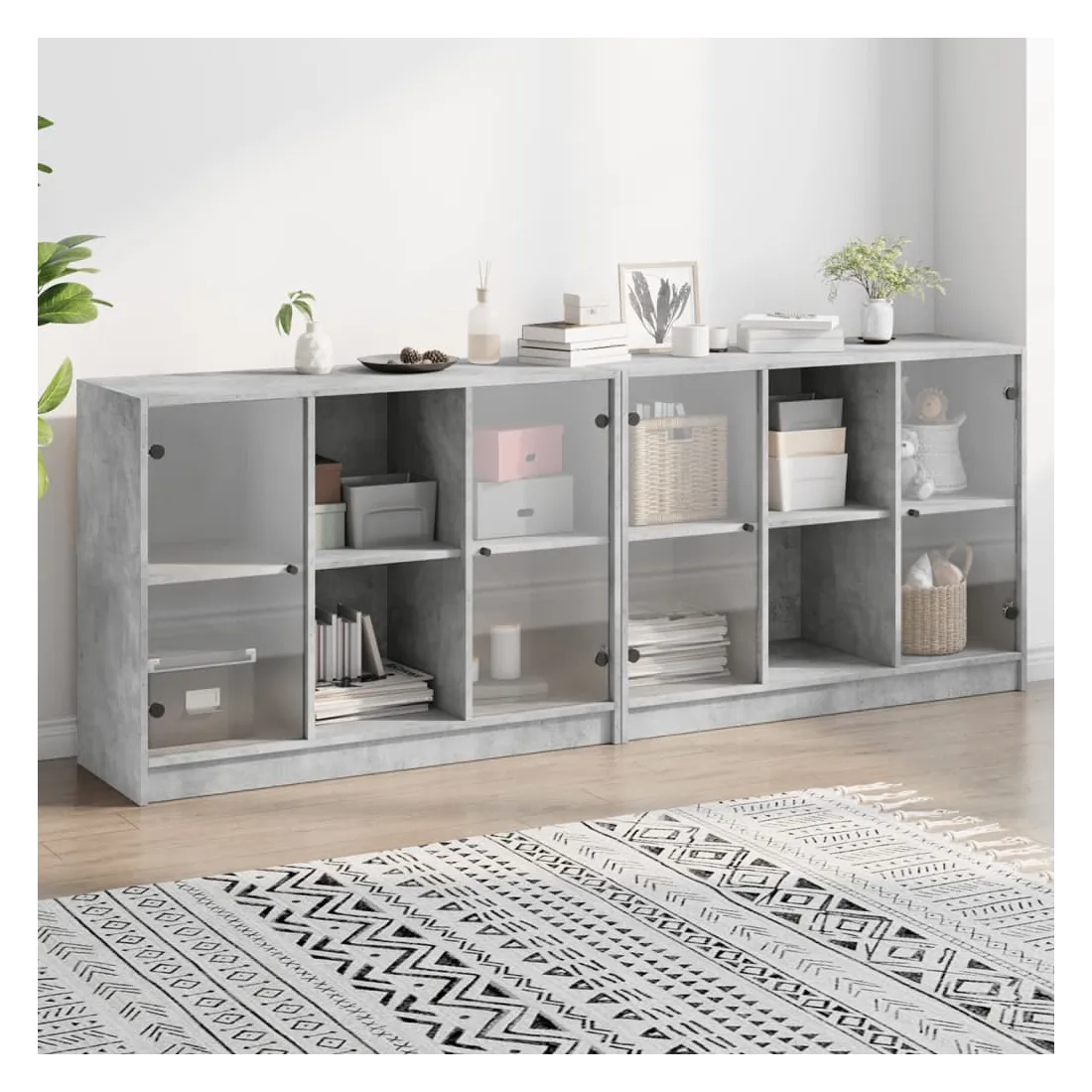 Cette bibliothèque offre une solution idéale pour organiser vos livres et ajoutera une touche de charme moderne à votre intérieur. Matériau robuste et durable : le bois d'ingénierie est d'une qualité exceptionnelle avec une surface lisse et présente également résistance, stabilité et résistance à l'humidité.Grand espace de rangement : la bibliothèque offre suffisamment d'espace de rangement pour garder votre collection de livres, magazines et documents en bon ordre.Dessus stable et robuste : le dessus de l'armoire de rangement est parfait pour exposer vos objets décoratifs, cadres photo et plantes en pot.Design pratique : gardez vos essentiels à l'abri de la poussière en les cachant derrière les portes en verre. De plus, les poignées noires facilitent l'ouverture de la bibliothèque. Attention :Pour éviter qu'il ne bascule, ce produit doit être utilisé avec le dispositif de fixation murale fourni.