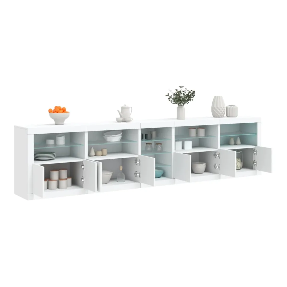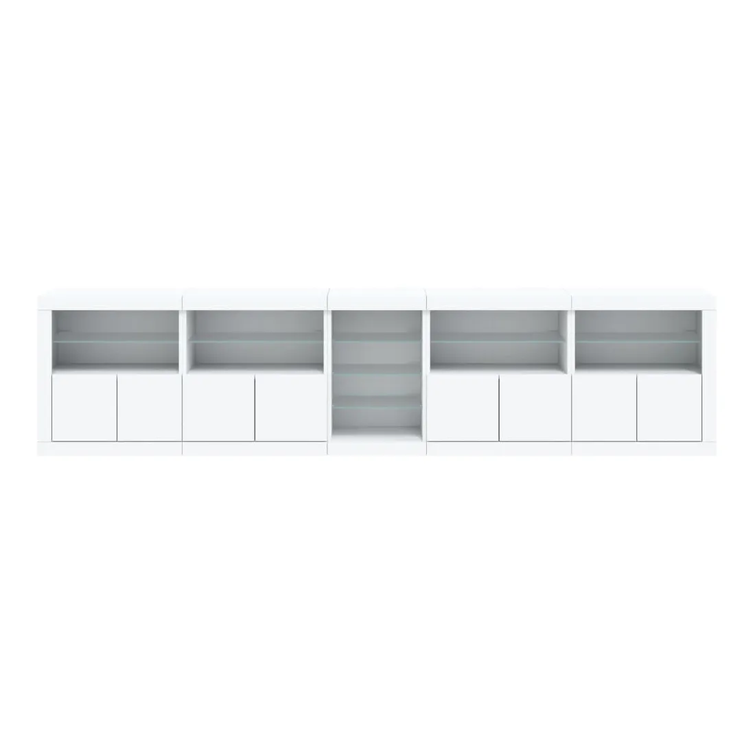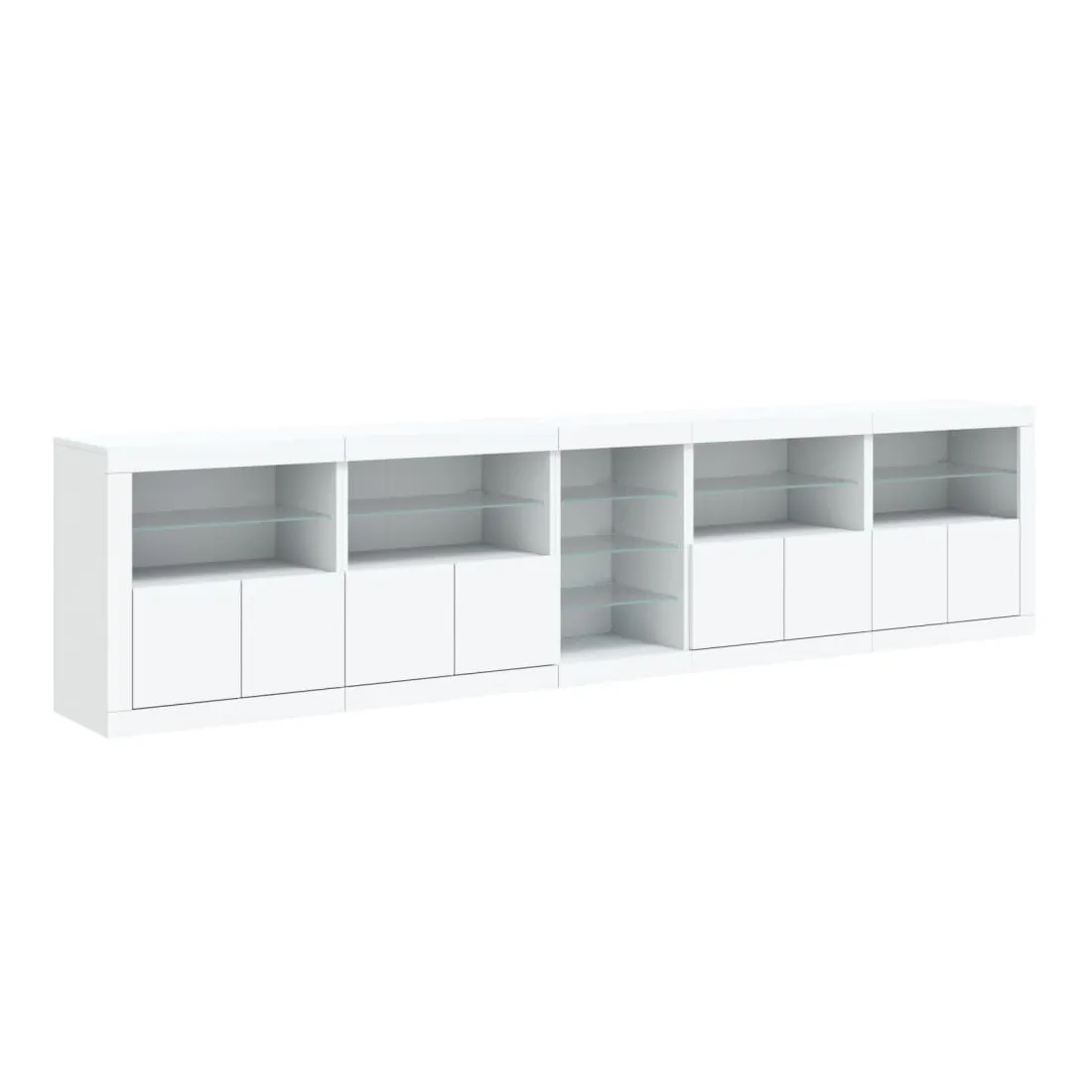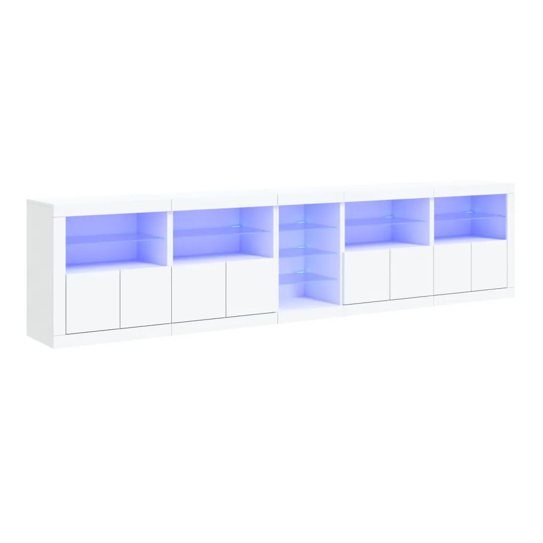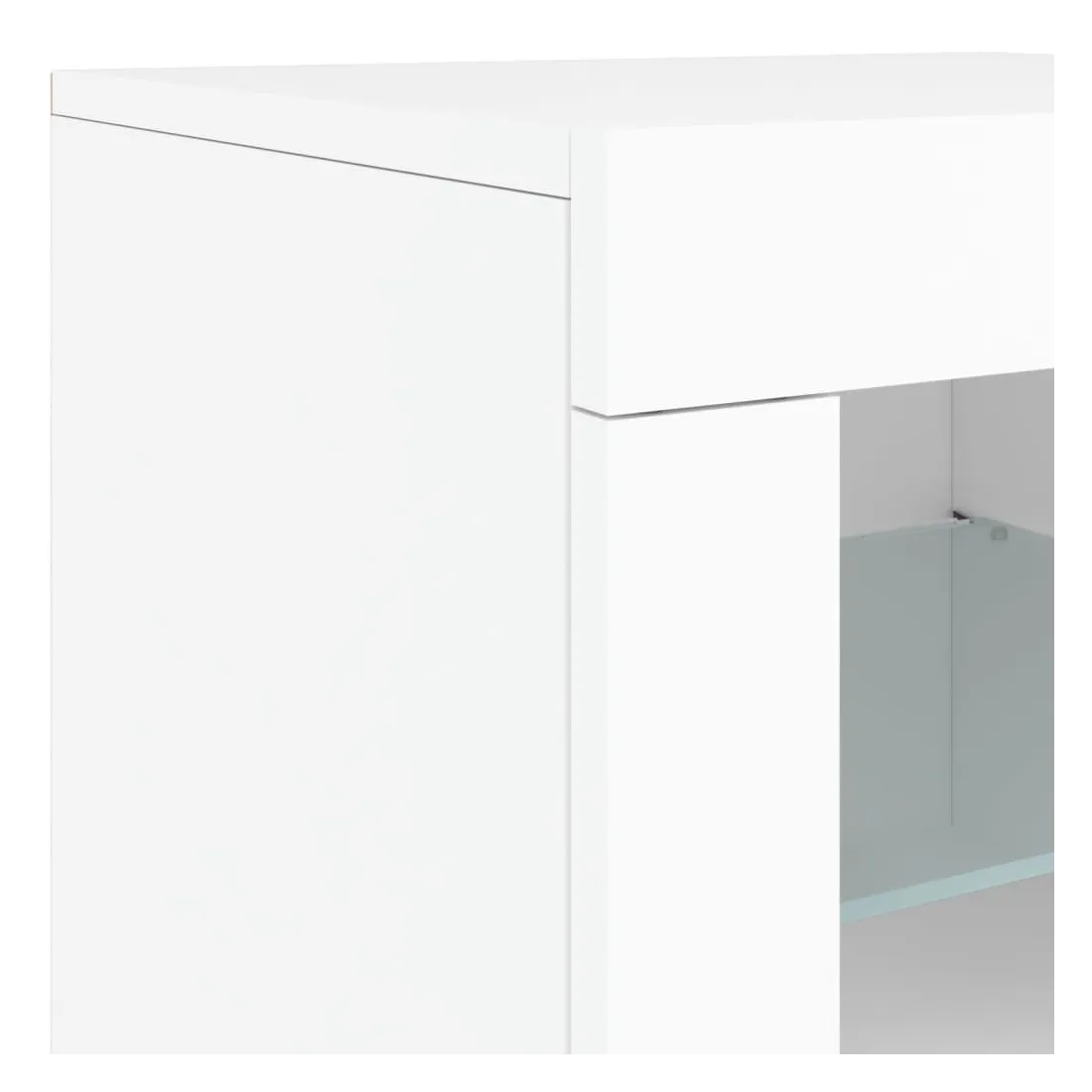 Décorez votre pièce avec ce buffet moderne avec éclairage LED, il s'harmonise facilement avec les meubles de tout style de votre maison. Matériau durable : le bois d'ingénierie est d'une qualité exceptionnelle avec une surface lisse et présente également résistance, stabilité et résistance à l'humidité.Lumières LED RVB : le buffet est équipé de lumières LED RVB vibrantes. Avec divers menus personnalisables, vous pouvez changer sans effort la couleur des lumières et même les régler automatiquement. Ces lumières LED renforcent non seulement l'aspect contemporain du buffet, mais aussi son attrait pour la mode.Grand espace de rangement : l'armoire de rangement offre beaucoup d'espace pour garder vos objets du quotidien bien rangés et facilement accessibles.Fonction d'exposition : la partie supérieure robuste de l'armoire d'entrée est idéale pour exposer des objets décoratifs, des cadres photo ou des plantes en pot.Porte pratiques : gardez vos essentiels à l'abri de la poussière en les cachant derrière les portes de l'armoire latérale. Bon à savoir :Ce produit est doté d'un connecteur USB qui nécessite une source d'alimentation USB de 5V certifiée (non incluse). Attention :Pour éviter qu'il ne soit renversé, ce produit doit être utilisé avec le dispositif de fixation au mur fourni.