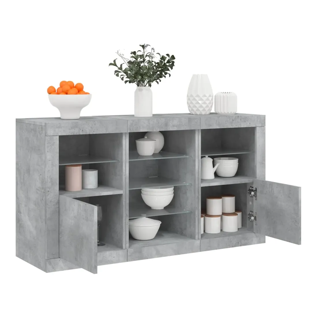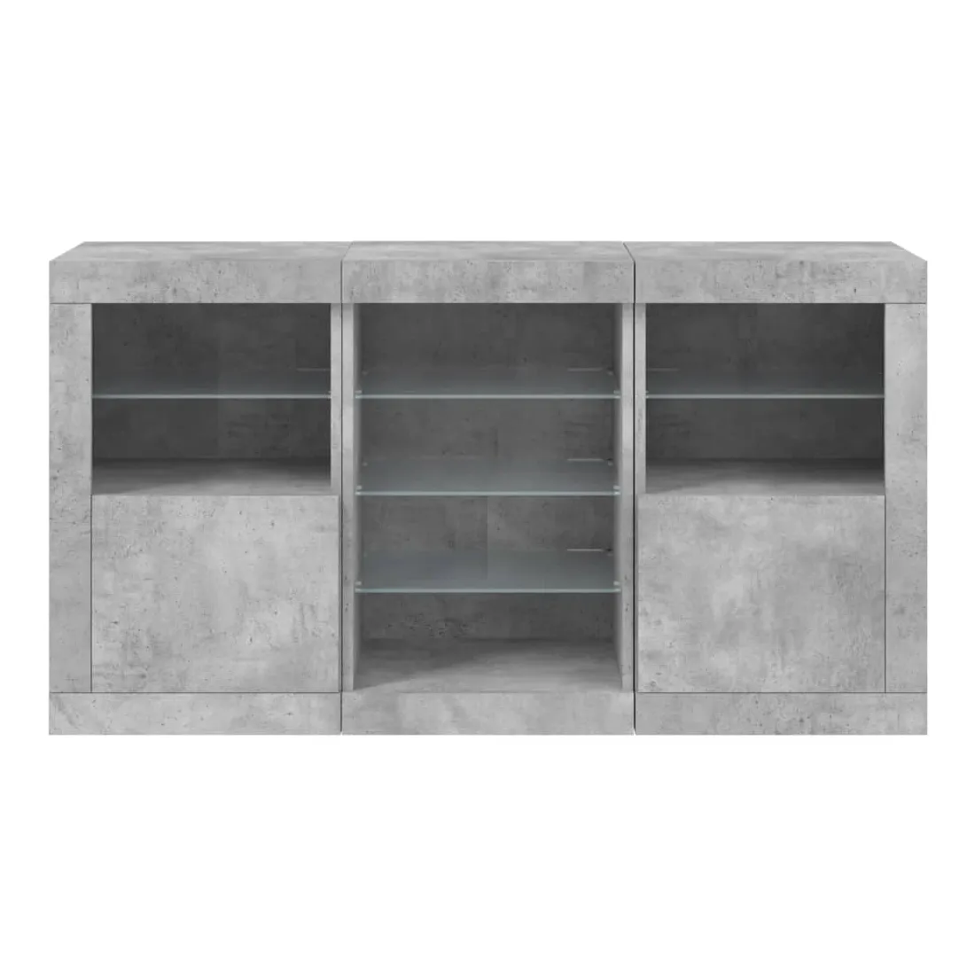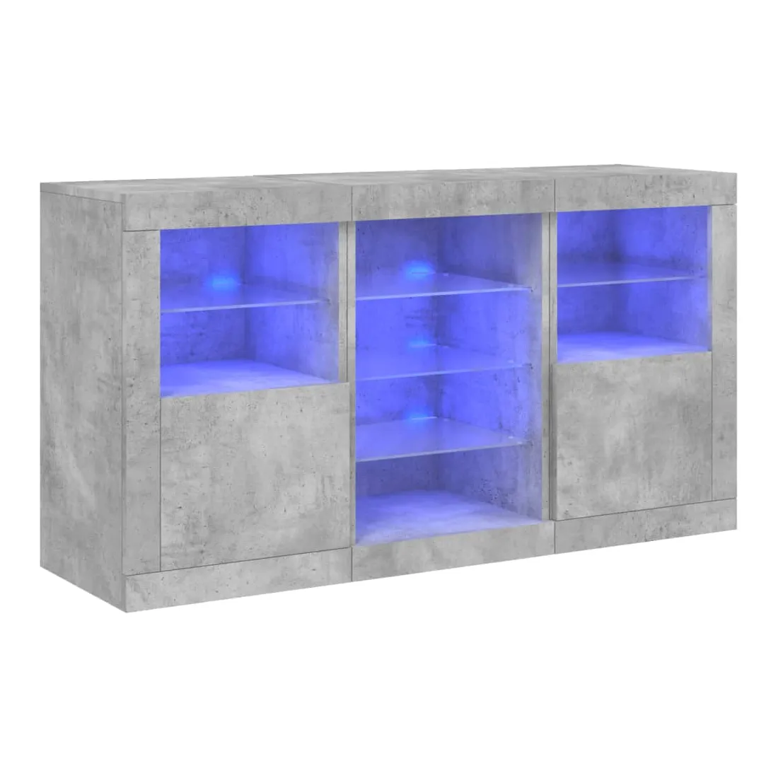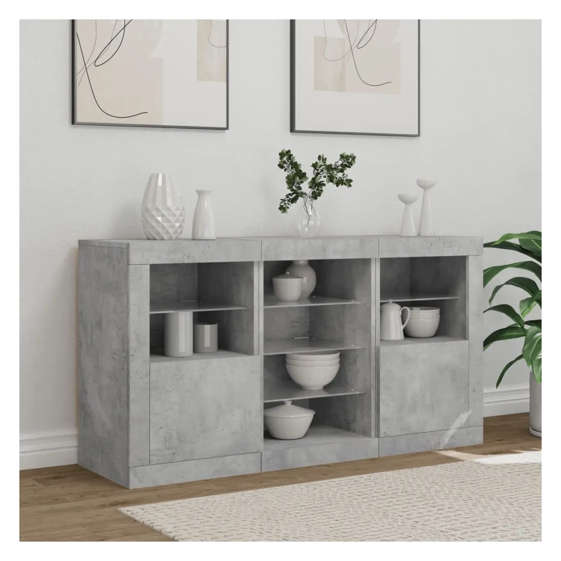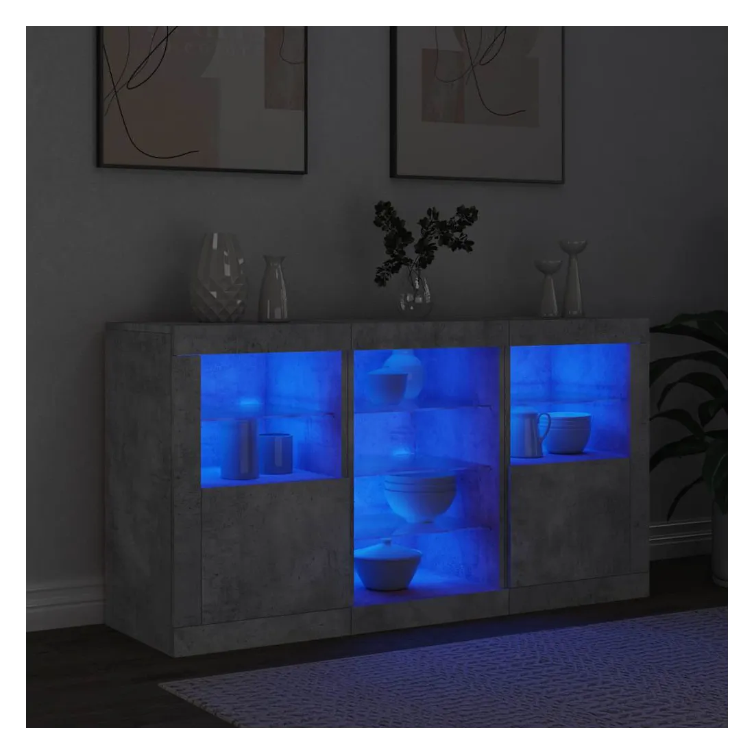 Décorez votre pièce avec ce buffet moderne avec éclairage LED, il s'harmonise facilement avec les meubles de tout style de votre maison. Matériau durable : le bois d'ingénierie est d'une qualité exceptionnelle avec une surface lisse et présente également résistance, stabilité et résistance à l'humidité.Lumières LED RVB : le buffet est équipé de lumières LED RVB vibrantes. Avec divers menus personnalisables, vous pouvez changer sans effort la couleur des lumières et même les régler automatiquement. Ces lumières LED renforcent non seulement l'aspect contemporain du buffet, mais aussi son attrait pour la mode.Grand espace de rangement : l'armoire de rangement offre beaucoup d'espace pour garder vos objets du quotidien bien rangés et facilement accessibles.Fonction d'exposition : la partie supérieure robuste de l'armoire d'entrée est idéale pour exposer des objets décoratifs, des cadres photo ou des plantes en pot.Porte pratiques : gardez vos essentiels à l'abri de la poussière en les cachant derrière les portes de l'armoire latérale. Bon à savoir :Ce produit est doté d'un connecteur USB qui nécessite une source d'alimentation USB de 5V certifiée (non incluse). Attention :Pour éviter qu'il ne soit renversé, ce produit doit être utilisé avec le dispositif de fixation au mur fourni.