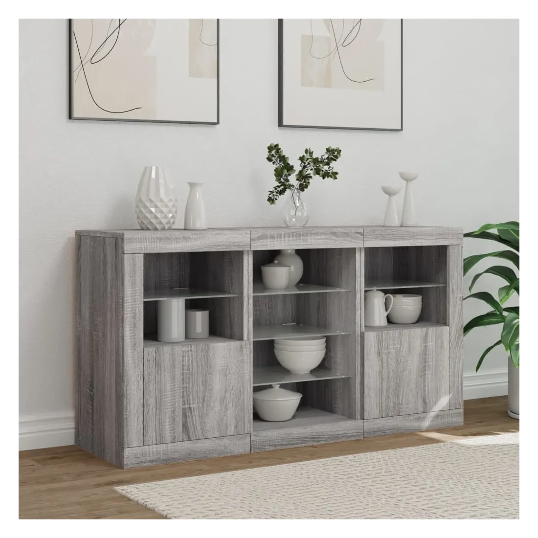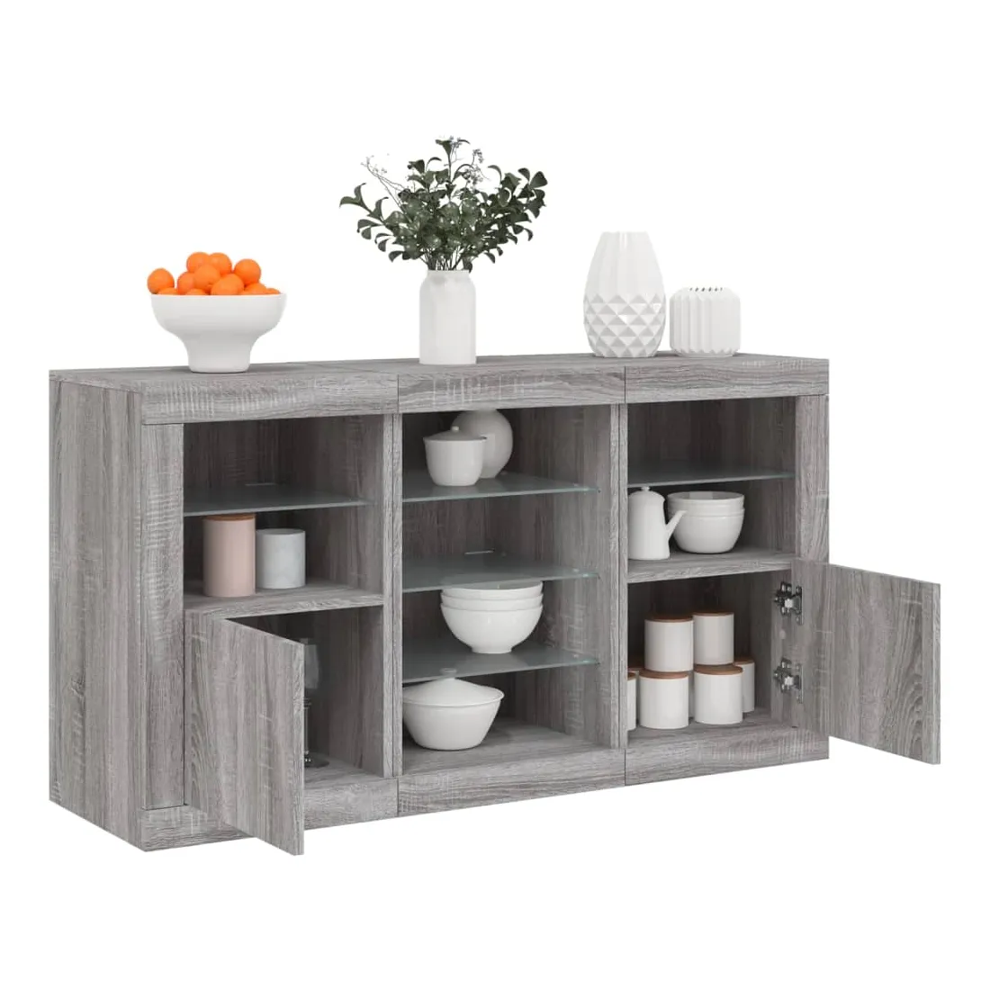 Buffet avec lumières LED sonoma gris 123x37x67 cm