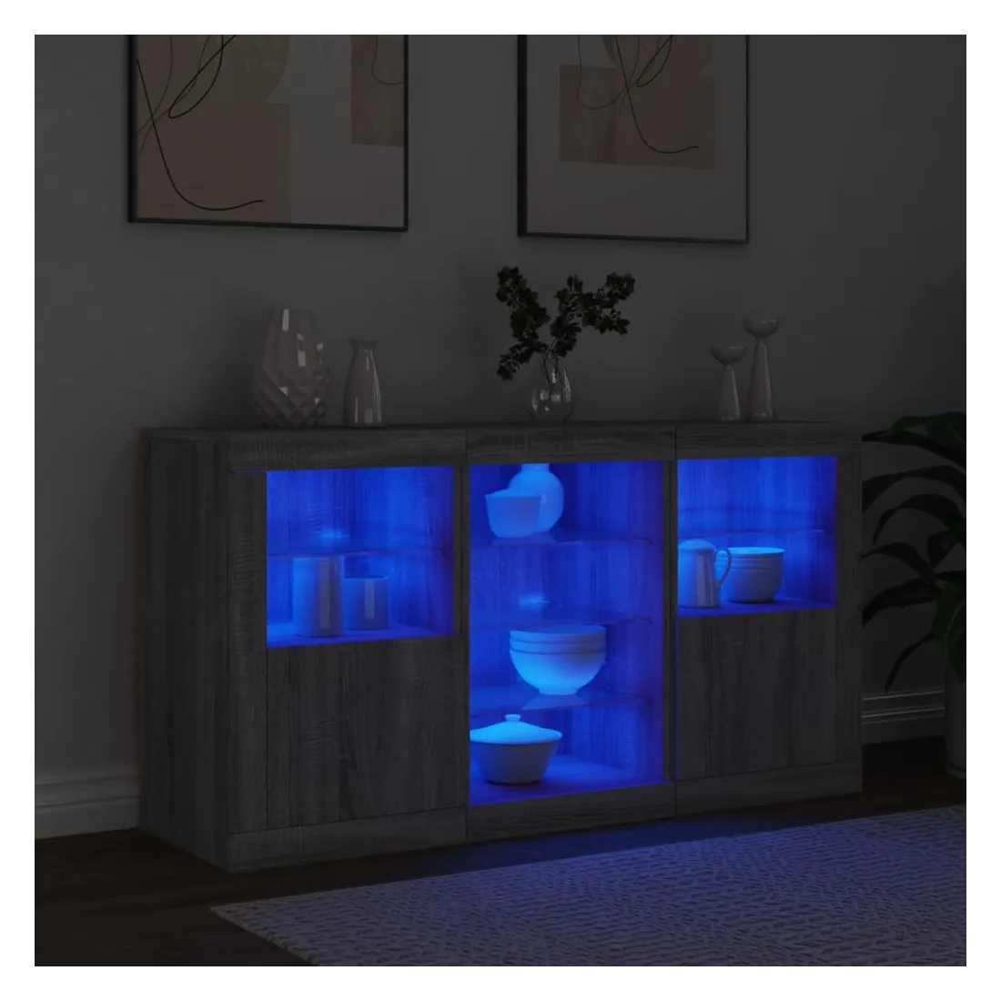 vidaXLDécorez votre pièce avec ce buffet moderne avec éclairage LED, il s'harmonise facilement avec les meubles de tout style de votre maison. Matériau durable : le bois d'ingénierie est d'une qualité exceptionnelle avec une surface lisse et présente également résistance, stabilité et résistance à l'humidité.Lumières LED RVB : le buffet est équipé de lumières LED RVB vibrantes. Avec divers menus personnalisables, vous pouvez changer sans effort la couleur des lumières et même les régler automatiquement. Ces lumières LED renforcent non seulement l'aspect contemporain du buffet, mais aussi son attrait pour la mode.Grand espace de rangement : l'armoire de rangement offre beaucoup d'espace pour garder vos objets du quotidien bien rangés et facilement accessibles.Fonction d'exposition : la partie supérieure robuste de l'armoire d'entrée est idéale pour exposer des objets décoratifs, des cadres photo ou des plantes en pot.Porte pratiques : gardez vos essentiels à l'abri de la poussière en les cachant derrière les portes de l'armoire latérale. Bon à savoir :Ce produit est doté d'un connecteur USB qui nécessite une source d'alimentation USB de 5V certifiée (non incluse). Attention :Pour éviter qu'il ne soit renversé, ce produit doit être utilisé avec le dispositif de fixation au mur fourni.