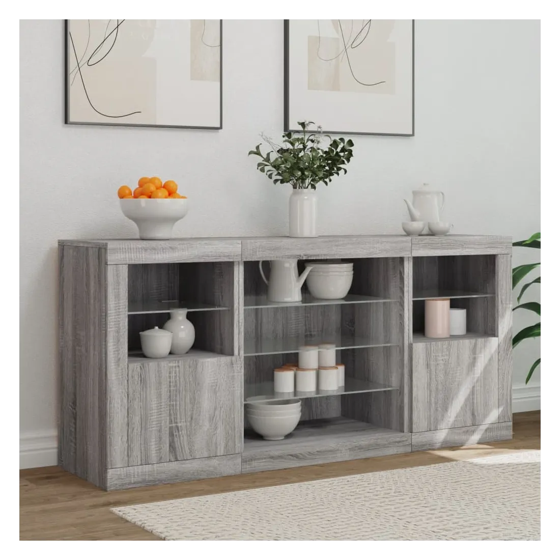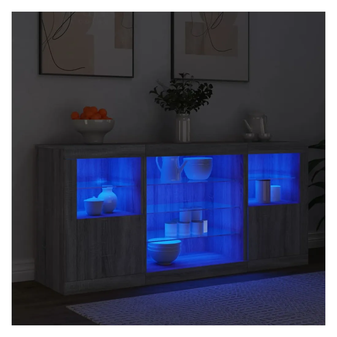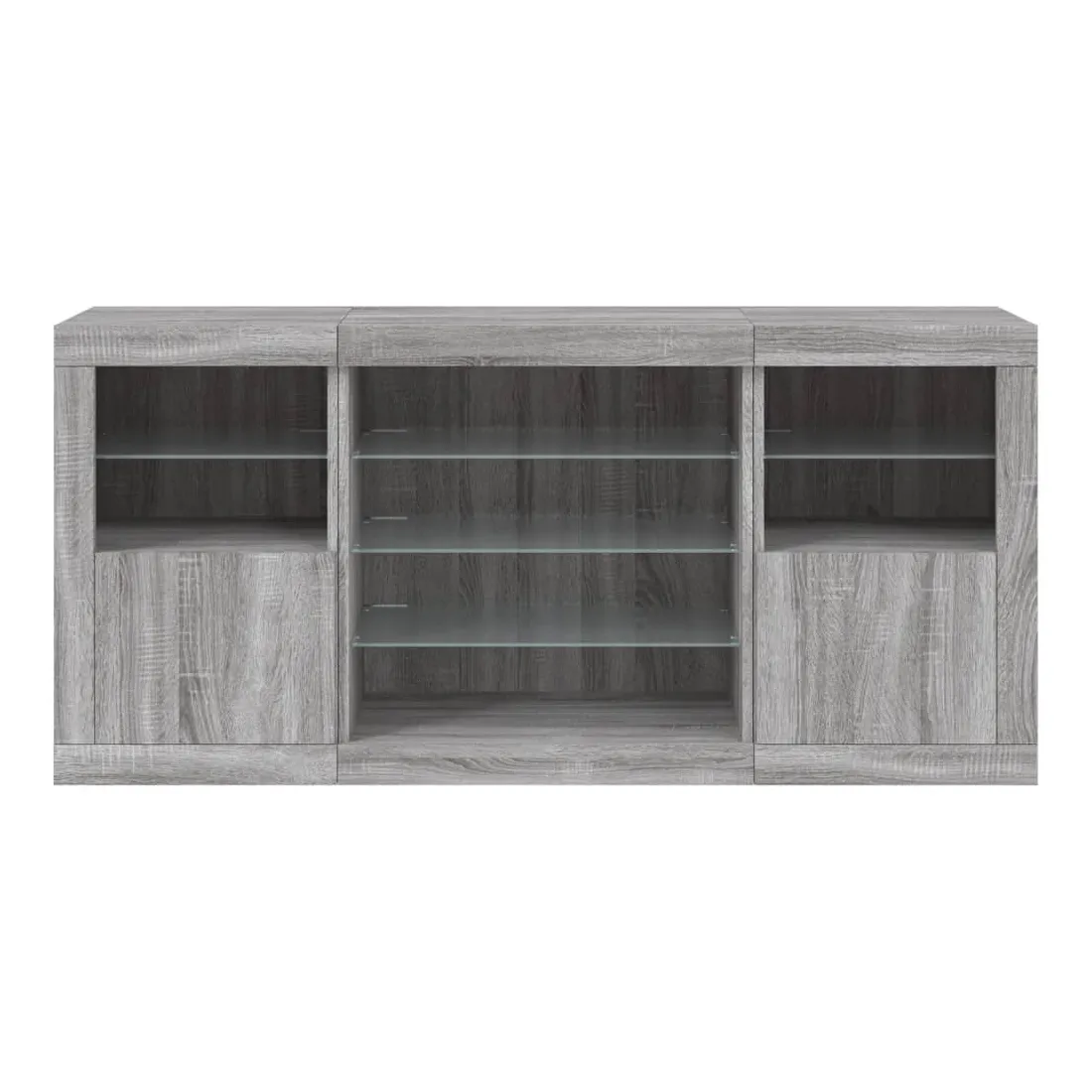 Buffet avec lumières LED sonoma gris 142,5x37x67 cm