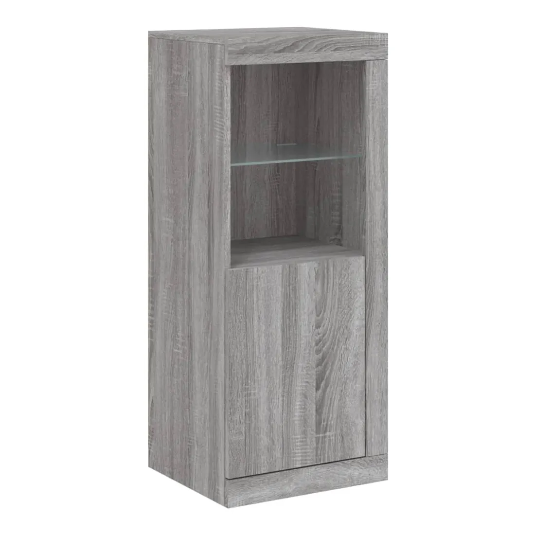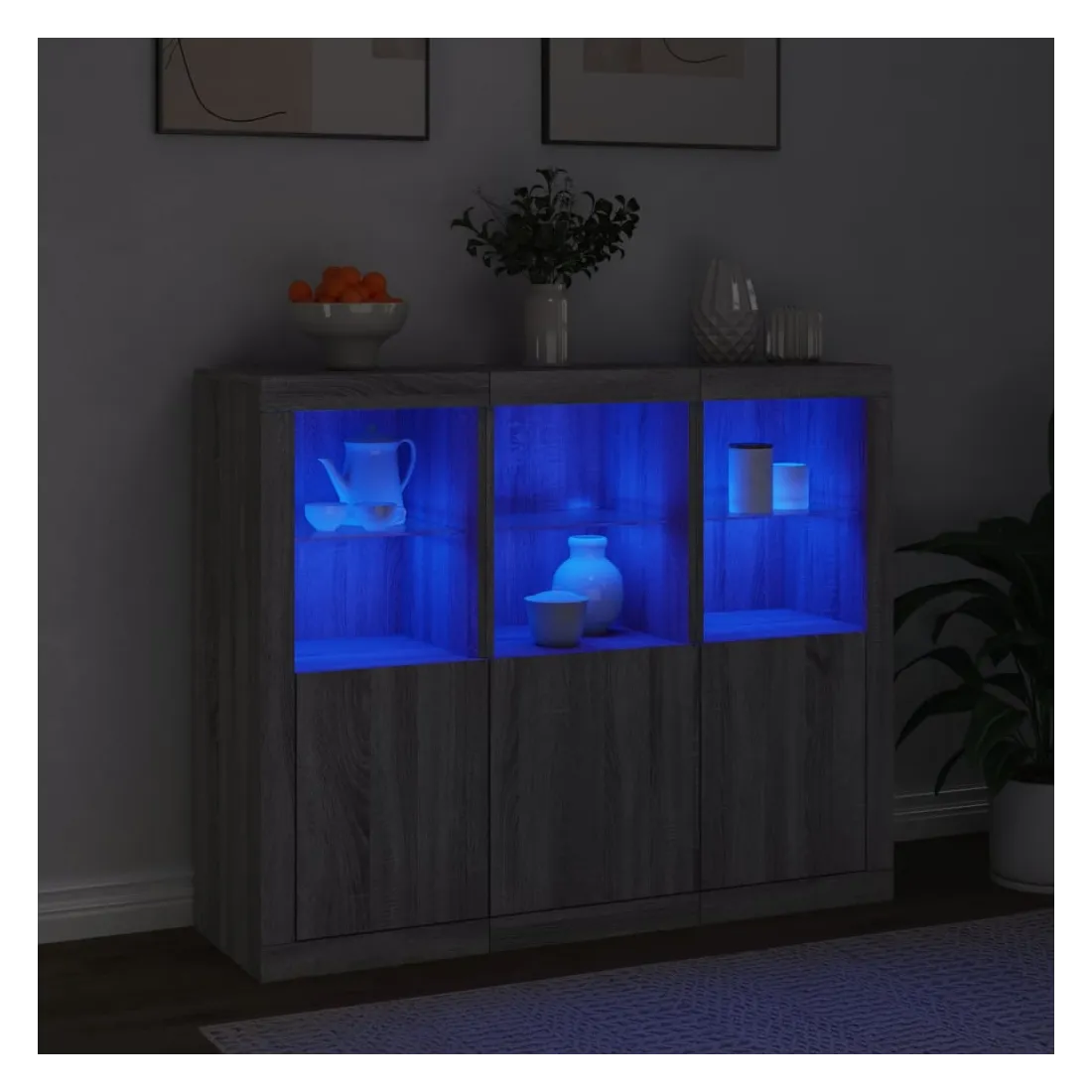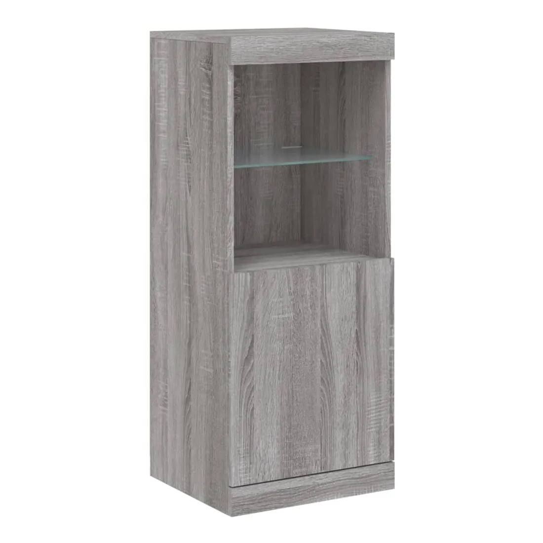 Décorez votre pièce avec ces buffets modernes à éclairage LED qui s'harmonisent facilement avec les meubles de tout style de votre maison. Matériau durable : le bois d'ingénierie est d'une qualité exceptionnelle avec une surface lisse et présente également résistance, stabilité et résistance à l'humidité.Grand espace de rangement : ces buffets offrent un grand espace de rangement pour garder vos magazines, livres, télécommandes et autres petits objets bien organisés et à portée de main.Fonction d'affichage : le dessus de ces buffets est idéal pour afficher des objets décoratifs, des cadres photo ou des plantes en pot.Lumières LED réglables : ces armoires de rangement sont équipées de lumières LED RVB, qui ont différents menus pour changer la couleur de la lumière et l'ajuster automatiquement, décorant votre maison de manière colorée et belle. Attention :Pour éviter qu'il ne soit renversé, ce produit doit être utilisé avec le dispositif de fixation au mur fourni.Bon à savoir :Ce produit est doté d'un connecteur USB qui nécessite une source d'alimentation USB de 5V certifiée (non incluse).