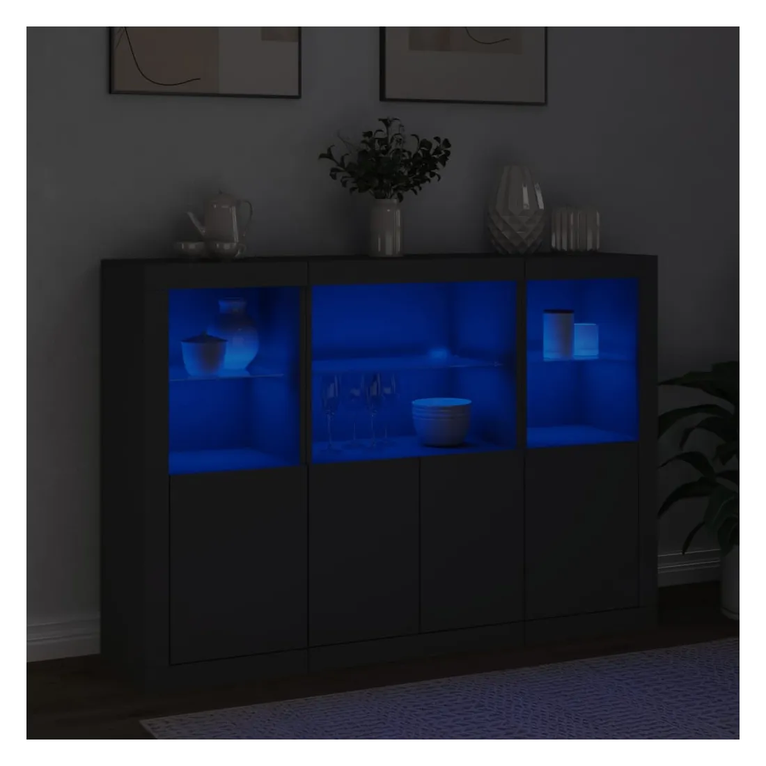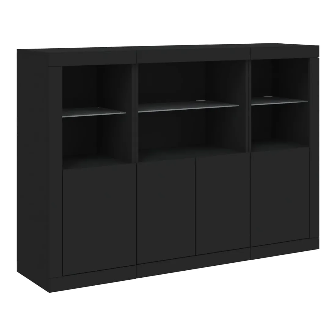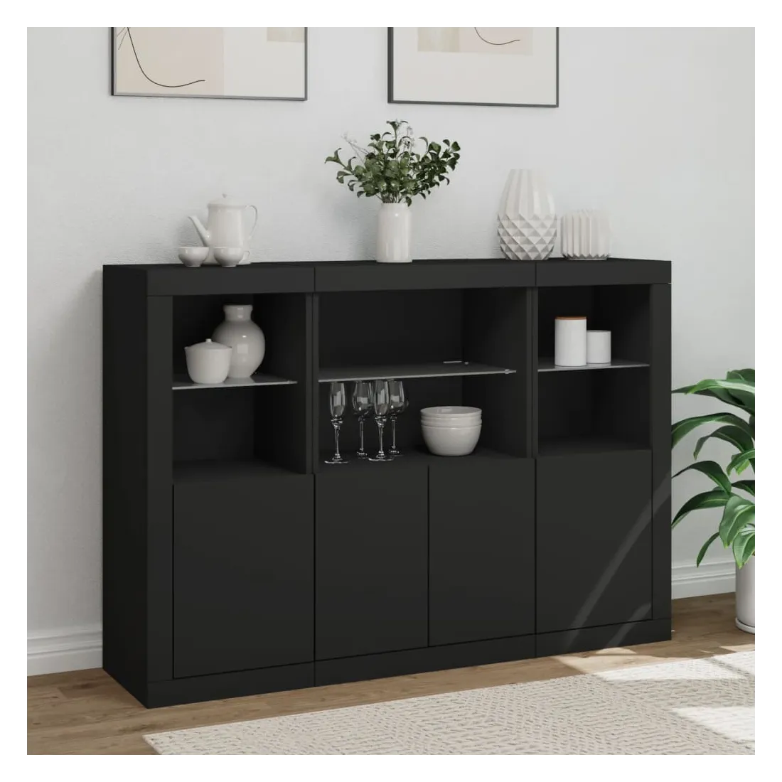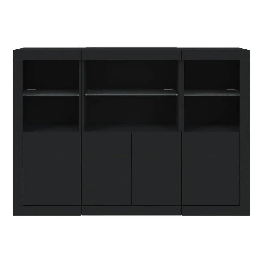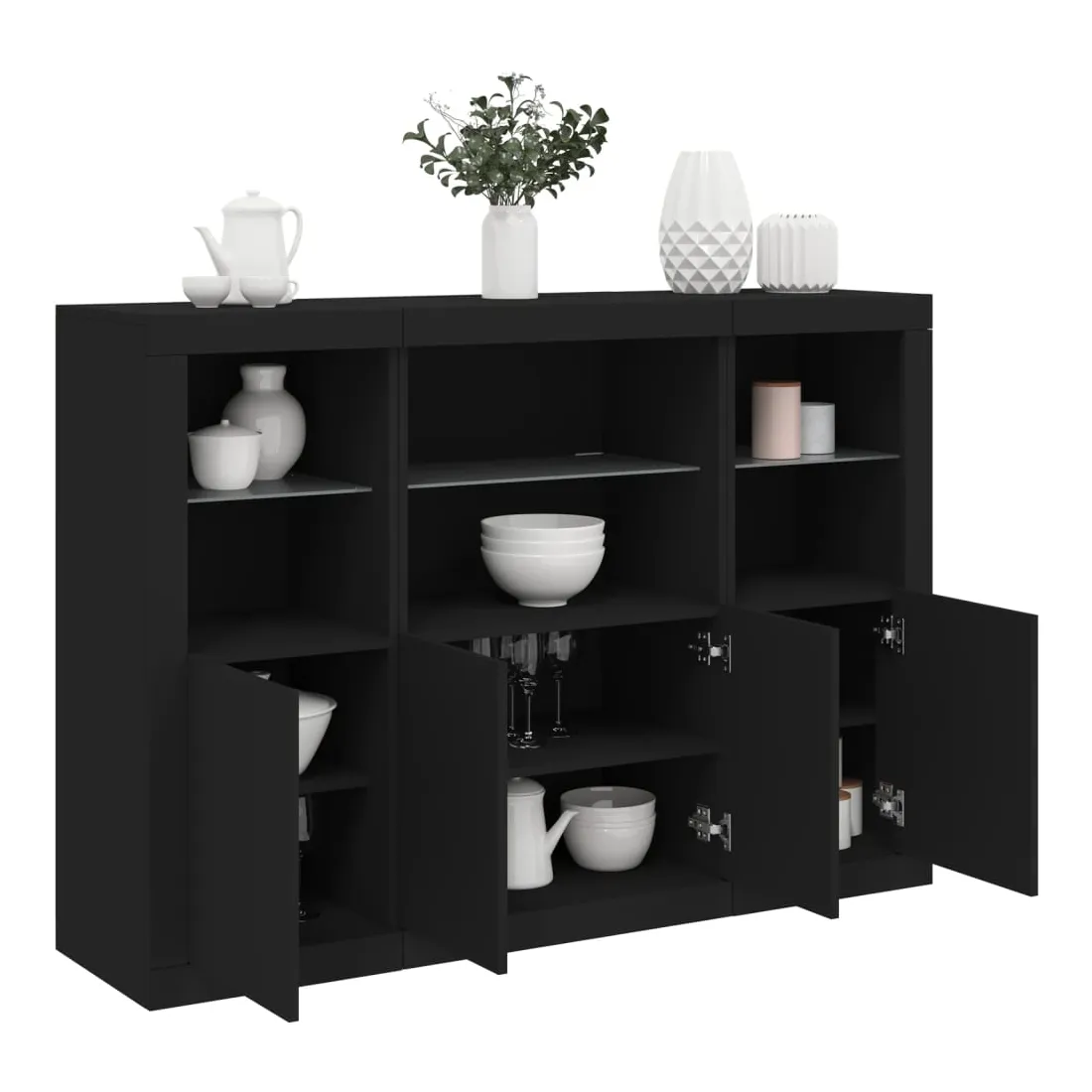 Buffets avec lumières LED 3 pcs noir bois d'ingénierie