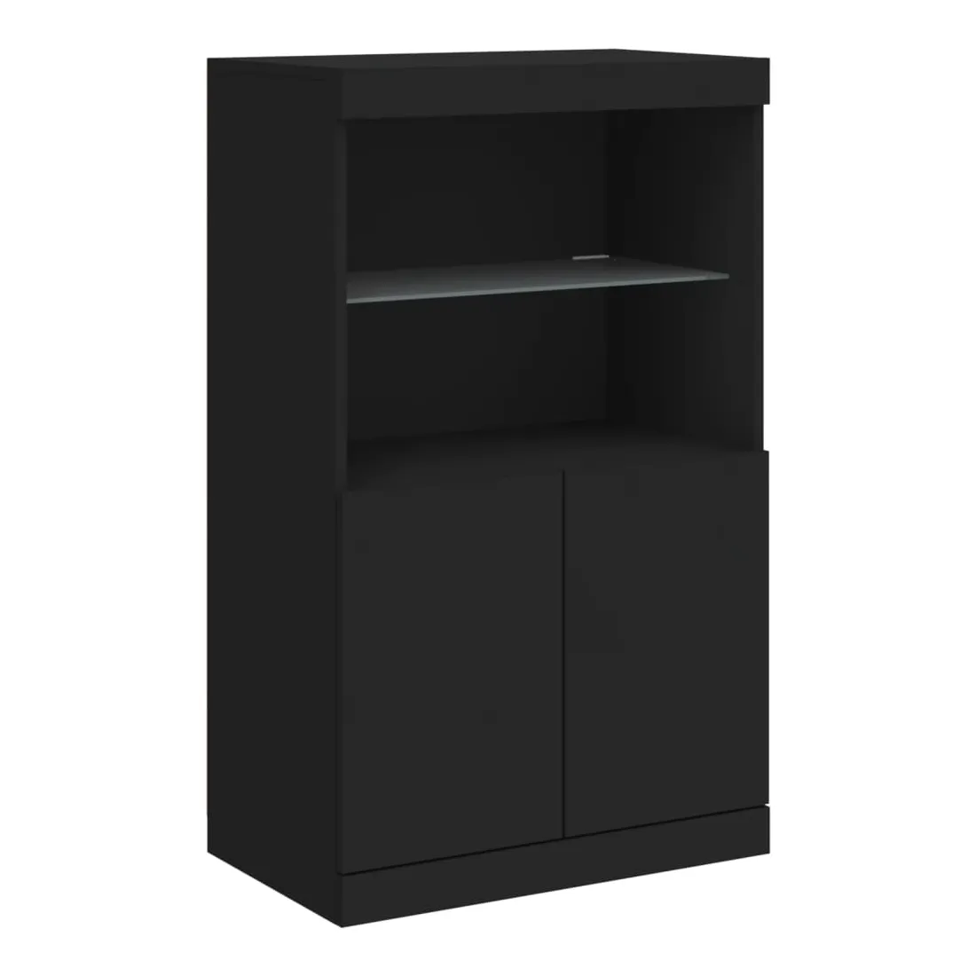 vidaXLDécorez votre pièce avec ces buffets modernes à éclairage LED qui s'harmonisent facilement avec les meubles de tout style de votre maison. Matériau durable : le bois d'ingénierie est d'une qualité exceptionnelle avec une surface lisse et présente également résistance, stabilité et résistance à l'humidité.Grand espace de rangement : ces buffets offrent un grand espace de rangement pour garder vos magazines, livres, télécommandes et autres petits objets bien organisés et à portée de main.Fonction d'affichage : le dessus de ces buffets est idéal pour afficher des objets décoratifs, des cadres photo ou des plantes en pot.Lumières LED réglables : ces armoires de rangement sont équipées de lumières LED RVB, qui ont différents menus pour changer la couleur de la lumière et l'ajuster automatiquement, décorant votre maison de manière colorée et belle. Attention :Pour éviter qu'il ne soit renversé, ce produit doit être utilisé avec le dispositif de fixation au mur fourni.Bon à savoir :Ce produit est doté d'un connecteur USB qui nécessite une source d'alimentation USB de 5V certifiée (non incluse).