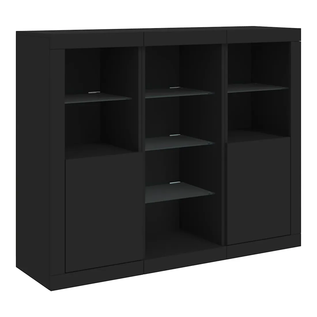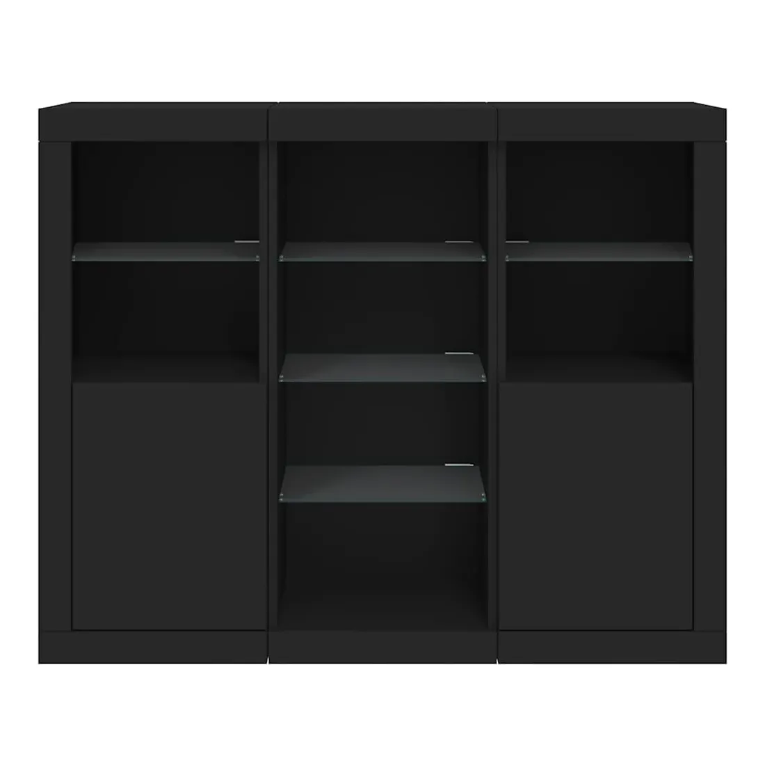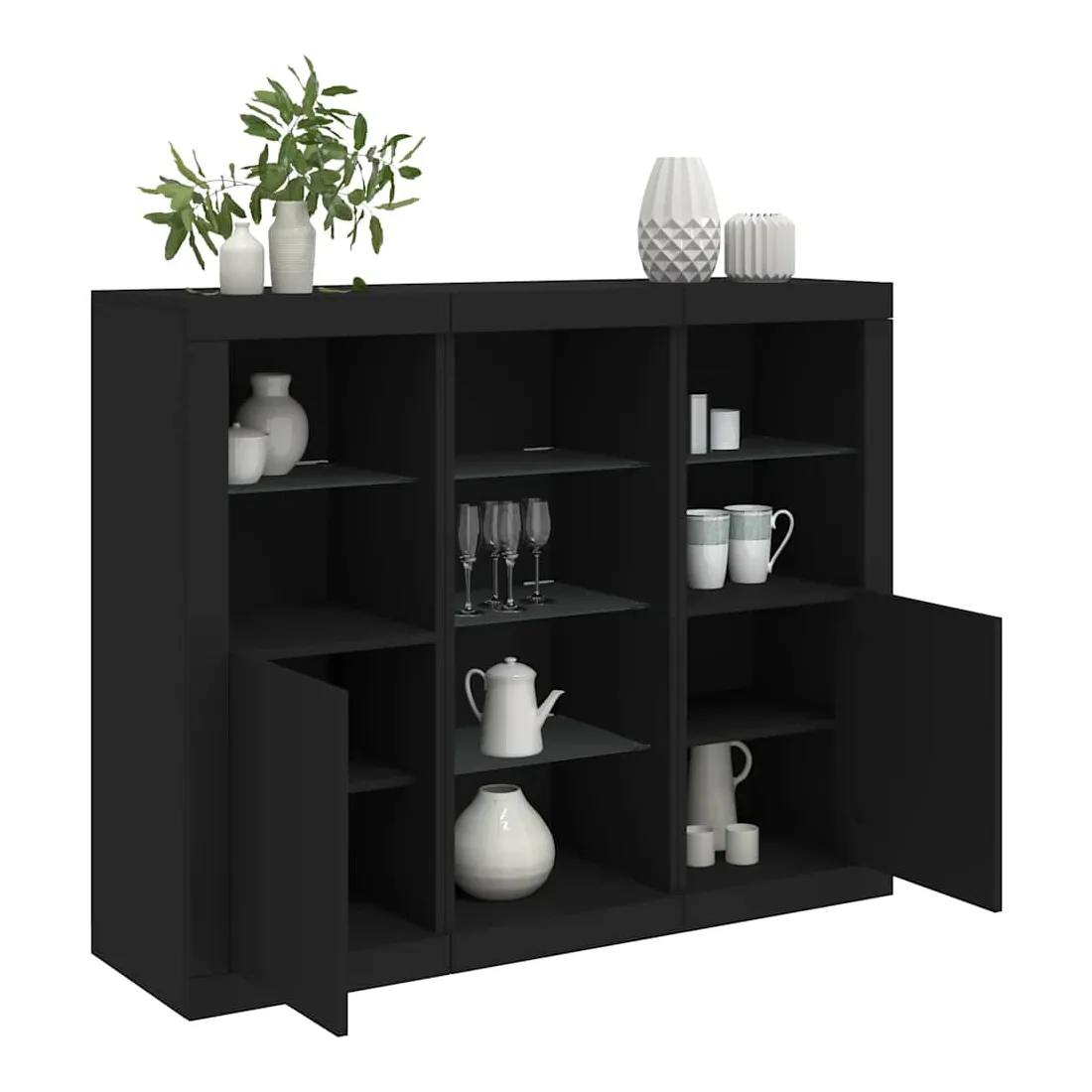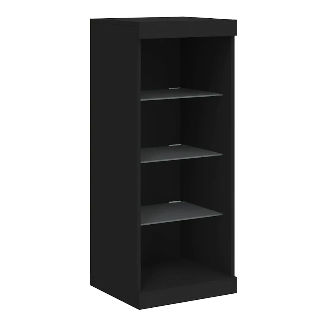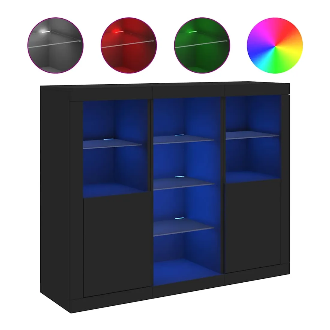 Décorez votre pièce avec ces buffets modernes à éclairage LED qui s'harmonisent facilement avec les meubles de tout style de votre maison. Matériau durable : le bois d'ingénierie est d'une qualité exceptionnelle avec une surface lisse et présente également résistance, stabilité et résistance à l'humidité.Grand espace de rangement : ces buffets offrent un grand espace de rangement pour garder vos magazines, livres, télécommandes et autres petits objets bien organisés et à portée de main.Fonction d'affichage : le dessus de ces buffets est idéal pour afficher des objets décoratifs, des cadres photo ou des plantes en pot.Lumières LED réglables : ces armoires de rangement sont équipées de lumières LED RVB, qui ont différents menus pour changer la couleur de la lumière et l'ajuster automatiquement, décorant votre maison de manière colorée et belle. Attention :Pour éviter qu'il ne soit renversé, ce produit doit être utilisé avec le dispositif de fixation au mur fourni.Bon à savoir :Ce produit est doté d'un connecteur USB qui nécessite une source d'alimentation USB de 5V certifiée (non incluse).