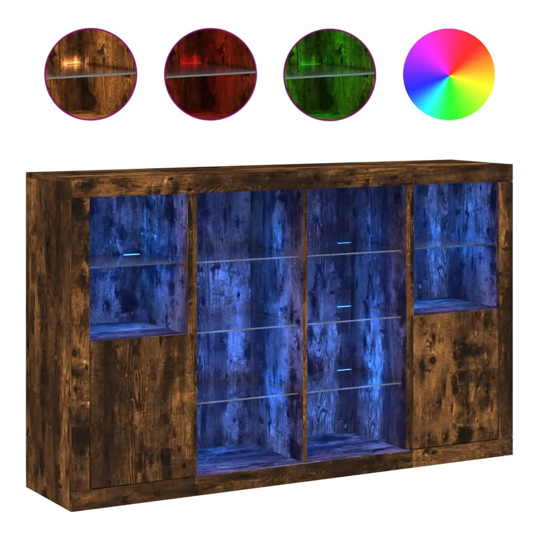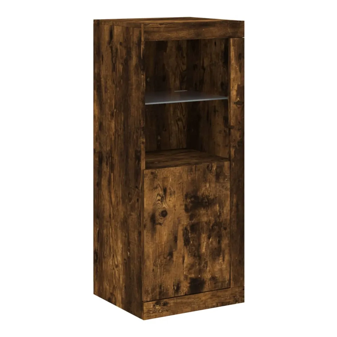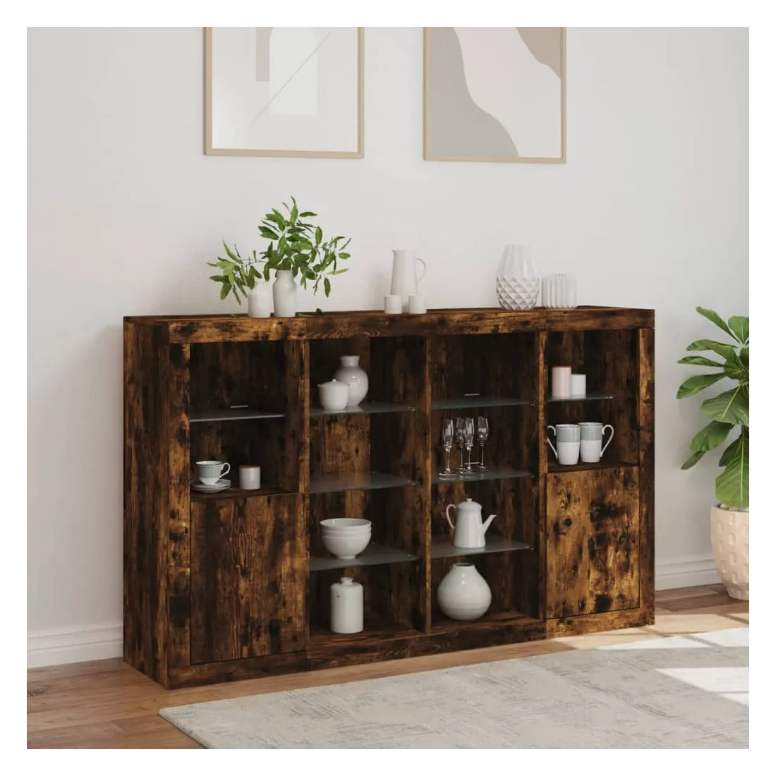 Décorez votre pièce avec ces buffets modernes à éclairage LED qui s'harmonisent facilement avec les meubles de tout style de votre maison. Matériau durable : le bois d'ingénierie est d'une qualité exceptionnelle avec une surface lisse et présente également résistance, stabilité et résistance à l'humidité.Grand espace de rangement : ces buffets offrent un grand espace de rangement pour garder vos magazines, livres, télécommandes et autres petits objets bien organisés et à portée de main.Fonction d'affichage : le dessus de ces buffets est idéal pour afficher des objets décoratifs, des cadres photo ou des plantes en pot.Lumières LED réglables : ces armoires de rangement sont équipées de lumières LED RVB, qui ont différents menus pour changer la couleur de la lumière et l'ajuster automatiquement, décorant votre maison de manière colorée et belle. Attention :Pour éviter qu'il ne soit renversé, ce produit doit être utilisé avec le dispositif de fixation au mur fourni.Bon à savoir :Ce produit est doté d'un connecteur USB qui nécessite une source d'alimentation USB de 5V certifiée (non incluse).