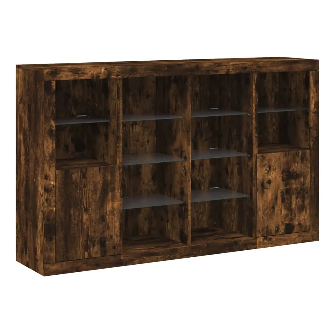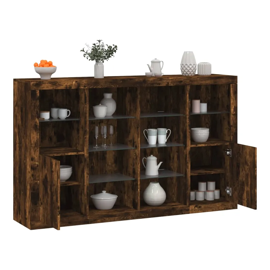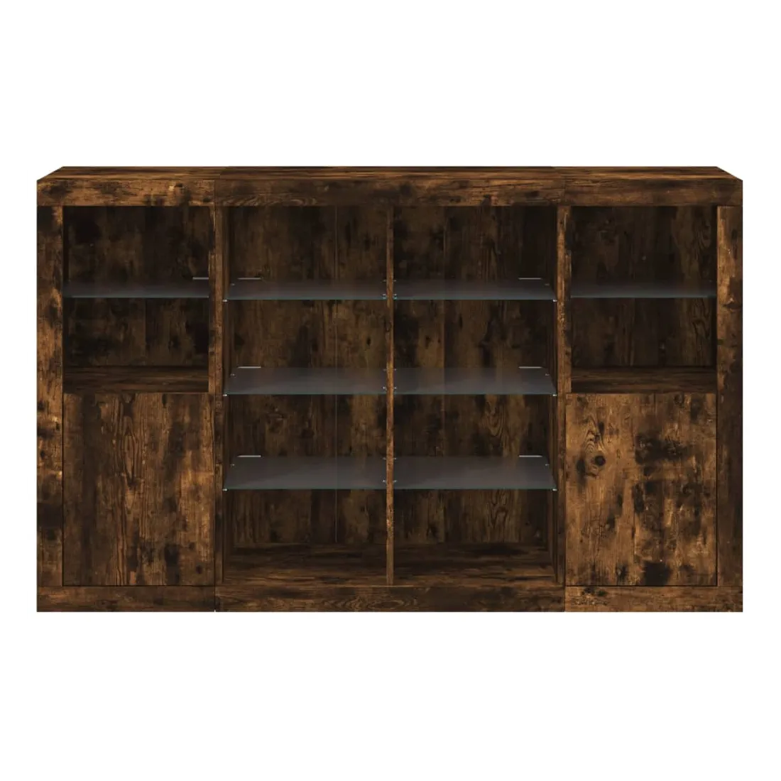 Décorez votre pièce avec ces buffets modernes à éclairage LED qui s'harmonisent facilement avec les meubles de tout style de votre maison. Matériau durable : le bois d'ingénierie est d'une qualité exceptionnelle avec une surface lisse et présente également résistance, stabilité et résistance à l'humidité.Grand espace de rangement : ces buffets offrent un grand espace de rangement pour garder vos magazines, livres, télécommandes et autres petits objets bien organisés et à portée de main.Fonction d'affichage : le dessus de ces buffets est idéal pour afficher des objets décoratifs, des cadres photo ou des plantes en pot.Lumières LED réglables : ces armoires de rangement sont équipées de lumières LED RVB, qui ont différents menus pour changer la couleur de la lumière et l'ajuster automatiquement, décorant votre maison de manière colorée et belle. Attention :Pour éviter qu'il ne soit renversé, ce produit doit être utilisé avec le dispositif de fixation au mur fourni.Bon à savoir :Ce produit est doté d'un connecteur USB qui nécessite une source d'alimentation USB de 5V certifiée (non incluse).