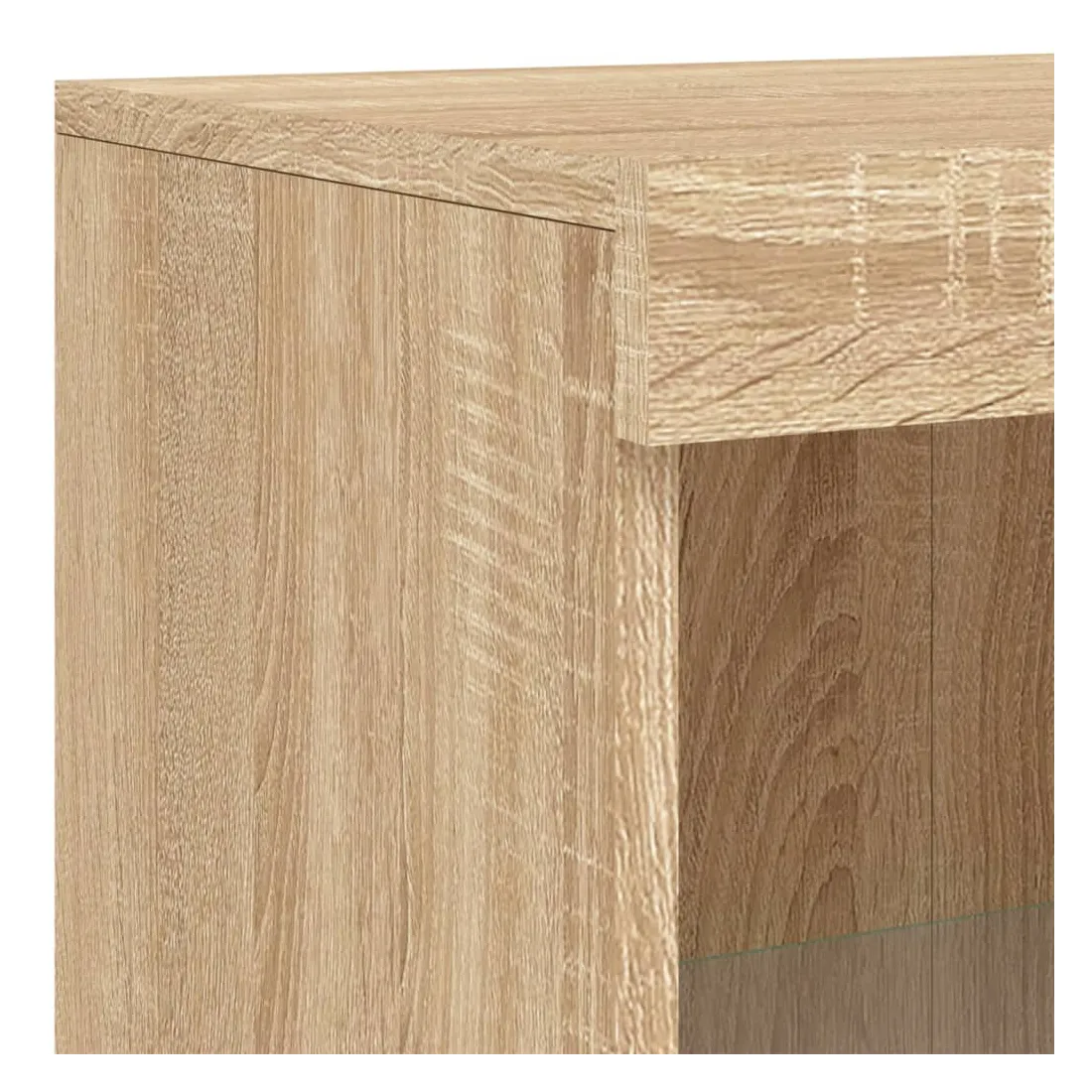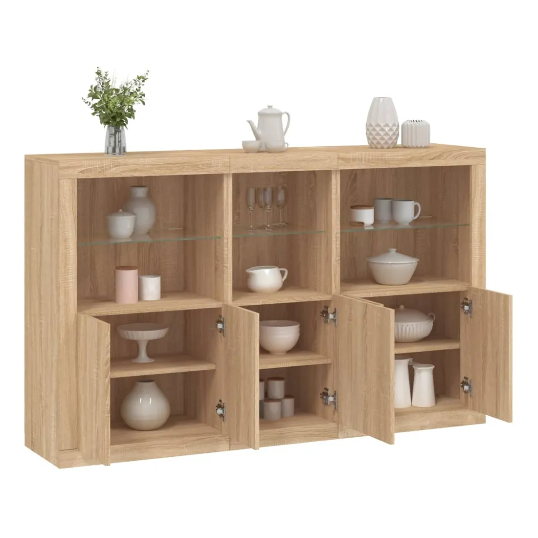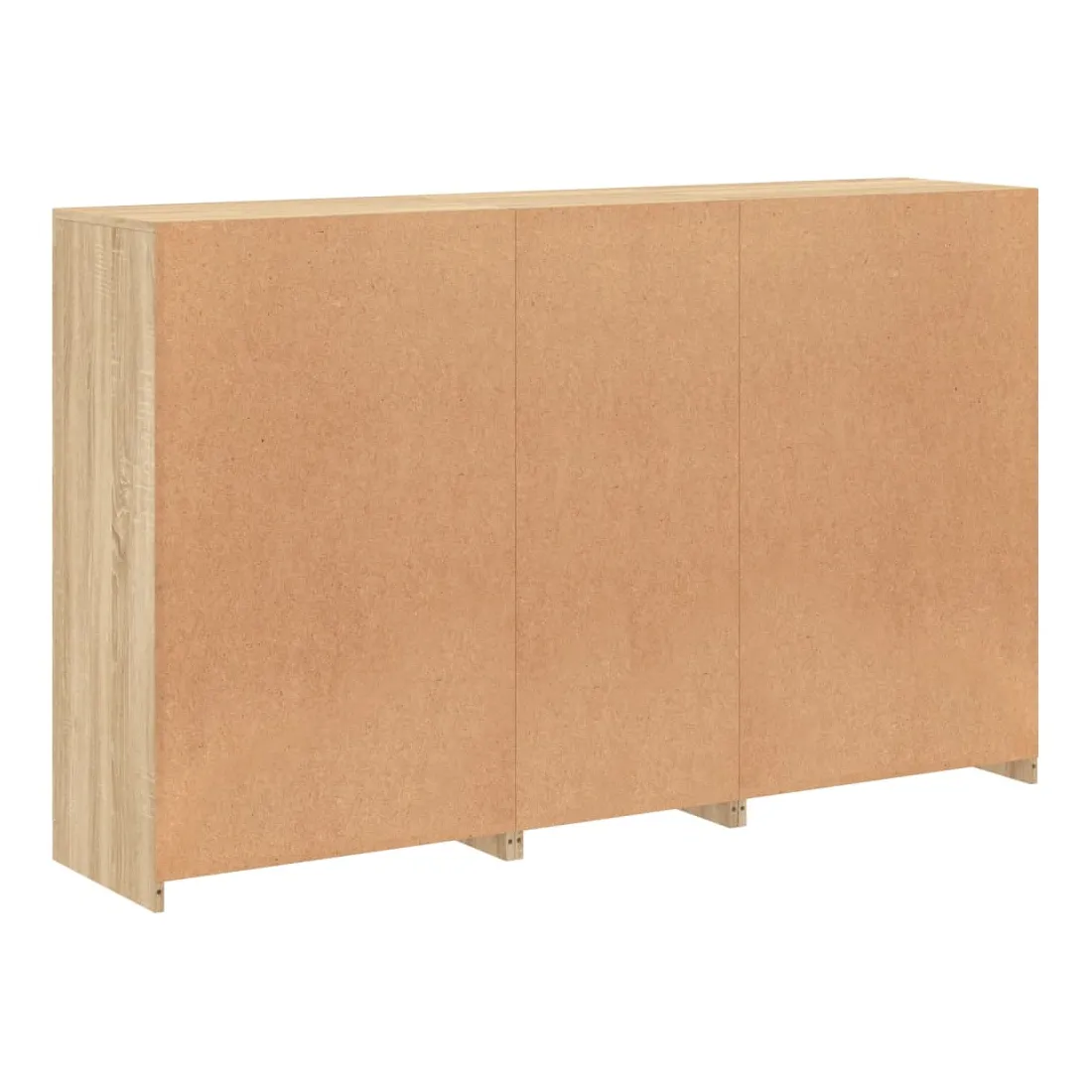 Décorez votre pièce avec ce buffet moderne avec éclairage LED, il s'harmonise facilement avec les meubles de tout style de votre maison. Matériau durable : le bois d'ingénierie est d'une qualité exceptionnelle avec une surface lisse et présente également résistance, stabilité et résistance à l'humidité.Lumières LED RVB : le buffet est équipé de lumières LED RVB vibrantes. Avec divers menus personnalisables, vous pouvez changer sans effort la couleur des lumières et même les régler automatiquement. Ces lumières LED renforcent non seulement l'aspect contemporain du buffet, mais aussi son attrait pour la mode.Grand espace de rangement : l'armoire de rangement offre beaucoup d'espace pour garder vos objets du quotidien bien rangés et facilement accessibles.Fonction d'exposition : la partie supérieure robuste de l'armoire d'entrée est idéale pour exposer des objets décoratifs, des cadres photo ou des plantes en pot.Porte pratiques : gardez vos essentiels à l'abri de la poussière en les cachant derrière les portes de l'armoire latérale. Bon à savoir :Ce produit est doté d'un connecteur USB qui nécessite une source d'alimentation USB de 5V certifiée (non incluse). Attention :Pour éviter qu'il ne soit renversé, ce produit doit être utilisé avec le dispositif de fixation au mur fourni.