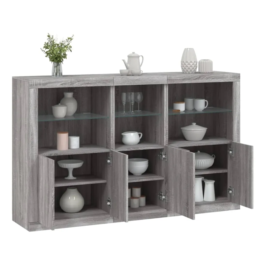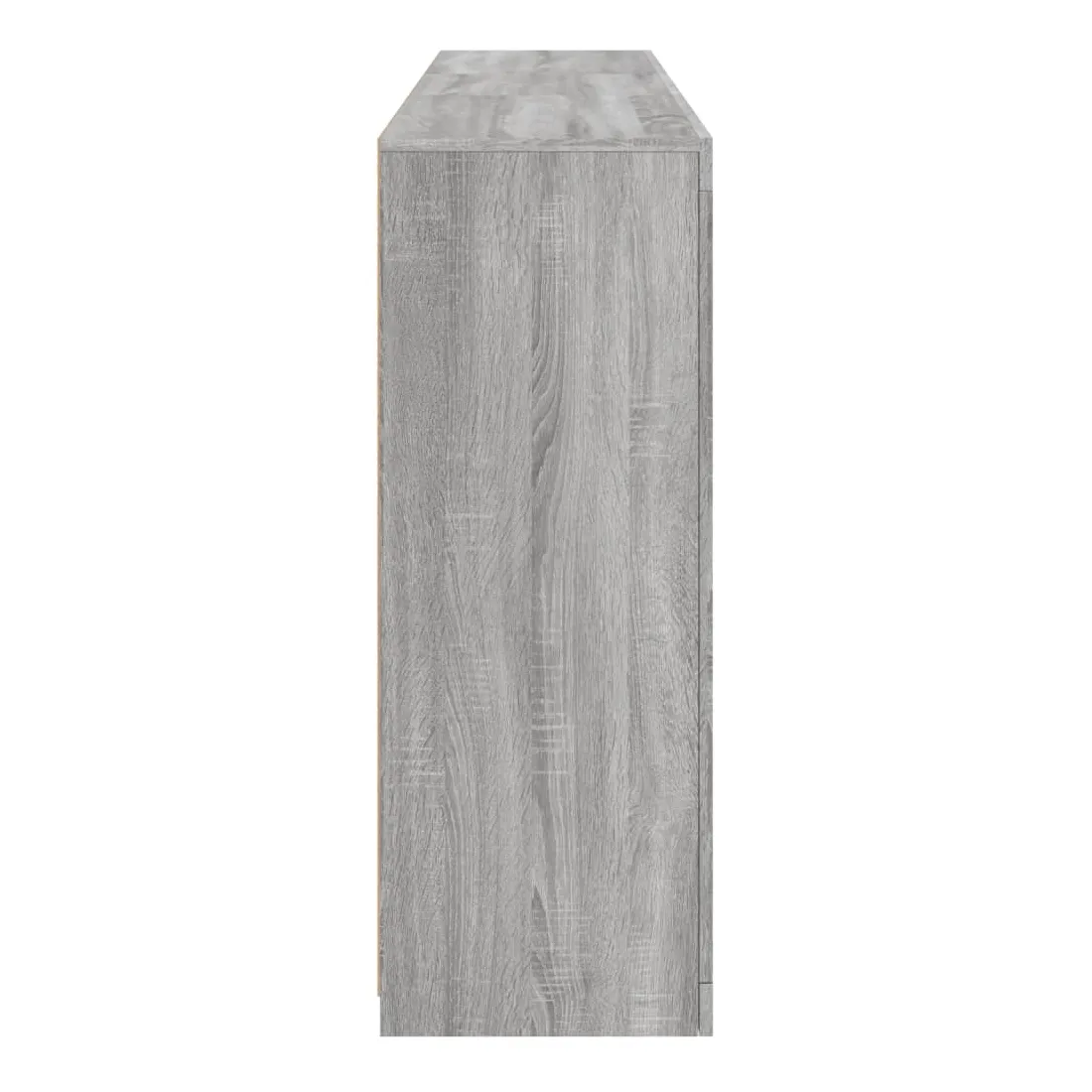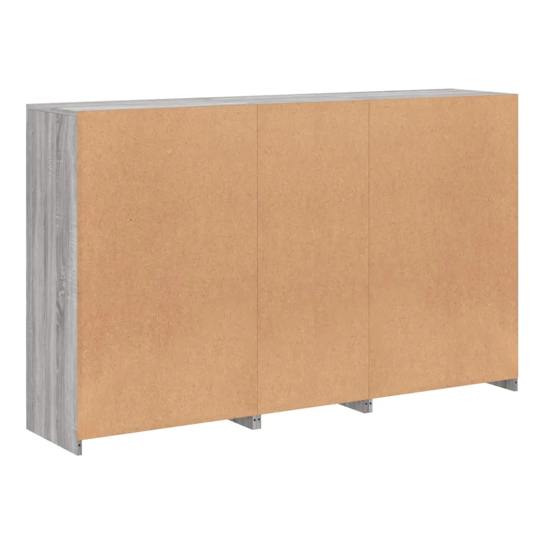 Décorez votre pièce avec ce buffet moderne avec éclairage LED, il s'harmonise facilement avec les meubles de tout style de votre maison. Matériau durable : le bois d'ingénierie est d'une qualité exceptionnelle avec une surface lisse et présente également résistance, stabilité et résistance à l'humidité.Lumières LED RVB : le buffet est équipé de lumières LED RVB vibrantes. Avec divers menus personnalisables, vous pouvez changer sans effort la couleur des lumières et même les régler automatiquement. Ces lumières LED renforcent non seulement l'aspect contemporain du buffet, mais aussi son attrait pour la mode.Grand espace de rangement : l'armoire de rangement offre beaucoup d'espace pour garder vos objets du quotidien bien rangés et facilement accessibles.Fonction d'exposition : la partie supérieure robuste de l'armoire d'entrée est idéale pour exposer des objets décoratifs, des cadres photo ou des plantes en pot.Porte pratiques : gardez vos essentiels à l'abri de la poussière en les cachant derrière les portes de l'armoire latérale. Bon à savoir :Ce produit est doté d'un connecteur USB qui nécessite une source d'alimentation USB de 5V certifiée (non incluse). Attention :Pour éviter qu'il ne soit renversé, ce produit doit être utilisé avec le dispositif de fixation au mur fourni.