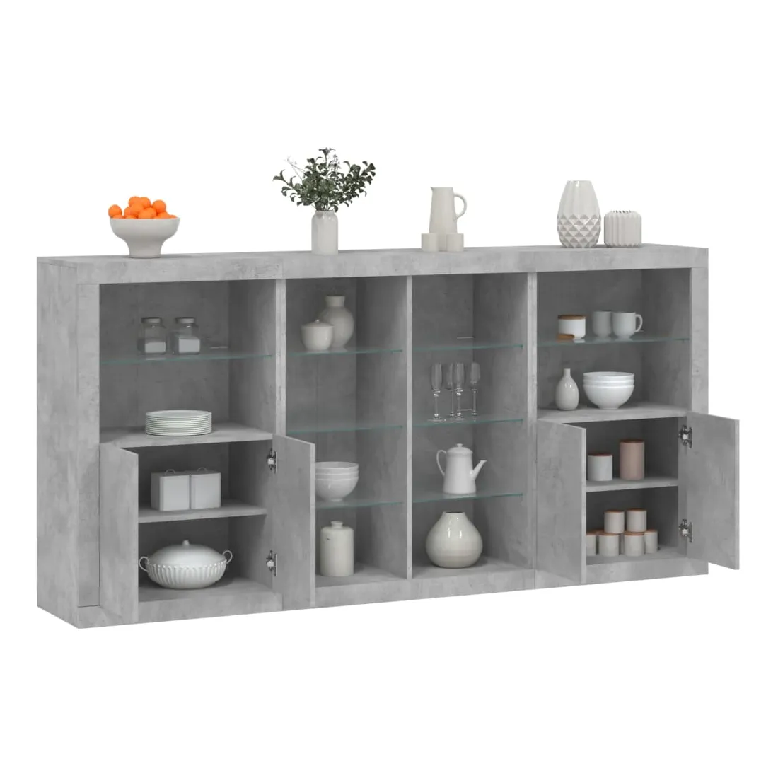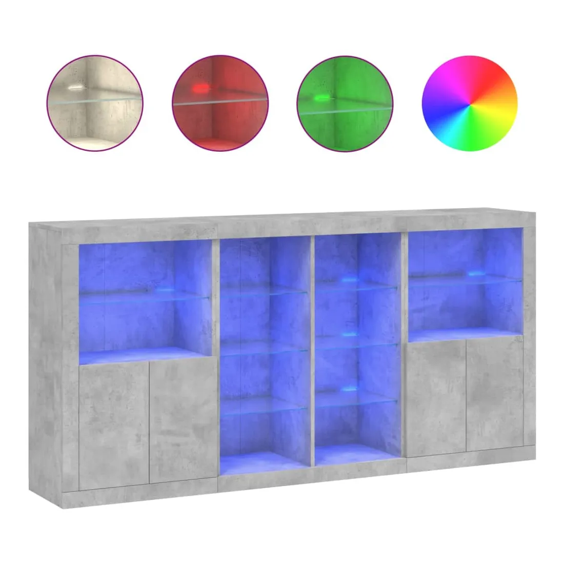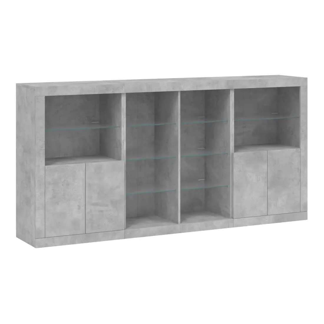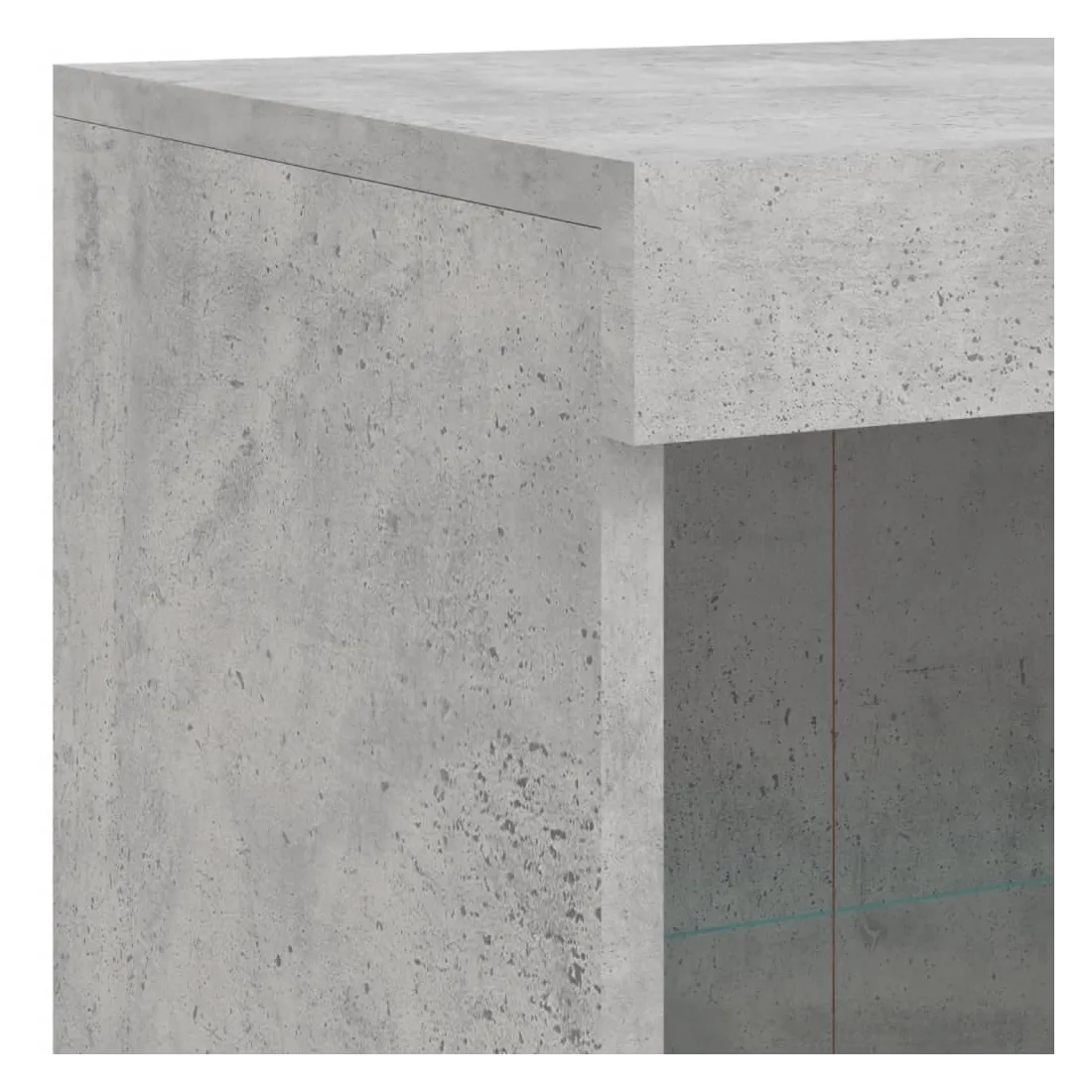 Décorez votre pièce avec ce buffet moderne avec éclairage LED, il s'harmonise facilement avec les meubles de tout style de votre maison. Matériau durable : le bois d'ingénierie est d'une qualité exceptionnelle avec une surface lisse et présente également résistance, stabilité et résistance à l'humidité.Lumières LED RVB : le buffet est équipé de lumières LED RVB vibrantes. Avec divers menus personnalisables, vous pouvez changer sans effort la couleur des lumières et même les régler automatiquement. Ces lumières LED renforcent non seulement l'aspect contemporain du buffet, mais aussi son attrait pour la mode.Grand espace de rangement : l'armoire de rangement offre beaucoup d'espace pour garder vos objets du quotidien bien rangés et facilement accessibles.Fonction d'exposition : la partie supérieure robuste de l'armoire d'entrée est idéale pour exposer des objets décoratifs, des cadres photo ou des plantes en pot.Porte pratiques : gardez vos essentiels à l'abri de la poussière en les cachant derrière les portes de l'armoire latérale. Bon à savoir :Ce produit est doté d'un connecteur USB qui nécessite une source d'alimentation USB de 5V certifiée (non incluse). Attention :Pour éviter qu'il ne soit renversé, ce produit doit être utilisé avec le dispositif de fixation au mur fourni.