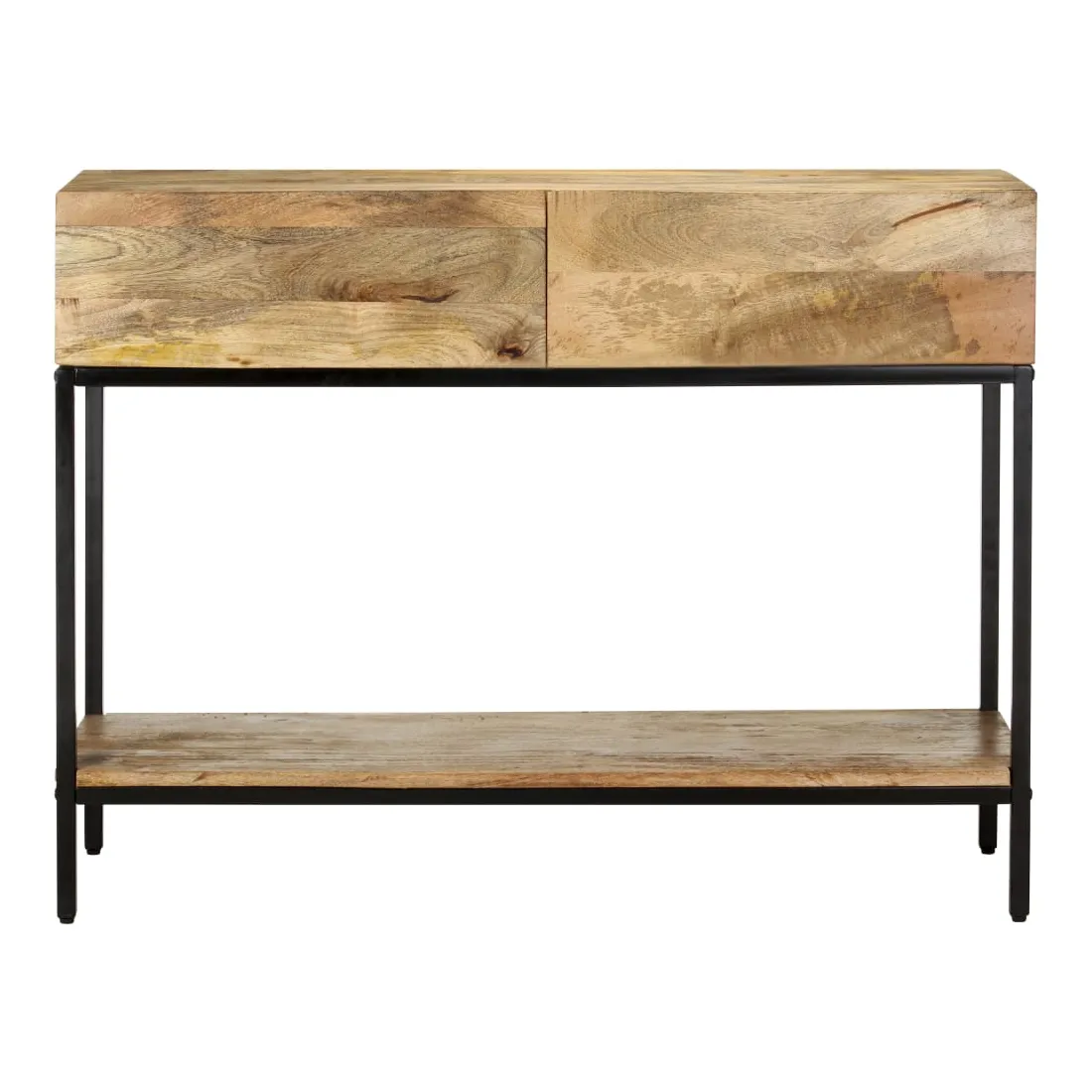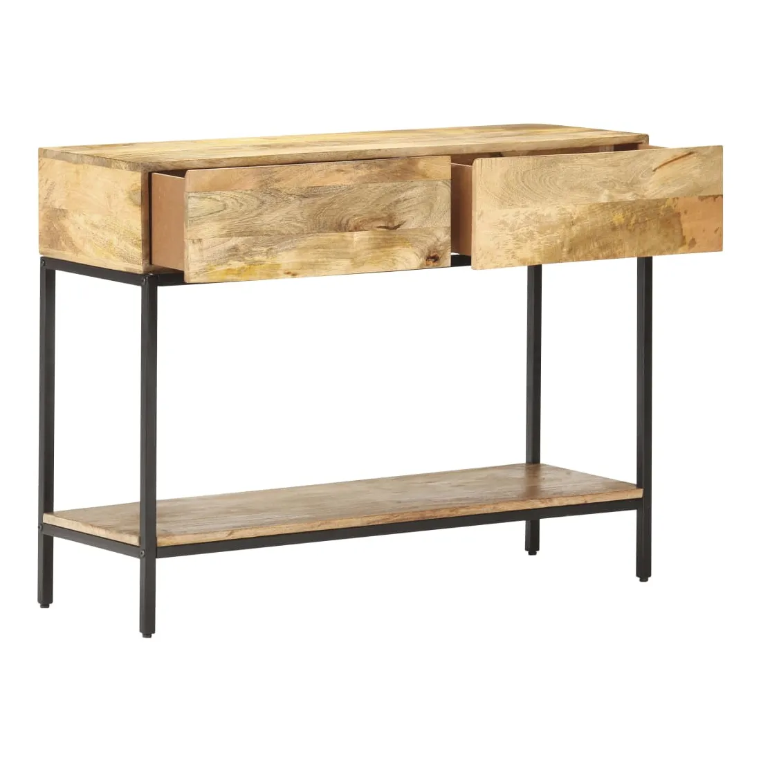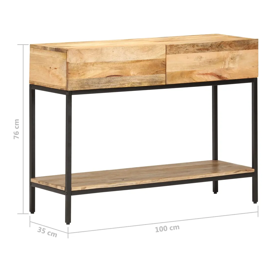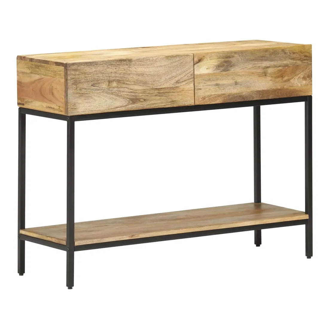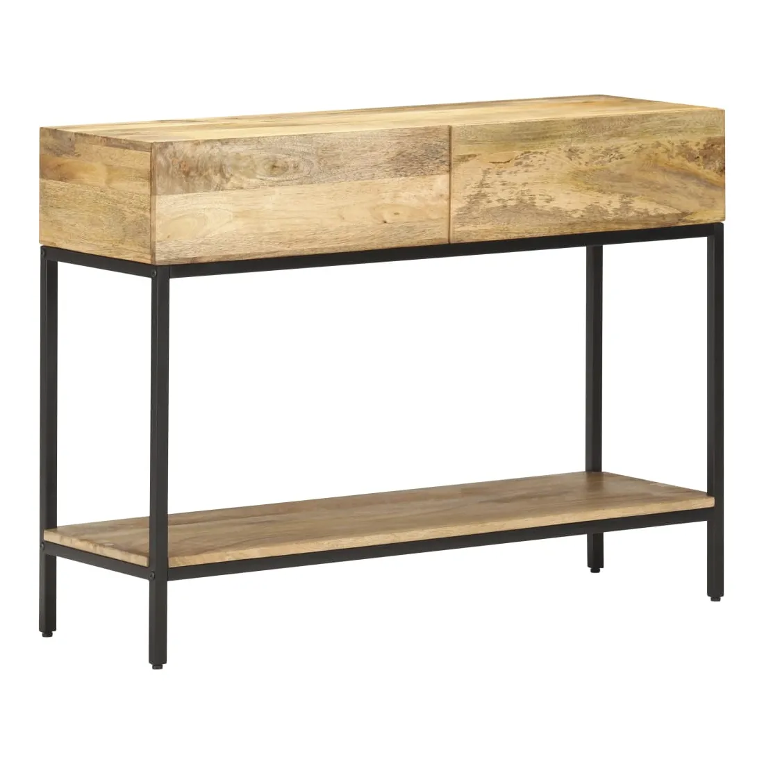 Si vous cherchez à ajouter une touche simple de charme rustique à votre décoration intérieure, cette table console en bois de manguier massif est ici ! Le bois de manguier massif est un bois dur tropical. Il a la force de soutenir le poids et résiste également à l’usure du temps. De plus, l’artisanat exquis et les beaux grains de bois font chaque pièce d'armoire console légèrement différente l'une de l'autre. L'armoire de couloir est équipée de 2 tiroirs et d'une étagère, offrant suffisamment d’espace pour garder tous les articles que vous souhaitez bien organisés. De plus, la base en fer ajoute à sa robustesse. Remarque importante : les veines et les couleurs varient d’une pièce à l’autre, ce qui rend chaque table console en bois unique.