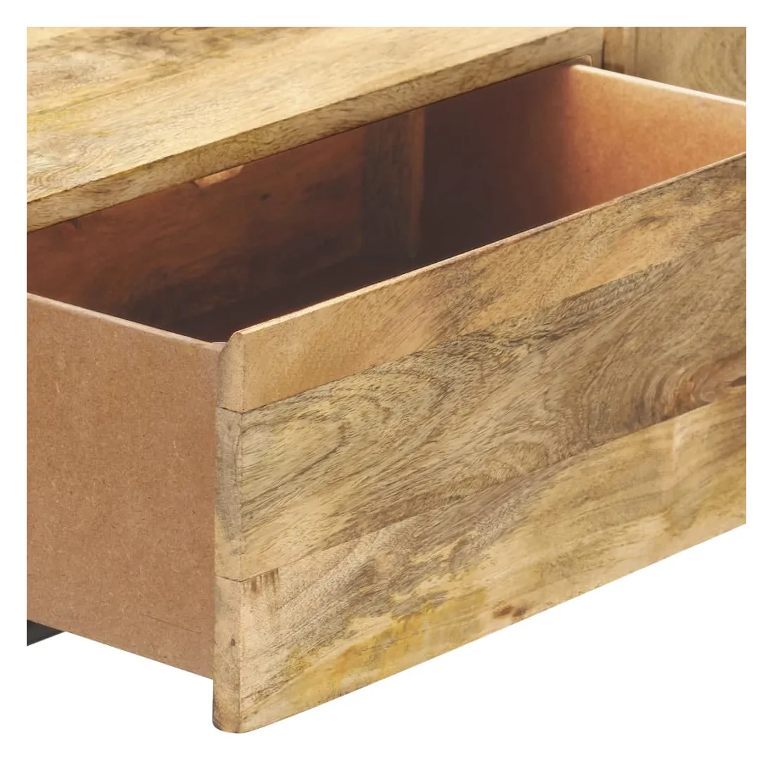 - Matériau : bois de manguier massif avec une finition naturelle, fer avec un revêtement en poudre noire
