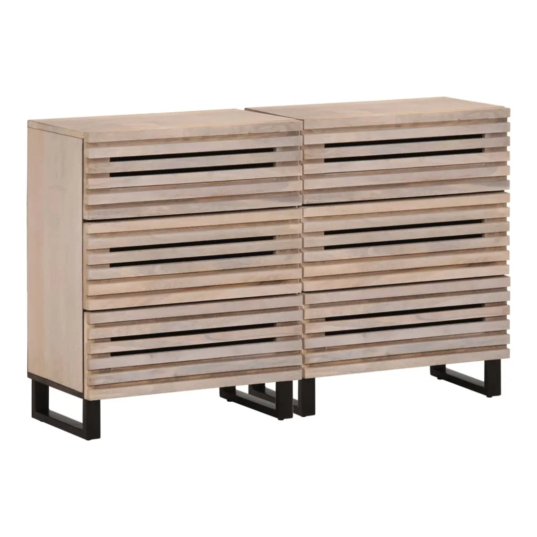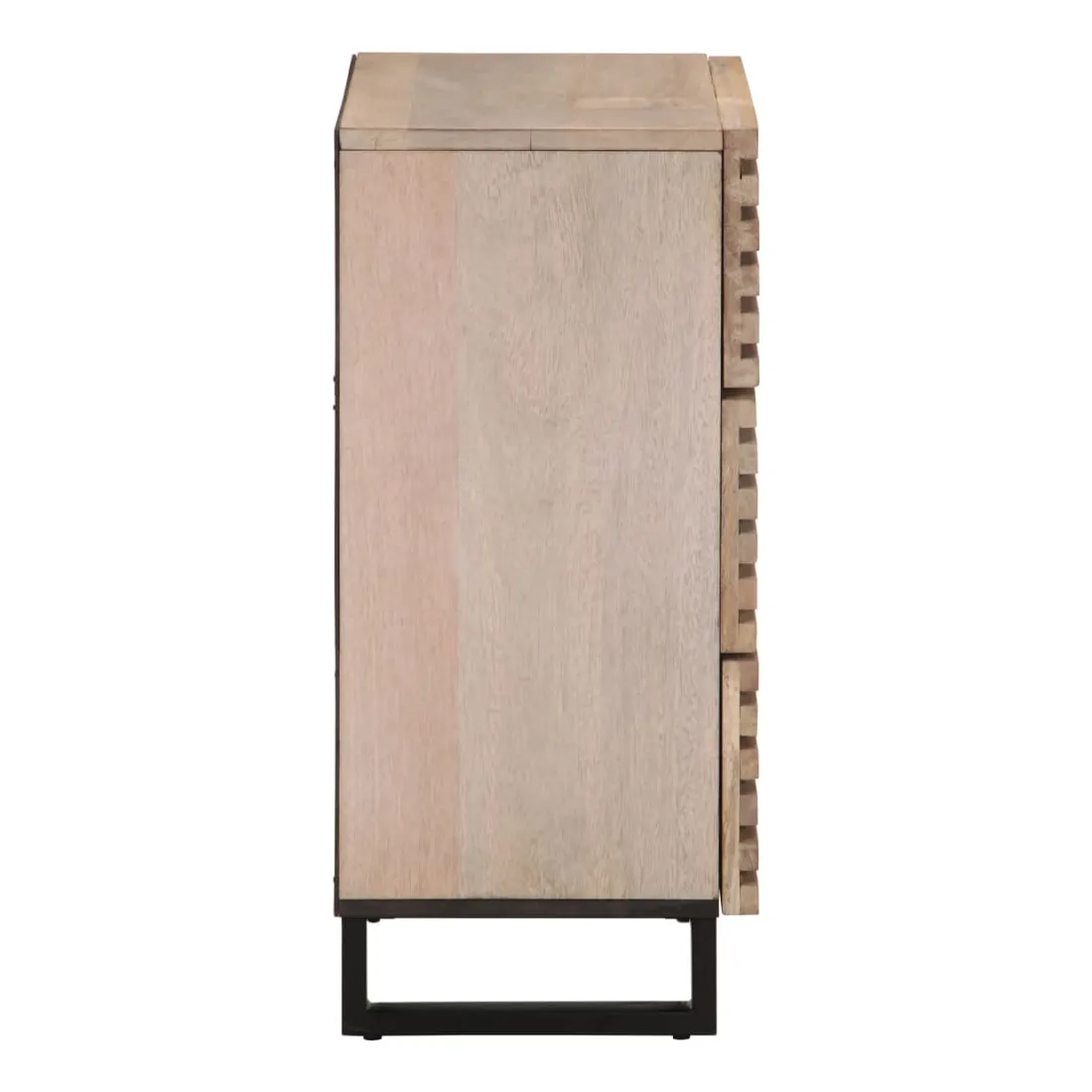 Ces buffets robustes de style industriel constituent un supplément intemporel à votre salon ou à votre chambre à coucher. Cadre robuste et stable : l'acier est solide, stable et durable, ce qui en fait un choix idéal pour un large éventail d'applications, de la fabrication de meubles à la construction.Matériau durable : le bois de manguier massif est un bois dur tropical solide qui fait des meubles robustes. Ses beaux grains de bois rendent chaque meuble légèrement différent l'un de l'autre.Grand espace de rangement : le buffet dispose de 3 tiroirs, ce qui offre un grand espace de rangement pour garder vos divers essentiels quotidiens bien organisés et à portée de main.Facile à nettoyer : l'armoire est facile à nettoyer à l'aide d'un chiffon humide et nécessite peu d'entretien. Attention :Pour éviter qu'il ne bascule, ce produit doit être utilisé avec le dispositif de fixation murale fourni. Bon à savoir :Chaque article est unique, avec des variations de couleurs et de grains. La livraison est aléatoire, ce qui garantit l'exclusivité et l'individualité de votre produit.