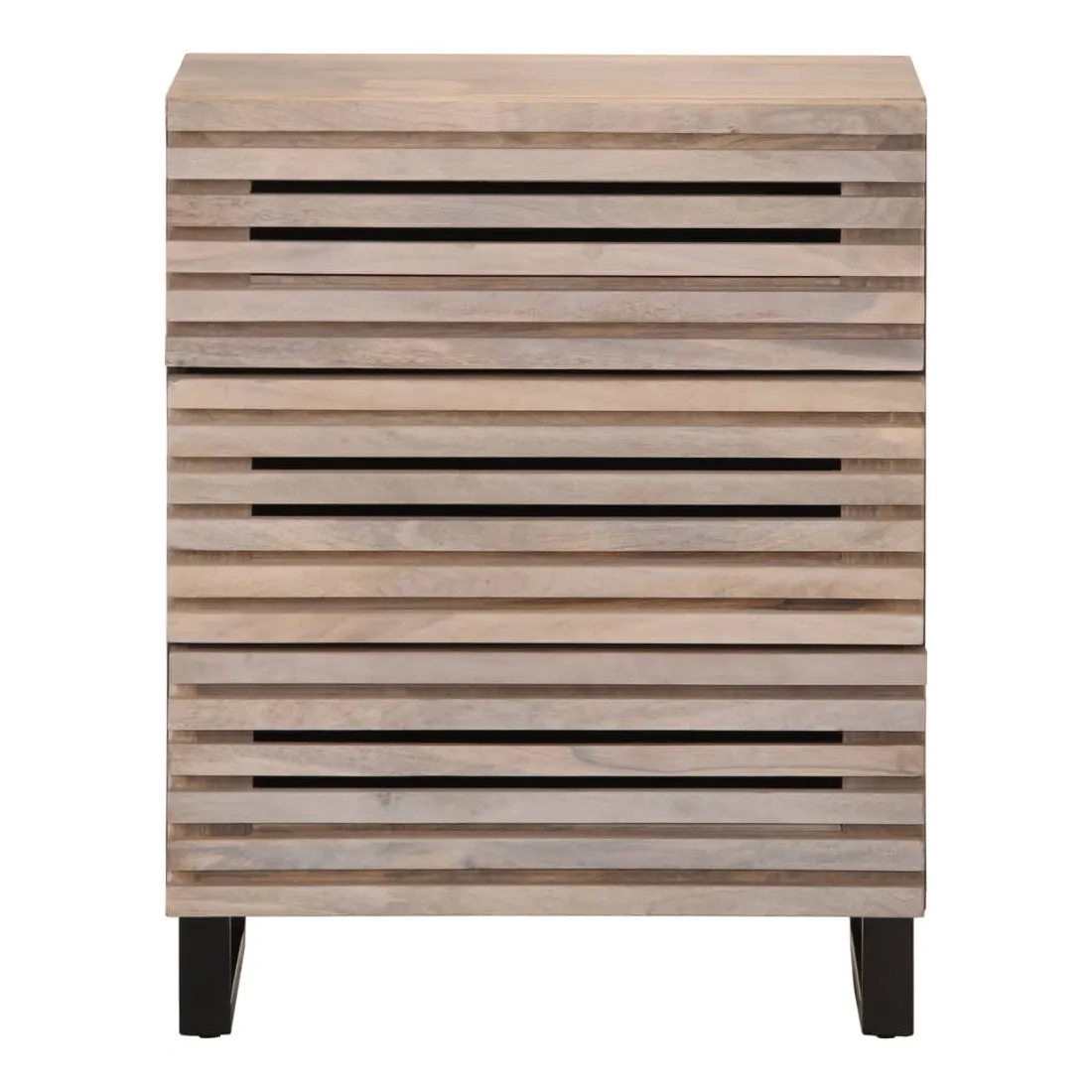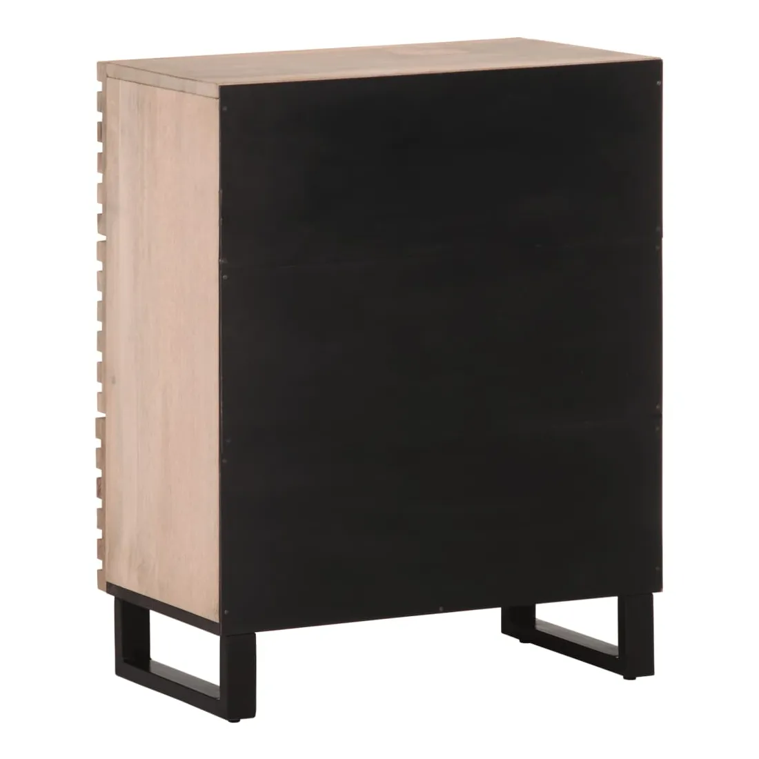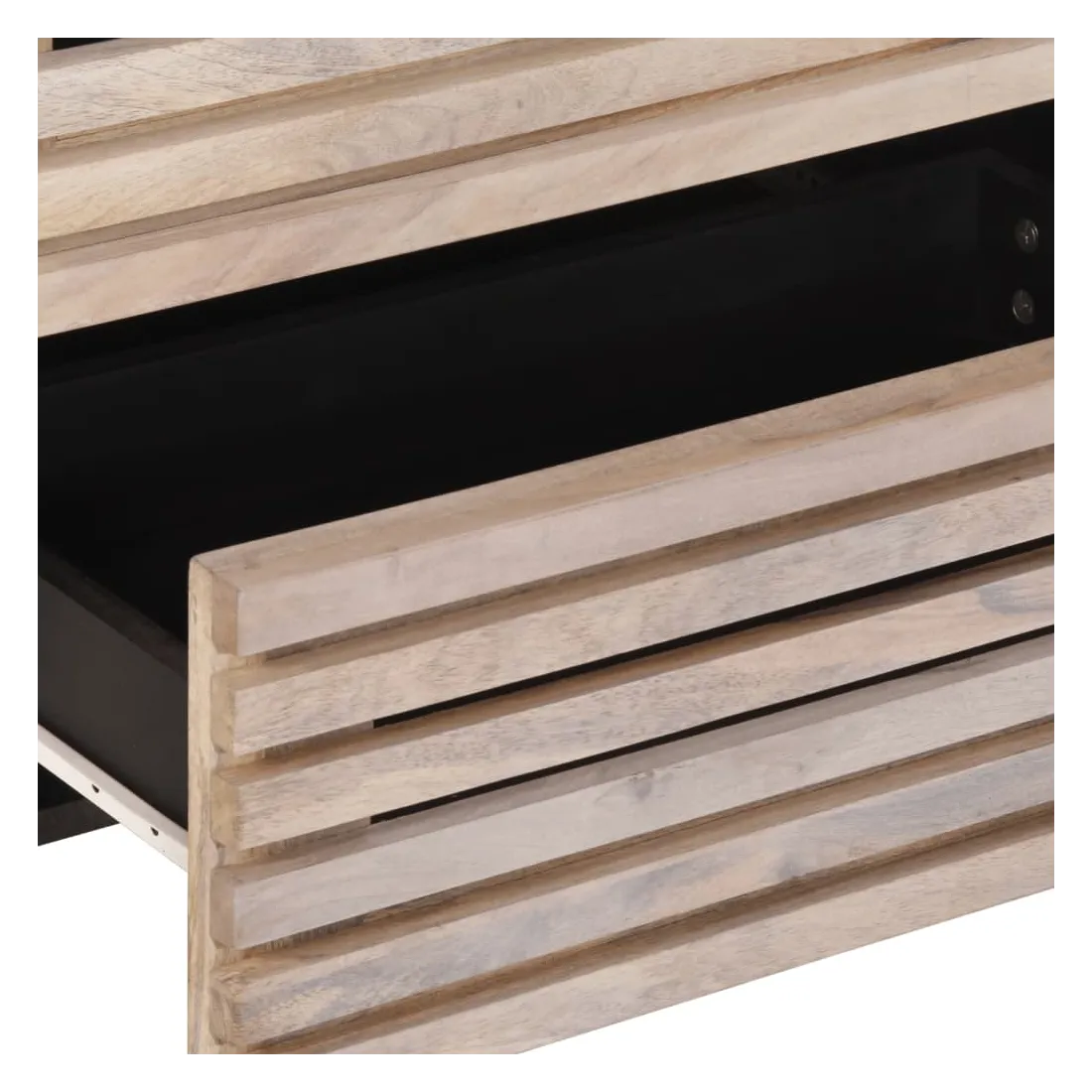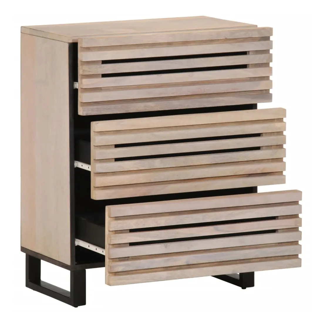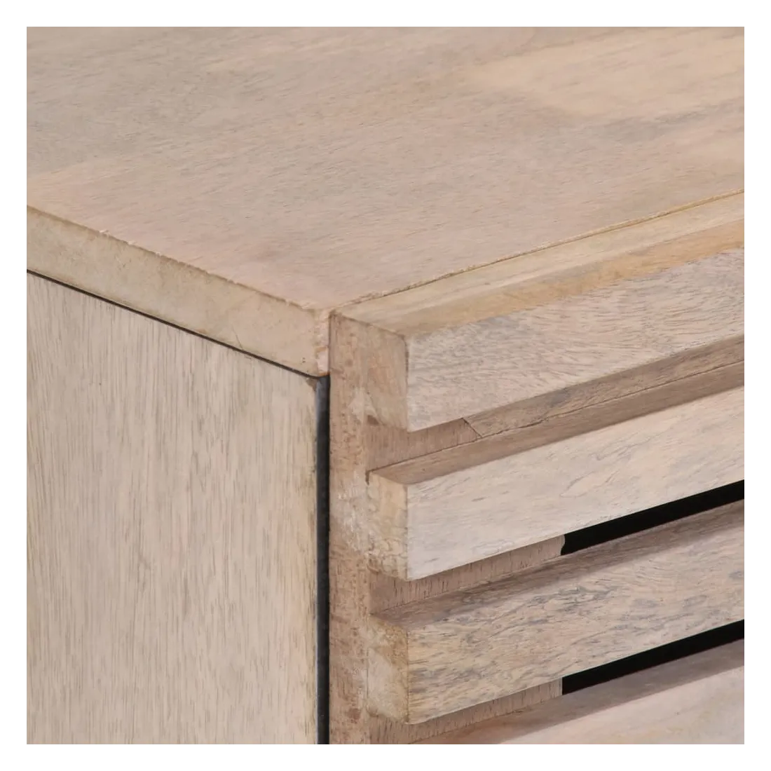 - Matériau : bois de manguier massif avec une finition blanchie, acier
