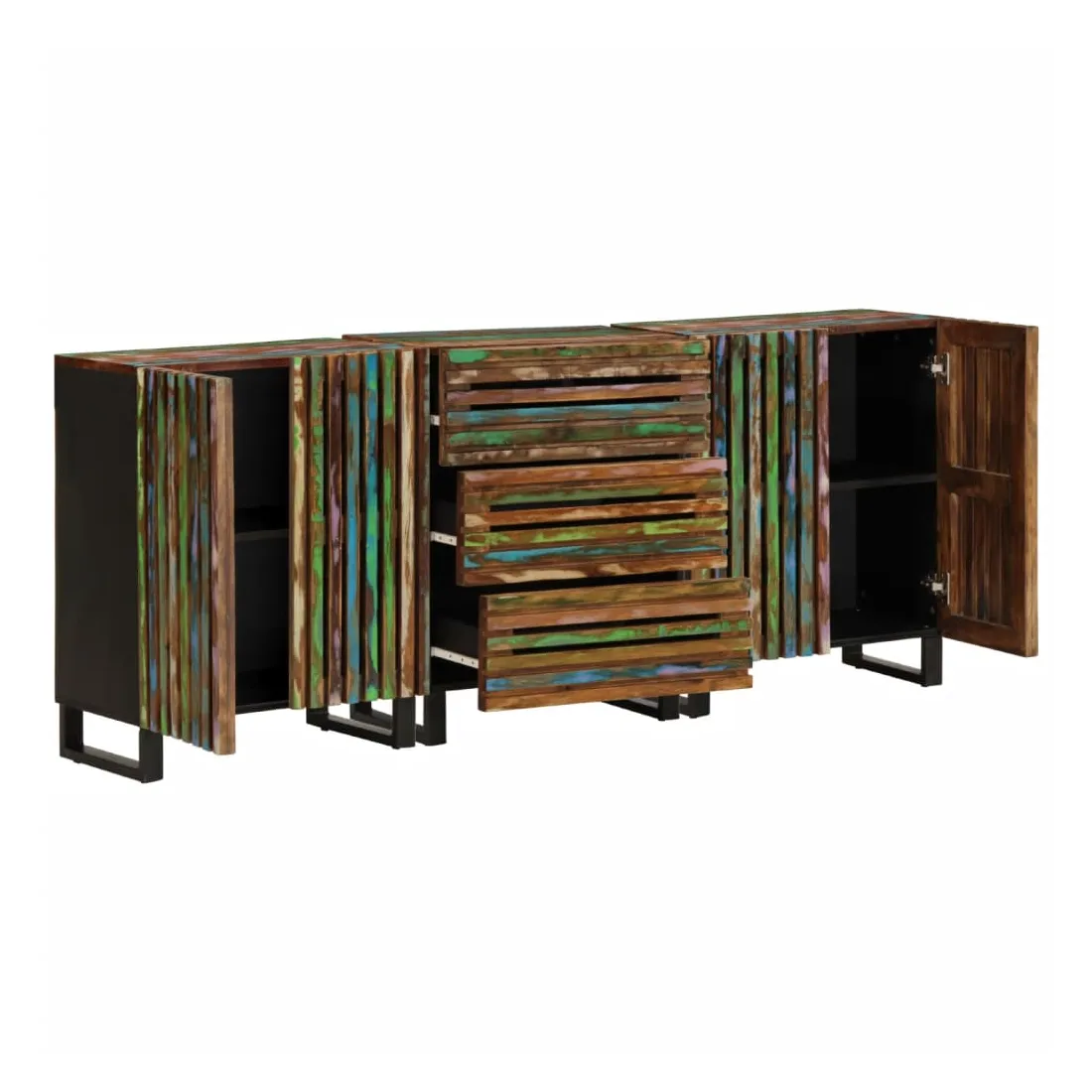 Ces buffets robustes de style industriel constituent un supplément intemporel à votre salon ou à votre chambre à coucher. Cadre robuste et stable : l'acier est solide, stable et durable, ce qui en fait un choix idéal pour un large éventail d'applications, de la fabrication de meubles à la construction.Matériau durable : le bois d'acacia massif est un matériau naturel magnifique. Le bois d'acacia un bois dur tropical, qui est dense, robuste et durable.Grand espace de rangement : le buffet offre un grand espace de rangement pour garder vos différents articles essentiels quotidiens bien organisés et facilement accessibles.Facile à nettoyer : l'armoire est facile à nettoyer à l'aide d'un chiffon humide et nécessite peu d'entretien. Attention :Pour éviter qu'il ne bascule, ce produit doit être utilisé avec le dispositif de fixation murale fourni. Bon à savoir :Chaque article est unique, avec des variations de couleurs et de grains. La livraison est aléatoire, ce qui garantit l'exclusivité et l'individualité de votre produit.