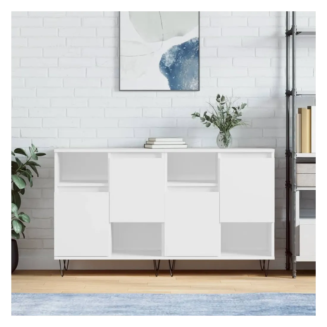 Ces buffets classiques, au look intemporel, sont conçus pour être un excellent supplément à votre maison. Matériau durable : le bois d'ingénierie est d'une qualité exceptionnelle avec une surface lisse et présente également résistance, stabilité et résistance à l'humidité.Grand espace de rangement : l'armoire offre un grand espace de rangement pour garder vos différents articles essentiels quotidiens bien organisés et facilement accessibles.Fonction d'affichage : vous pouvez également placer vos photos, décorations ou fleurs préférées sur l'armoire de rangement pour enrichir votre vie. Attention :Pour éviter qu'il ne soit renversé, ce produit doit être utilisé avec le dispositif de fixation au mur fourni.
