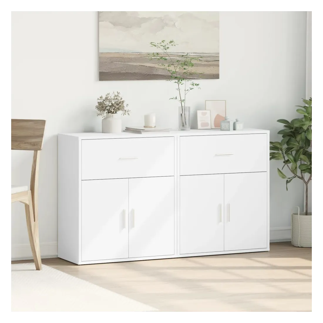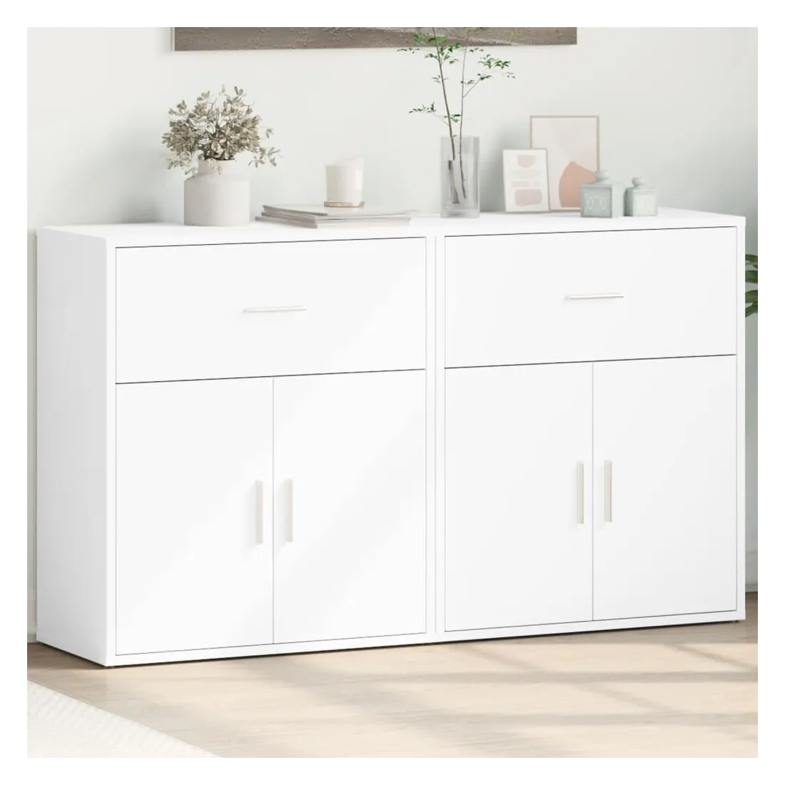 Ces buffets robustes sont conçus pour être un point de mire de votre pièce avec un design tendance mais pratique. Matériau durable : le bois d'ingénierie est d'une qualité exceptionnelle avec une surface lisse et présente également résistance, stabilité et résistance à l'humidité. Fabriquée en bois d'ingénierie, le meuble de rangement est facile à nettoyer avec un chiffon humide.Grand espace de rangement : ce buffet offre un espace de rangement pratique pour garder vos magazines, livres, télécommandes et autres petits objets bien organisés et à portée de main.Large application : le dessus de ce buffet offre plus d'espace pour placer des objets, adapté aux téléphones portables, livres, lampes, etc. Attention :Pour éviter qu'il ne bascule, ce produit doit être utilisé avec le dispositif de fixation murale (non fourni).