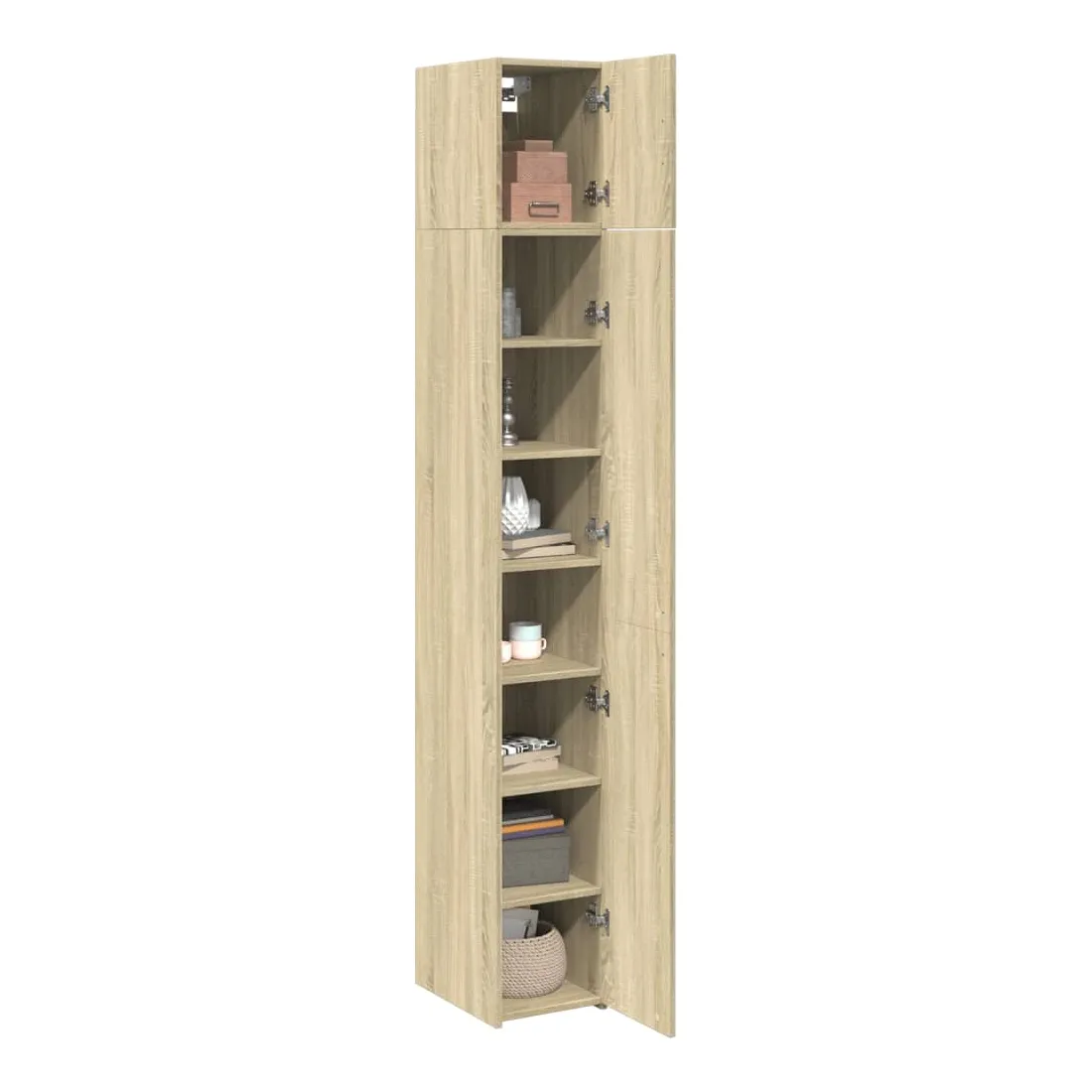 Cette armoire de rangement mince comprend deux armoires de tailles différentes, offrant un espace de rangement supplémentaire pour votre maison. Matériau stable et durable : le bois d'ingénierie est un matériau durable et stable dont la surface lisse résiste à l'humidité, au déformation et au fendillement, ce qui en fait un choix fiable pour une grande variété de projets.Grand espace de rangement : cette armoire de rangement est conçue avec plusieurs compartiments, offrant un grand espace de rangement pour les livres, les objets de collection, les décorations ou d’autres objets que vous devez ranger.Deux méthodes d’installation de la porte : vous pouvez installer la porte au côté droit ou gauche en fonction de vos besoins spécifiques.Économie d’espace : cette unité de rangement haute utilise efficacement l’espace vertical pour maximiser la capacité de stockage, ce qui en fait un meuble idéal pour les petits espaces ou les espaces limités.Large application : cette armoire de rangement polyvalente est un supplément fonctionnel pour plusieurs espaces, y compris la salle de bain, le salon, la chambre à coucher, la cuisine, la buanderie, le bureau et le garage. Attention :Pour éviter qu'il ne bascule, ce produit doit être utilisé avec le dispositif de fixation murale fourni. Bon à savoir :Les vis et les chevilles pour l'intérieur du mur ne sont pas incluses. Nous vous conseillons de trouver et d'utiliser des vis et des chevilles adaptées spécifiquement à vos murs. Si vous n'êtes pas sûr, vous pouvez consulter un professionnel. Veuillez lire et suivre chaque étape des instructions.