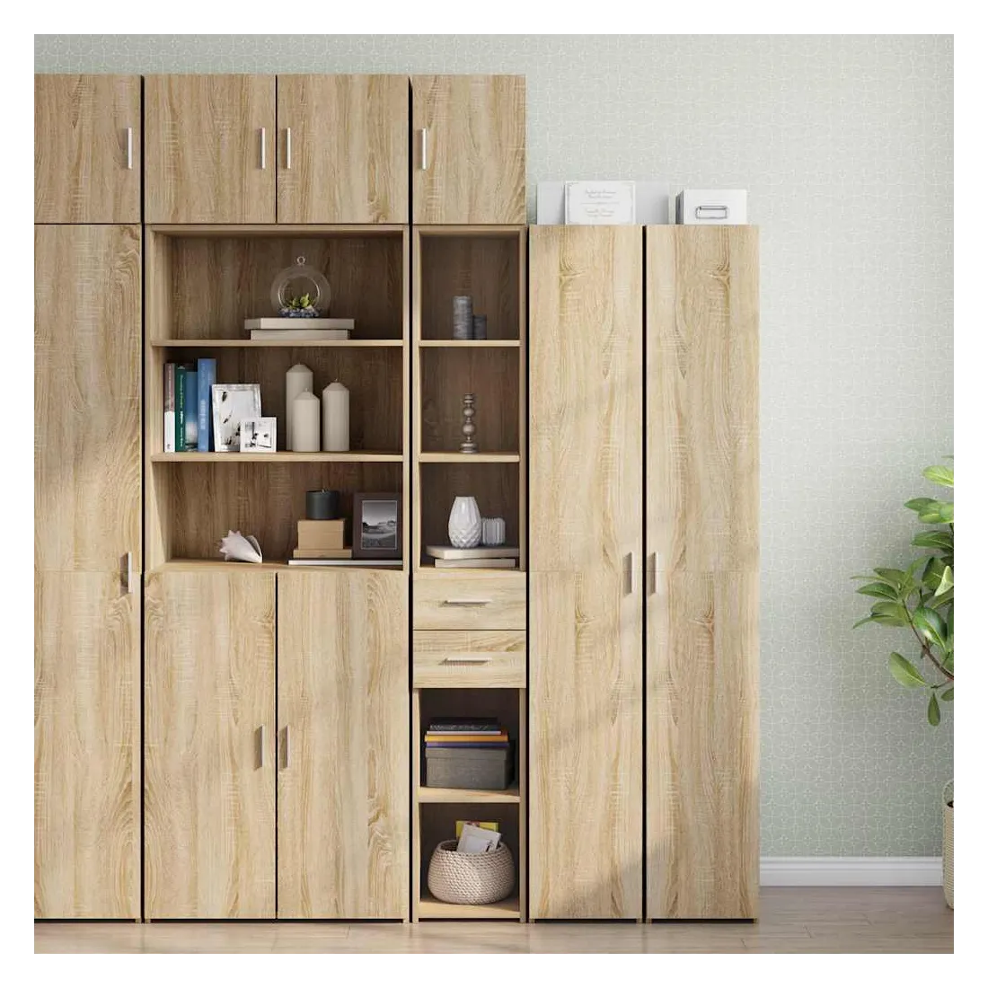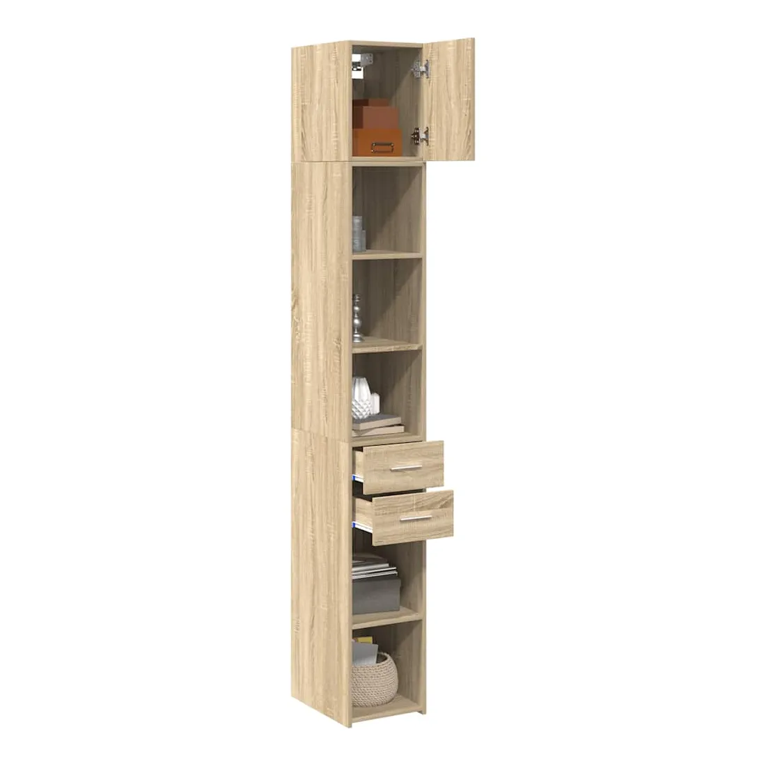 Cette armoire de rangement mince comprend deux armoires de tailles différentes, offrant un espace de rangement supplémentaire pour votre maison. Matériau stable et durable : le bois d'ingénierie est un matériau durable et stable dont la surface lisse résiste à l'humidité, au déformation et au fendillement, ce qui en fait un choix fiable pour une grande variété de projets.Grand espace de rangement : cette armoire de rangement est conçue avec plusieurs compartiments, offrant un grand espace de rangement pour les livres, les objets de collection, les décorations ou d’autres objets que vous devez ranger.Deux méthodes d’installation de la porte : vous pouvez installer la porte au côté droit ou gauche en fonction de vos besoins spécifiques.Économie d’espace : cette unité de rangement haute utilise efficacement l’espace vertical pour maximiser la capacité de stockage, ce qui en fait un meuble idéal pour les petits espaces ou les espaces limités.Large application : cette armoire de rangement polyvalente est un supplément fonctionnel pour plusieurs espaces, y compris la salle de bain, le salon, la chambre à coucher, la cuisine, la buanderie, le bureau et le garage. Attention :Pour éviter qu'il ne bascule, ce produit doit être utilisé avec le dispositif de fixation murale fourni. Bon à savoir :Les vis et les chevilles pour l'intérieur du mur ne sont pas incluses. Nous vous conseillons de trouver et d'utiliser des vis et des chevilles adaptées spécifiquement à vos murs. Si vous n'êtes pas sûr, vous pouvez consulter un professionnel. Veuillez lire et suivre chaque étape des instructions.