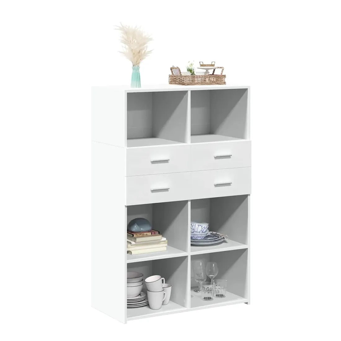 Vous cherchez un buffet haut de gamme stylé ? Ce buffet haut bien conçu ajoute un charme élégant à votre intérieur existant ! Matériau durable : le bois d'ingénierie est d'une qualité exceptionnelle avec une surface lisse et se caractérise également par sa solidité, sa stabilité et sa résistance à l'humidité.Facile à utiliser : l'armoire de rangement est livrée avec des poignées qui facilitent l'ouverture et la fermeture du meuble tout en ajoutant une beauté supplémentaire.Grand espace de rangement : cette armoire haute est dotée de compartiments ouverts et de tiroirs, ce qui offre un grand espace de rangement pour garder vos différents articles essentiels quotidiens bien organisés et facilement accessibles.Facile à entretenir : grâce à sa surface lisse, le buffet se nettoie facilement à l'aide d'un chiffon humide et nécessite peu d'entretien.Multifonctionnel : ce buffet haut avec étagère est polyvalent et convient aux chambres, salons, couloirs, garage, etc., selon vos besoins. Attention :Pour éviter qu'il ne bascule, ce produit doit être utilisé avec le dispositif de fixation murale fourni. Bon à savoir :Les vis et les chevilles pour l'intérieur du mur ne sont pas incluses. Nous vous conseillons de trouver et d'utiliser des vis et des chevilles adaptées spécifiquement à vos murs. Si vous n'êtes pas sûr, vous pouvez consulter un professionnel. Veuillez lire et suivre chaque étape des instructions.