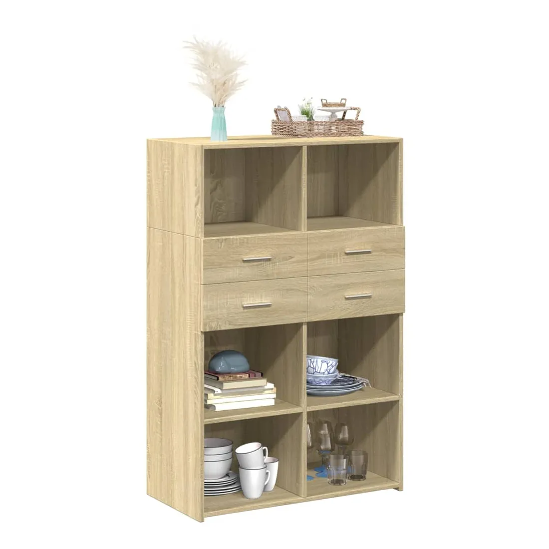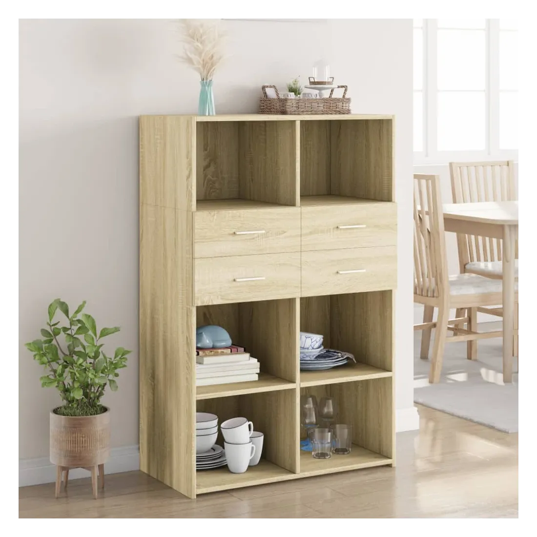 Vous cherchez un buffet haut de gamme stylé ? Ce buffet haut bien conçu ajoute un charme élégant à votre intérieur existant ! Matériau durable : le bois d'ingénierie est d'une qualité exceptionnelle avec une surface lisse et se caractérise également par sa solidité, sa stabilité et sa résistance à l'humidité.Facile à utiliser : l'armoire de rangement est livrée avec des poignées qui facilitent l'ouverture et la fermeture du meuble tout en ajoutant une beauté supplémentaire.Grand espace de rangement : cette armoire haute est dotée de compartiments ouverts et de tiroirs, ce qui offre un grand espace de rangement pour garder vos différents articles essentiels quotidiens bien organisés et facilement accessibles.Facile à entretenir : grâce à sa surface lisse, le buffet se nettoie facilement à l'aide d'un chiffon humide et nécessite peu d'entretien.Multifonctionnel : ce buffet haut avec étagère est polyvalent et convient aux chambres, salons, couloirs, garage, etc., selon vos besoins. Attention :Pour éviter qu'il ne bascule, ce produit doit être utilisé avec le dispositif de fixation murale fourni. Bon à savoir :Les vis et les chevilles pour l'intérieur du mur ne sont pas incluses. Nous vous conseillons de trouver et d'utiliser des vis et des chevilles adaptées spécifiquement à vos murs. Si vous n'êtes pas sûr, vous pouvez consulter un professionnel. Veuillez lire et suivre chaque étape des instructions.