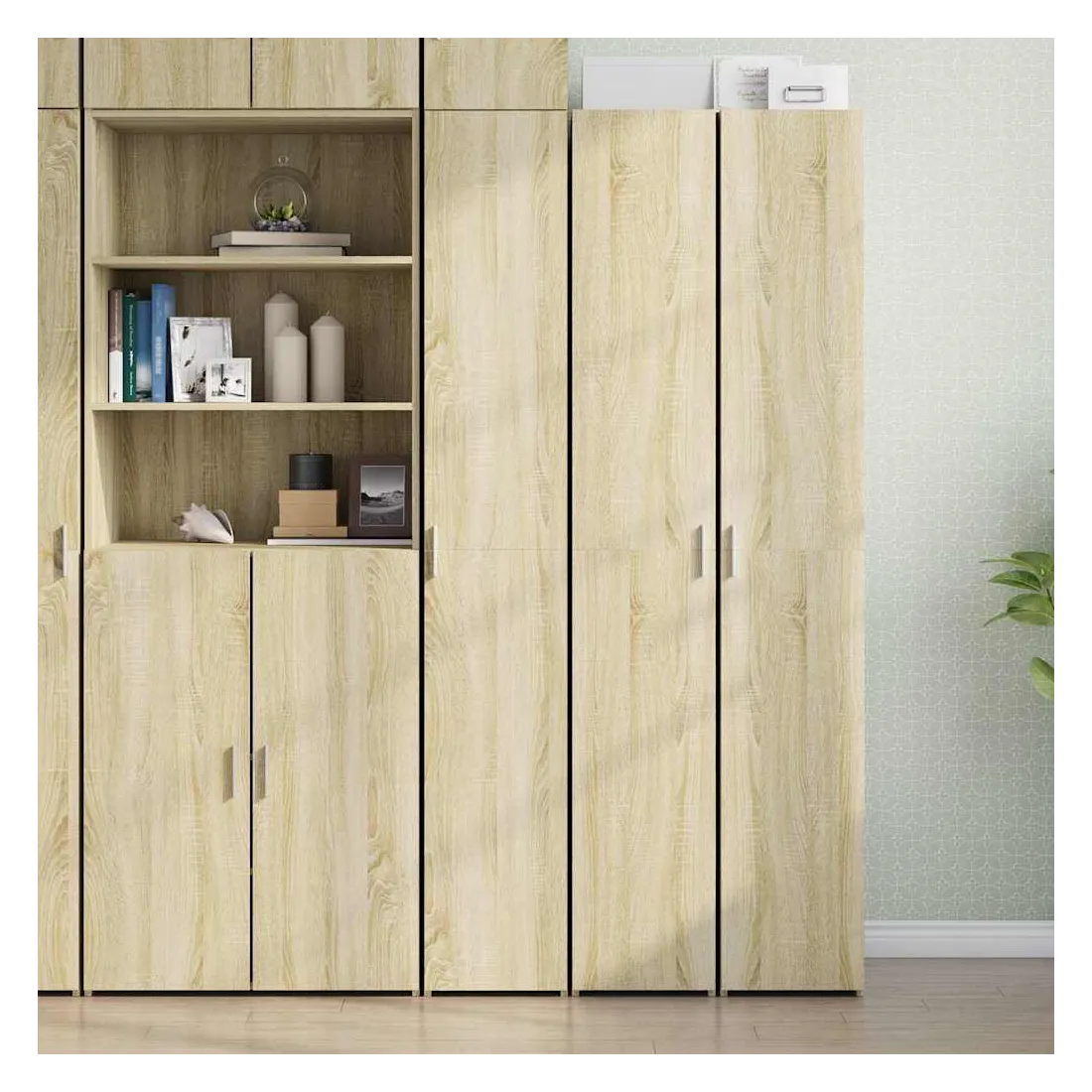 Vous cherchez un buffet haut de gamme stylé ? Ce buffet haut bien conçu ajoute un charme élégant à votre intérieur existant ! Matériau durable : le bois d'ingénierie est d'une qualité exceptionnelle avec une surface lisse et se caractérise également par sa solidité, sa stabilité et sa résistance à l'humidité.Facile à utiliser : l'armoire de rangement est livrée avec une poignée qui facilite l'ouverture et la fermeture du meuble tout en ajoutant une beauté supplémentaire.Grand espace de rangement : cette armoire haute est dotée de compartiments et de portes, ce qui offre un grand espace de rangement pour garder vos différents articles essentiels quotidiens bien organisés et facilement accessibles.Facile à entretenir : grâce à sa surface lisse, le buffet se nettoie facilement à l'aide d'un chiffon humide et nécessite peu d'entretien.Multifonctionnel : ce buffet haut avec étagère est polyvalent et convient aux chambres, salons, couloirs, garage, etc., selon vos besoins. Attention :Pour éviter qu'il ne bascule, ce produit doit être utilisé avec le dispositif de fixation murale fourni. Bon à savoir :Les vis et les chevilles pour l'intérieur du mur ne sont pas incluses. Nous vous conseillons de trouver et d'utiliser des vis et des chevilles adaptées spécifiquement à vos murs. Si vous n'êtes pas sûr, vous pouvez consulter un professionnel. Veuillez lire et suivre chaque étape des instructions.
