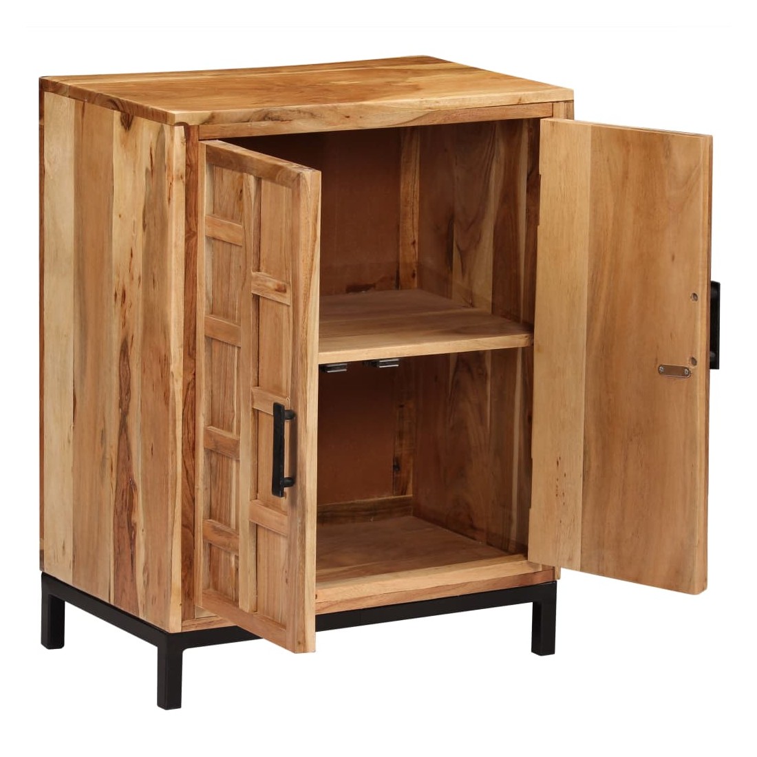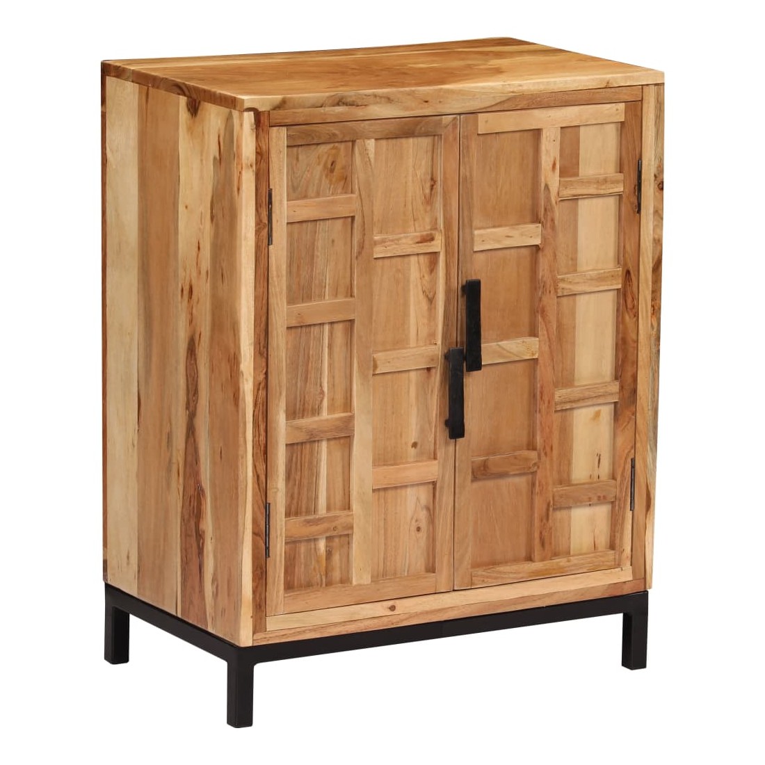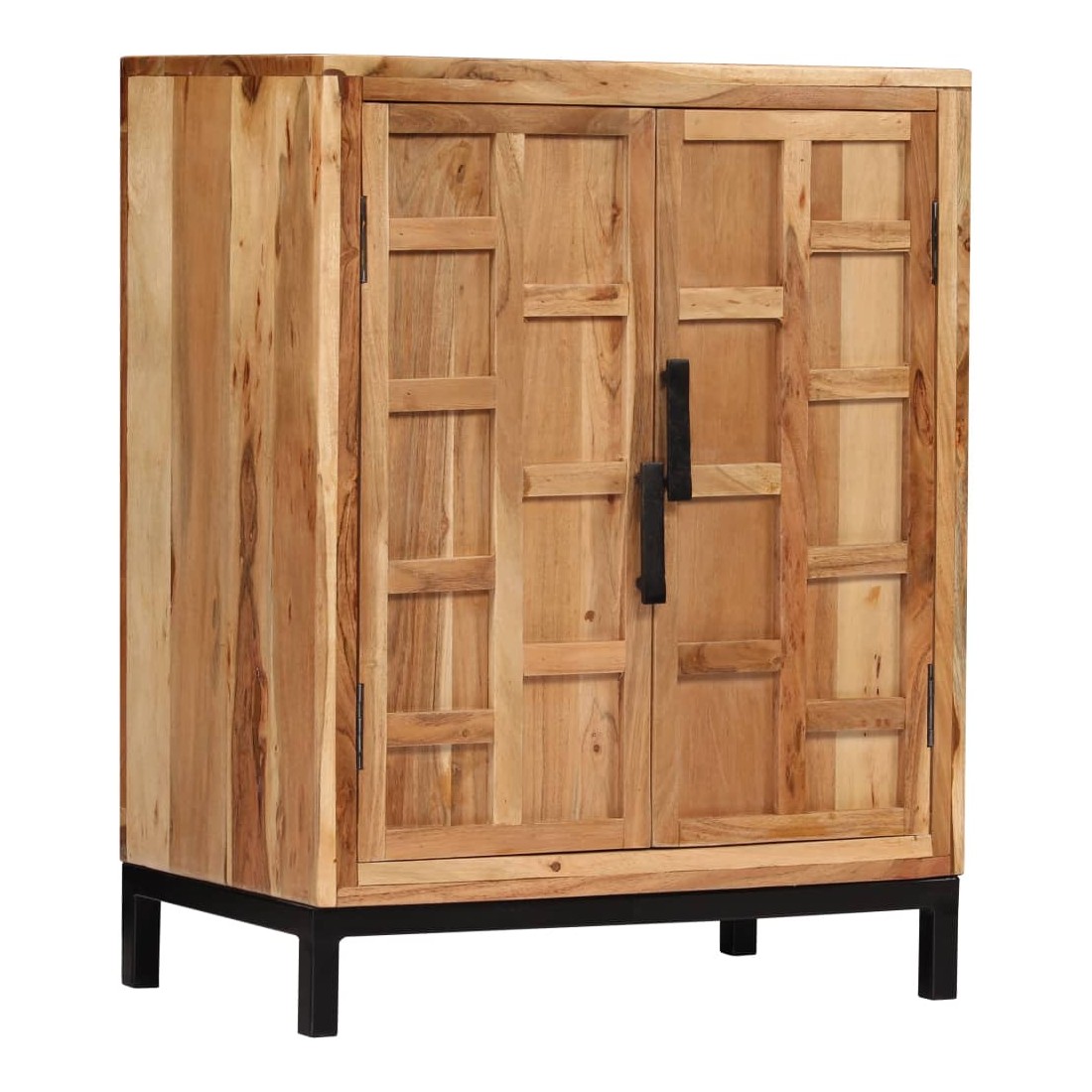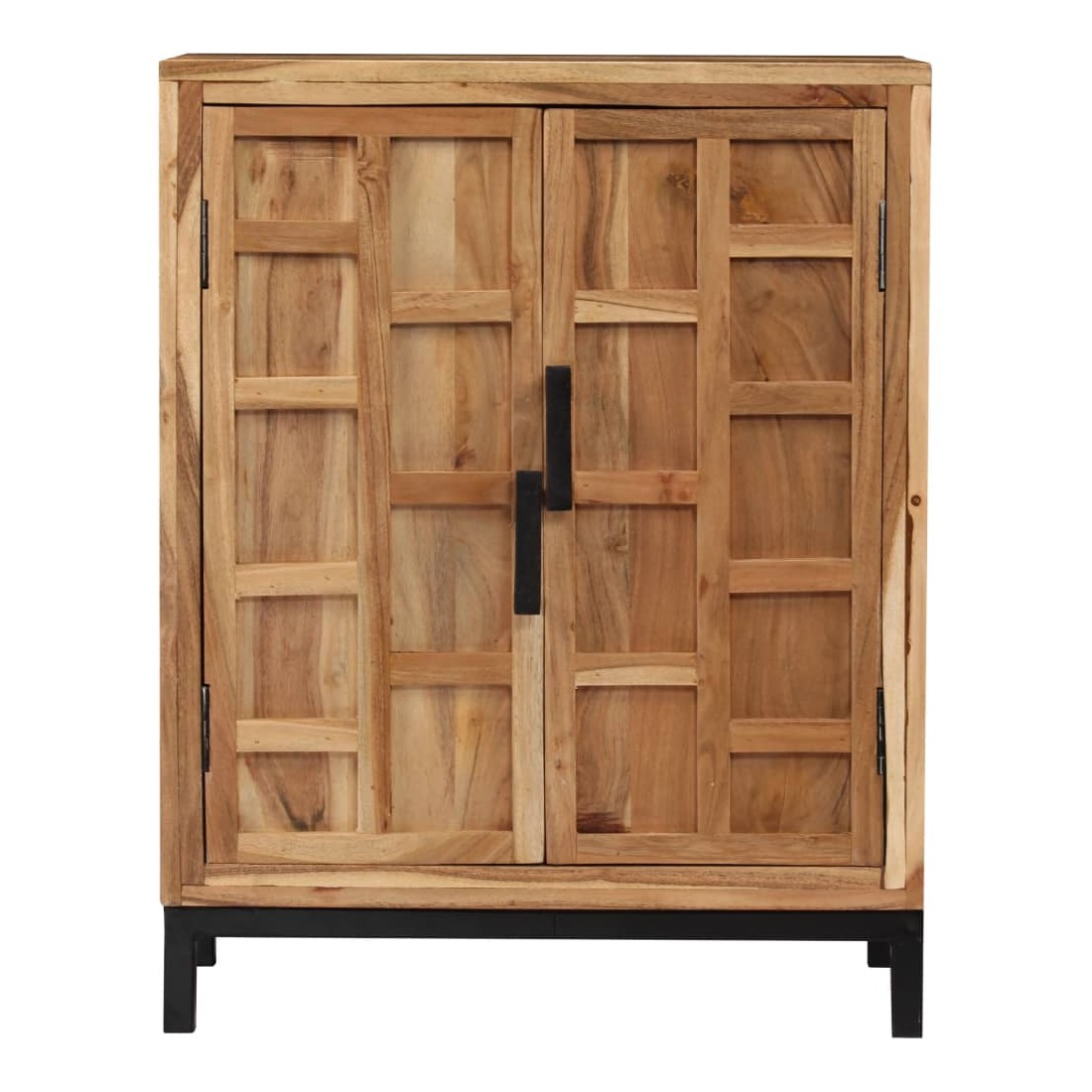 Ce buffet en bois d'acacia massif sera un supplément distinctif à votre pièce ! Il peut également être utilisé comme armoire latérale. L'armoire en bois est faite de bois d'acacia massif et de haute qualité, un bois dur tropical, résistant aux intempéries et durable. Chaque étape du processus est réalisée avec un soin exceptionnel, qu'il s'agisse du polissage ou du laquage. L’artisanat et les beaux grains de bois rendent chaque pièce de meubles unique et légèrement différente l'une de l'autre. L'armoire vous offre suffisamment d'espace de rangement pour garder vos livres, appareils multimédias et autres articles bien organisés et à portée de main. La base en acier enduit de poudre ajoute également à sa robustesse. L'assemblage est facile. Remarque importante : les couleurs peuvent vari