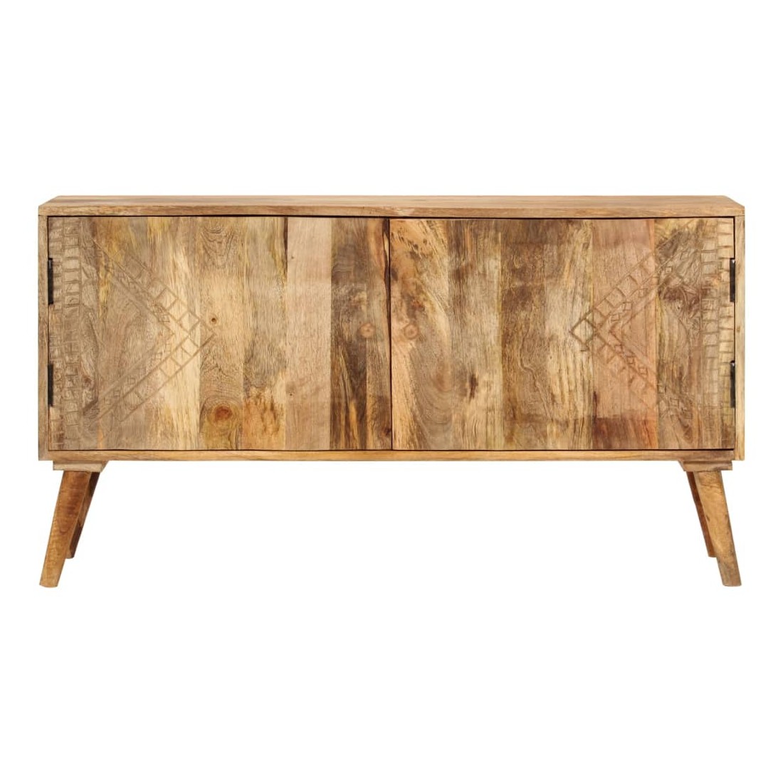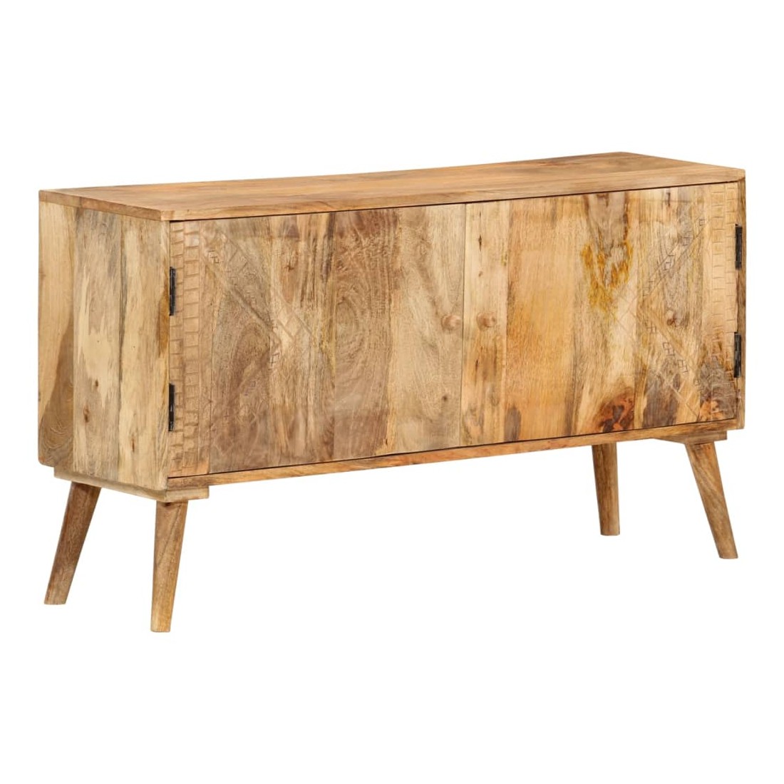 Le buffet en bois sera un ajout intemporel à votre décoration intérieure. Le buffet en bois de manguier massif est extrêmement stable et durable. Le plateau robuste est idéal pour placer des objets décoratifs tels que des vases ou des plantes en pot. Le buffet offre un grand espace de rangement pour garder vos divers articles bien rangés. Les motifs sculptés de façon raffinée ajoutent un aspect unique au buffet. Chaque étape du processus de fabrication est réalisée avec le plus grand soin, que ce soit le polissage, la peinture ou le laquage. L'assemblage est facile. Remarque importante : les couleurs et les grains de bois peuvent varier d'une pièce à l'autre, ce qui rend chaque pièce unique et légèrement différente l'une de l'autre. La livraison est aléatoire, ce qui garantit l'exclusivité et l'individualité de votre produit.