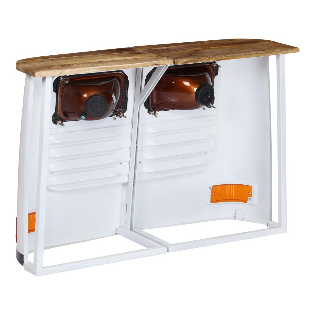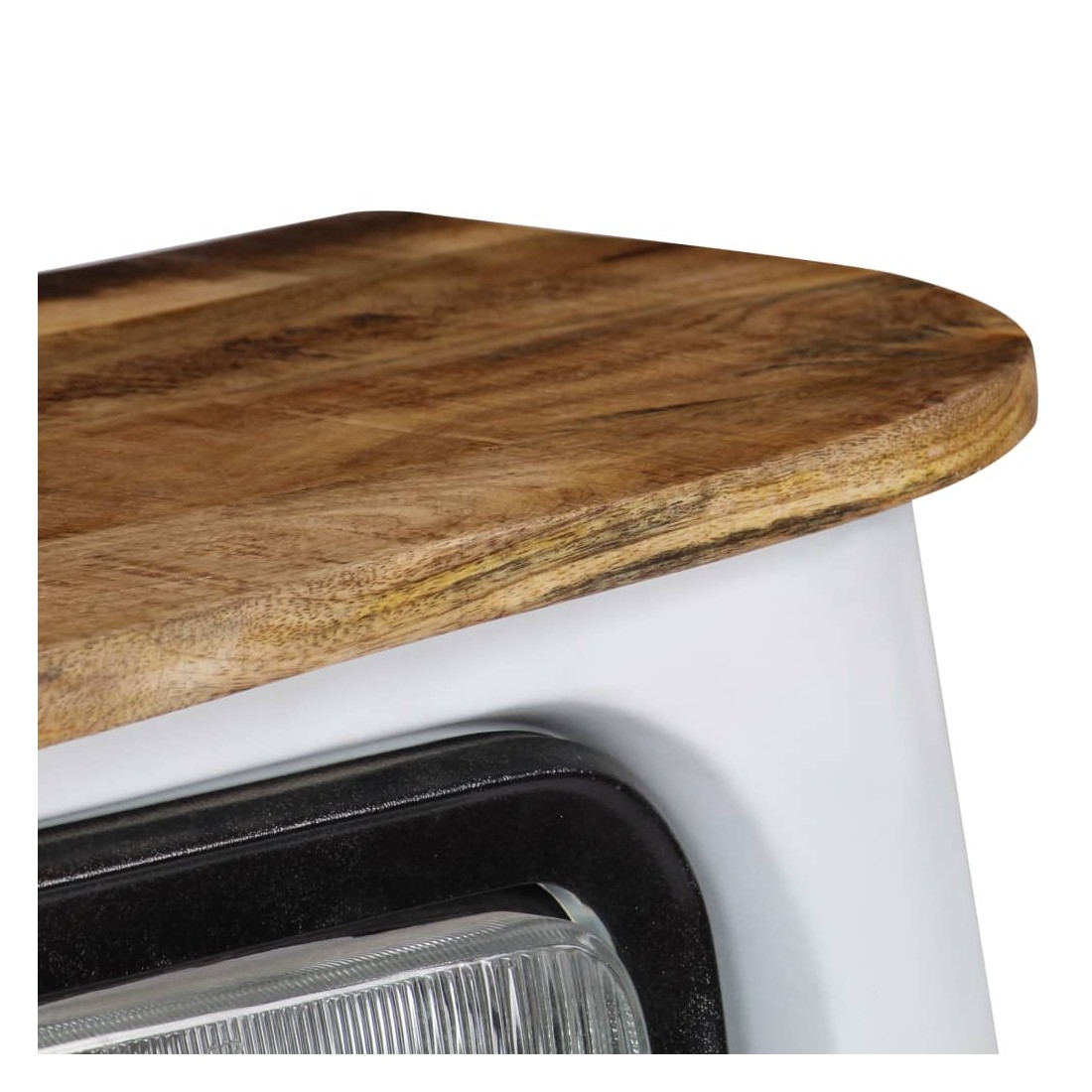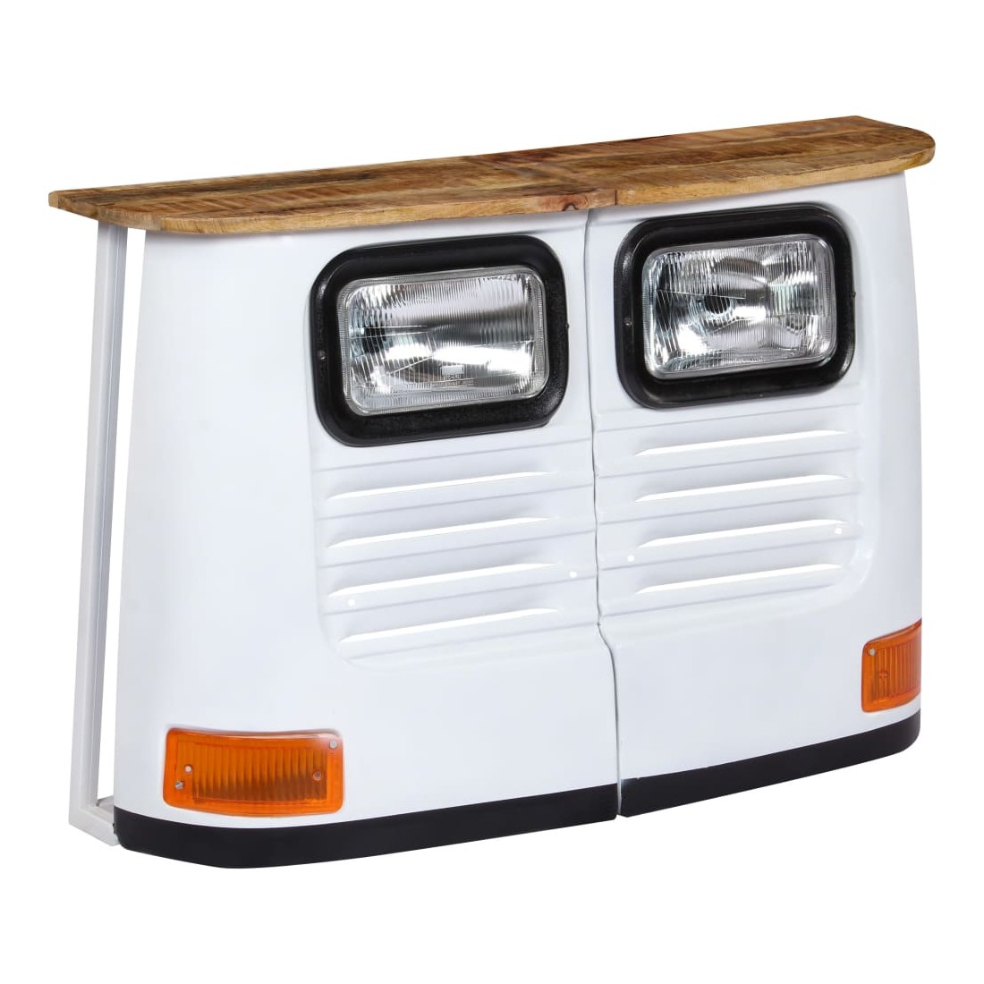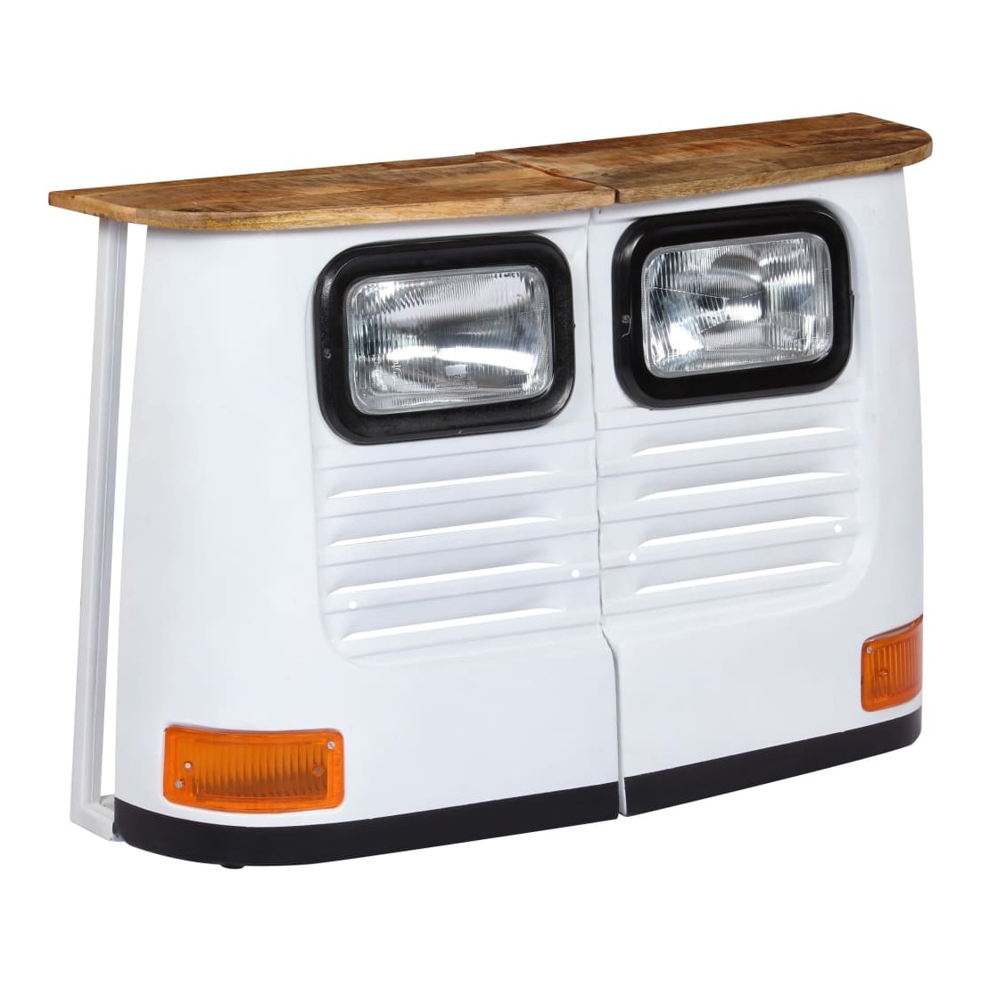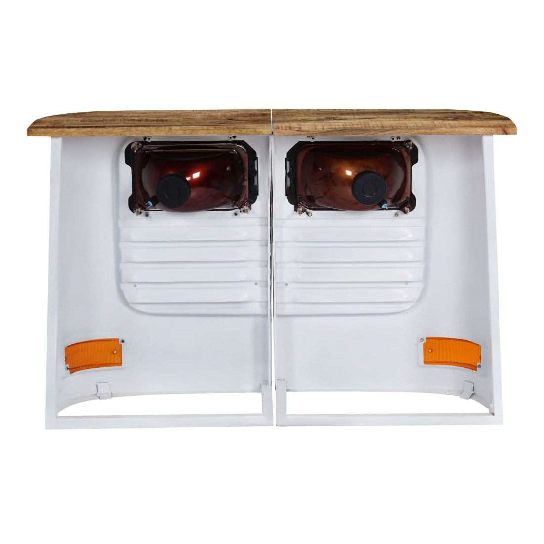 Ce buffet en forme de camion dégage un style rustique et industriel qui ajoutera un charme vintage à votre décoration intérieure ainsi qu’à un ancien pub, bar, café, etc. Avec un dessus de table en bois de manguier massif et un cadre en acier robuste, ce buffet est robuste et durable. La fabrication à l'aspect d'avant d'un camion authentique et en acier contribuent au charme vintage du buffet. Chaque étape du processus de fabrication est réalisée avec le plus grand soin, que ce soit le polissage, la peinture ou le laquage. Le buffet est facile à assembler. La livraison comprend 1 buffet composé de 2 parties. Remarque importante : la couleur et les grains de bois peuvent varier d'une pièce à l'autre, ce qui rend chaque article unique et légèrement différent l'un de l'autre. La livraison